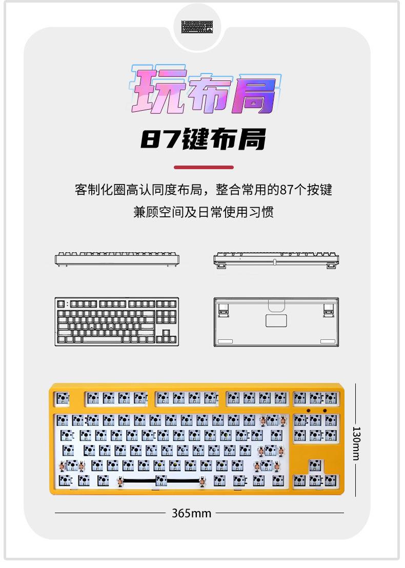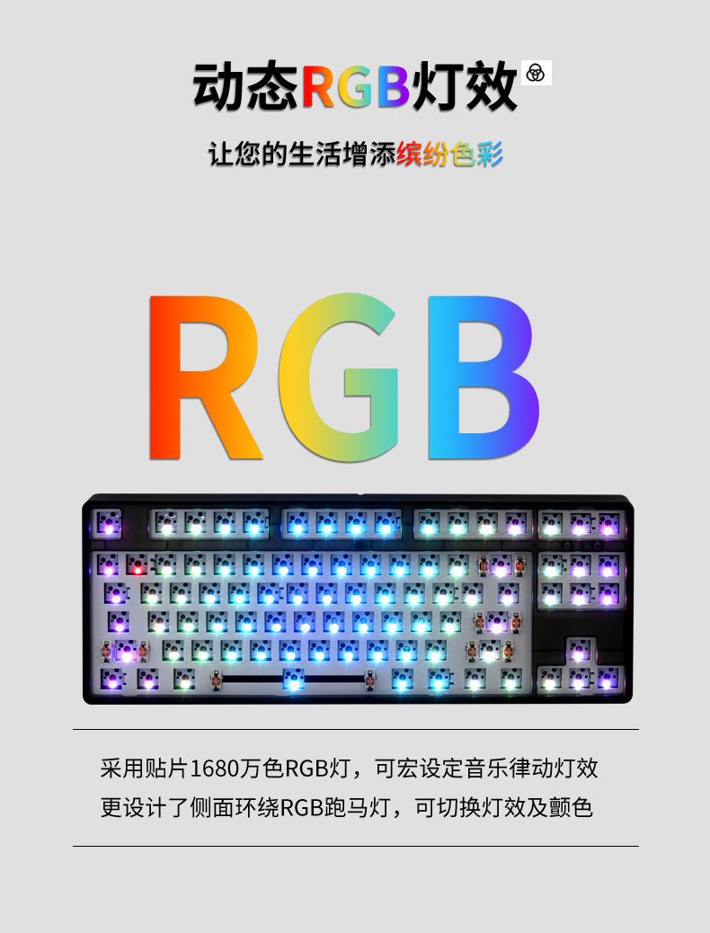 87 Key Triple Mode-Black Kit-Upper Light Bits (Orthoengraving Keycap Applicable)