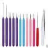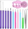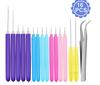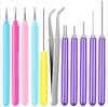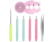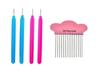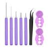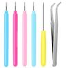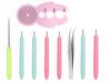 2 light blue pens +2 pink pens + Tweezers + pink curved gauge + awl color random (slightly different in kind do not mind shooting)