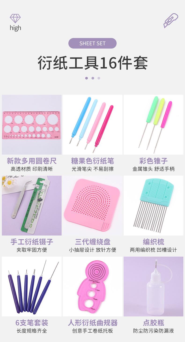 Juego de 16 herramientas para papel, bolígrafo, medidor de doblado de papel, pinzas, paquete de material de alta calidad, venta al por mayor en Yiwu