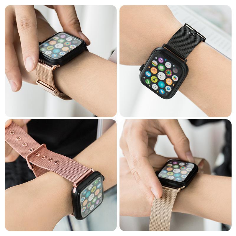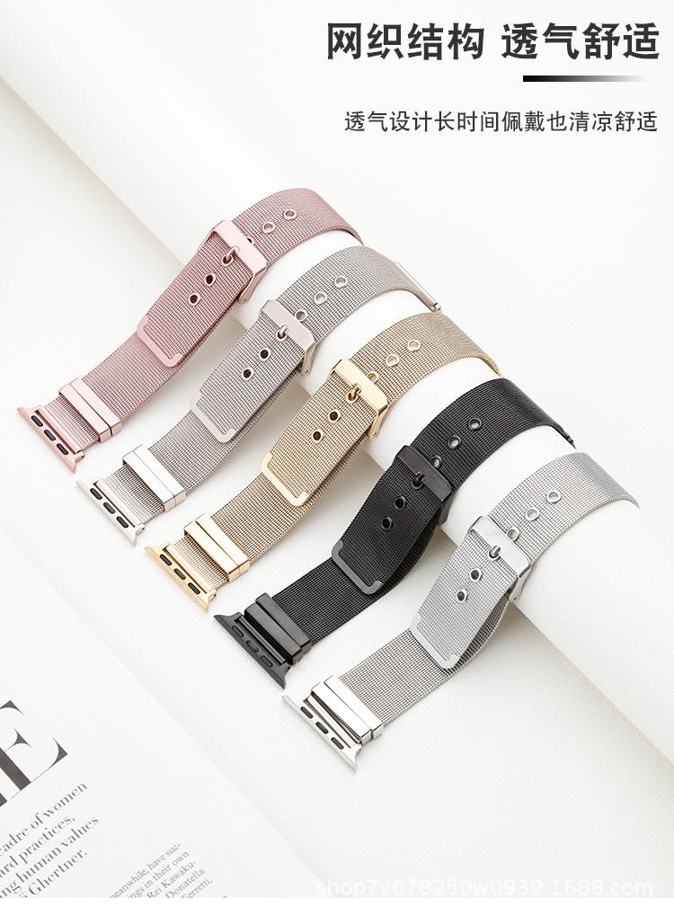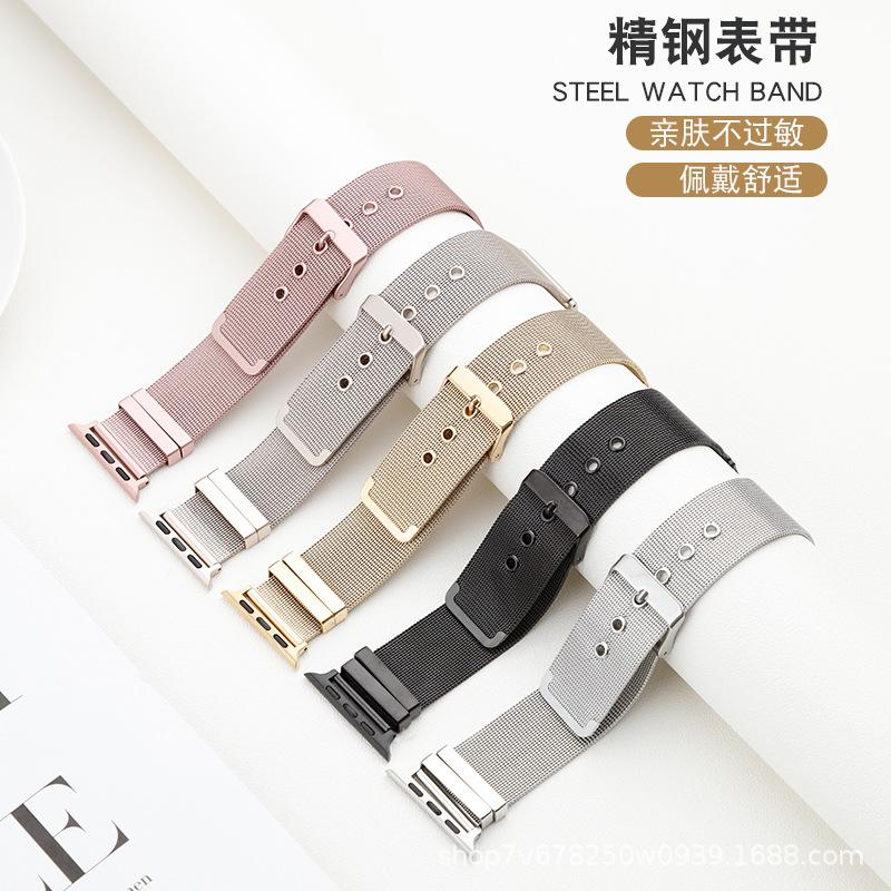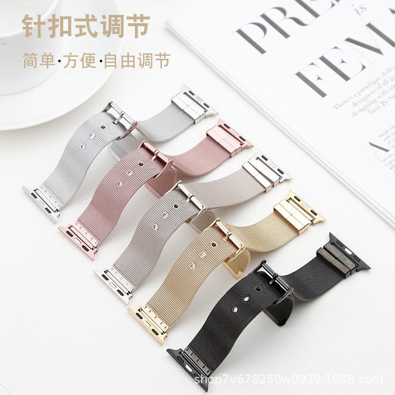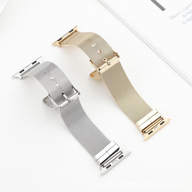 Adecuado para Apple Applewatch Correa de reloj de acero inoxidable milanesa con hebilla de pasador Correa inteligente universal
