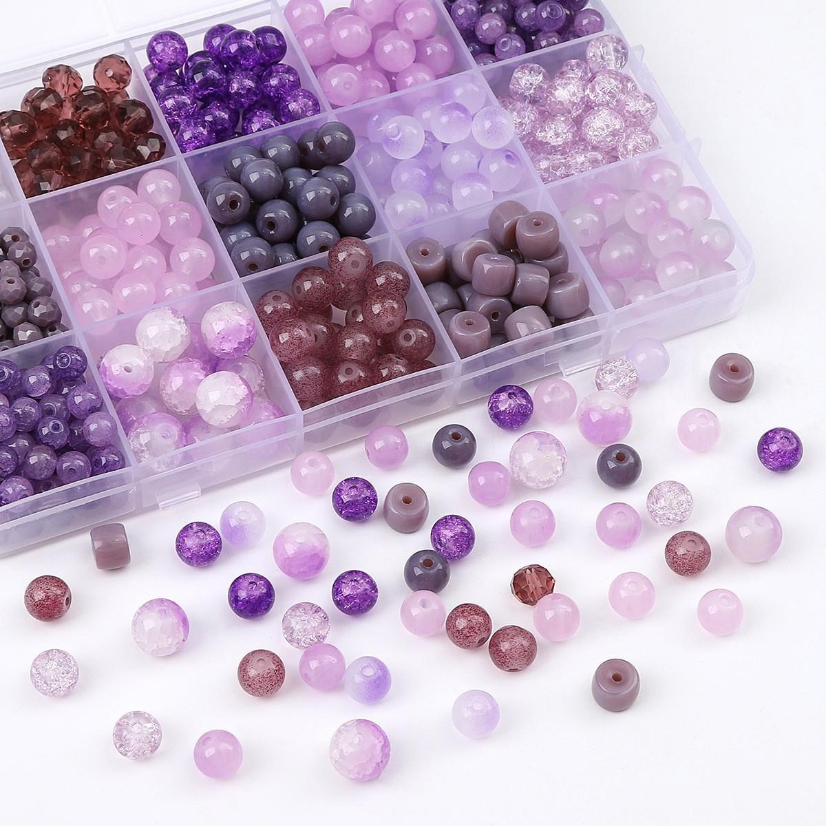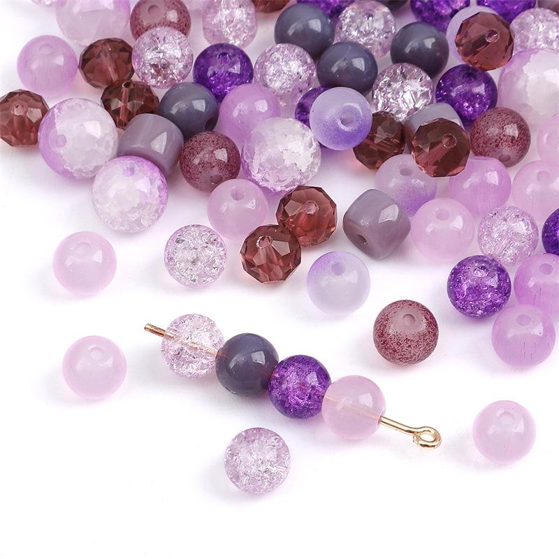 Cuentas redondas de gelatina de vidrio púrpura, cuentas sueltas hechas a mano, pulseras, collares, accesorios de joyería, fabricantes al por mayor