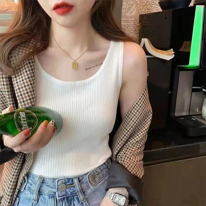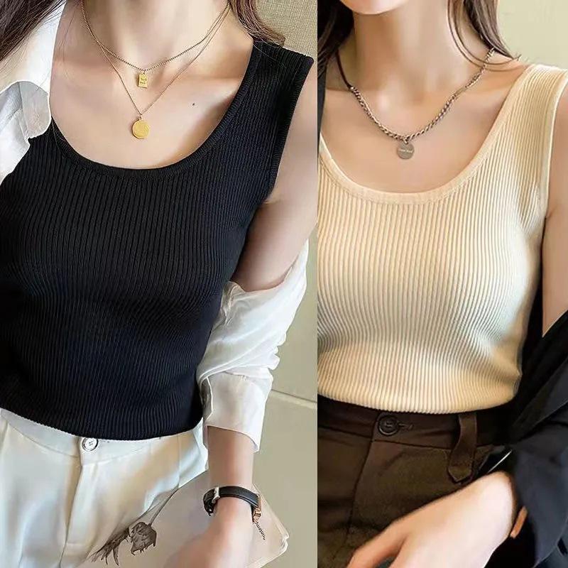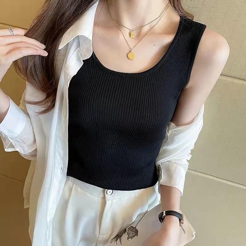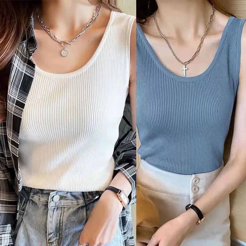 Chaleco de hilo para mujer, ropa exterior de verano, delgada, de seda de hielo, traje de tirantes, base interior, camiseta sin mangas con forma de I, top de verano