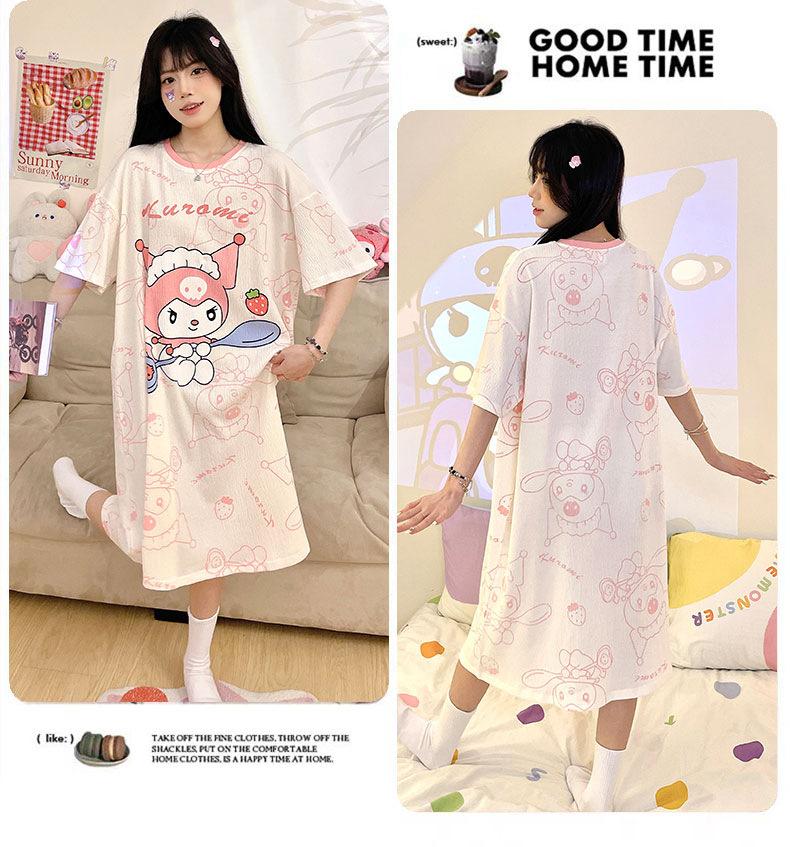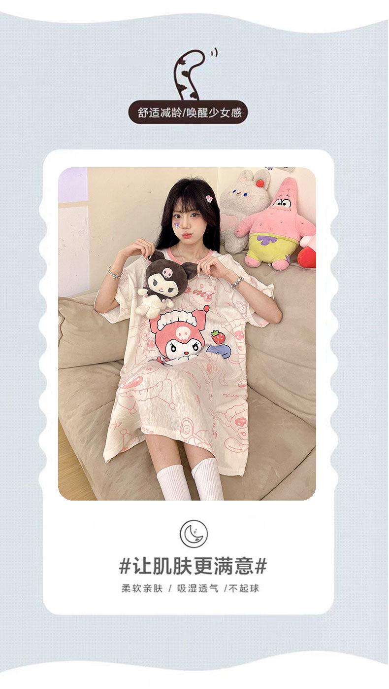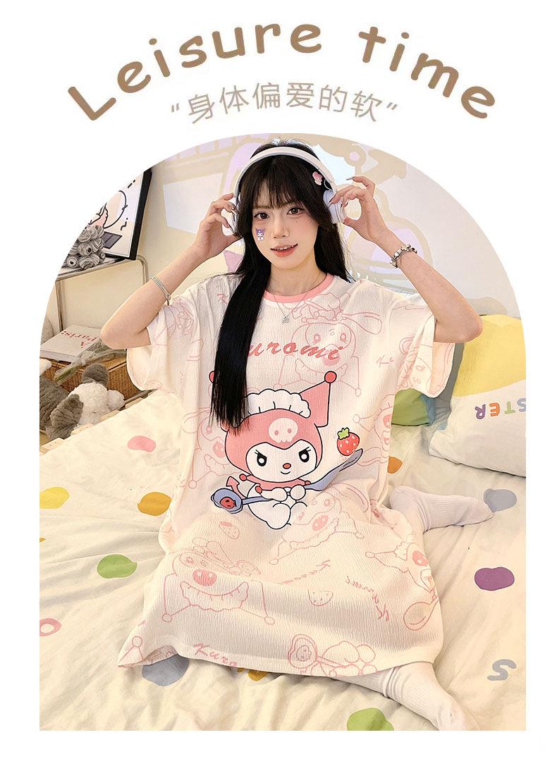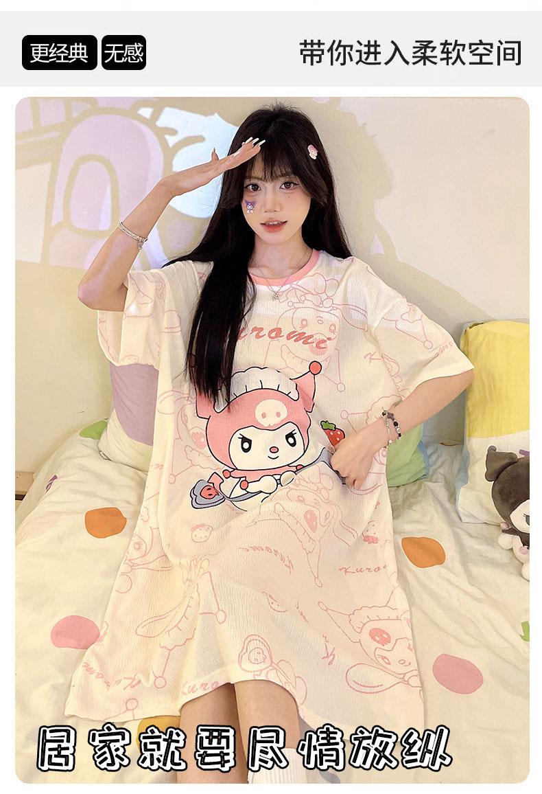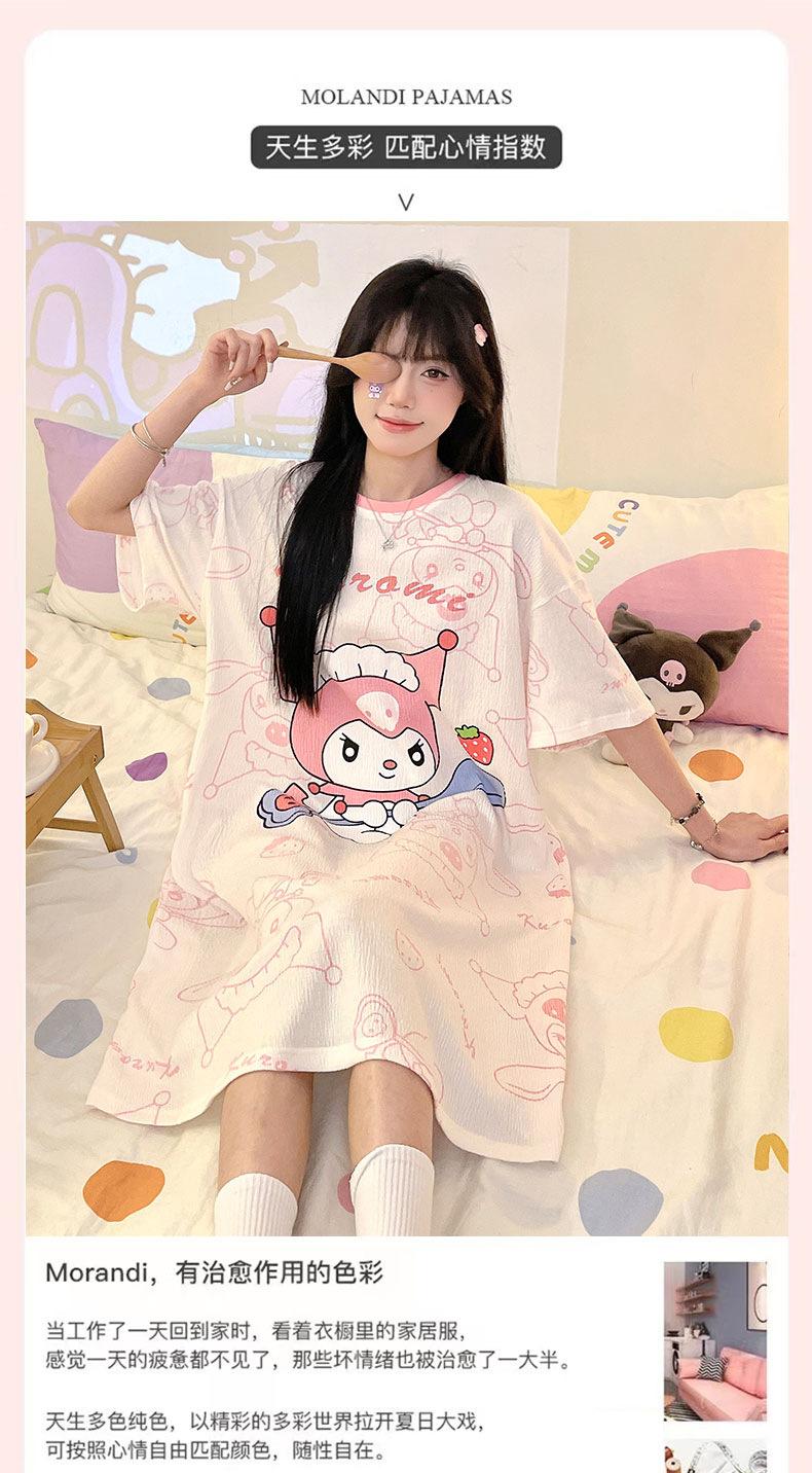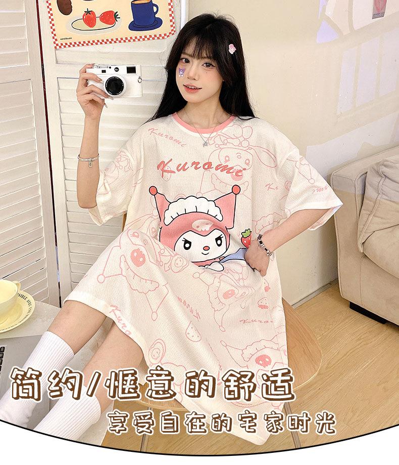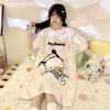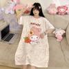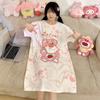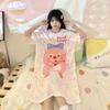 Camisón de verano para mujer, bonito y dulce camisón holgado de manga corta con cuello redondo y dibujos animados, ropa exterior fina para el hogar.