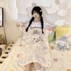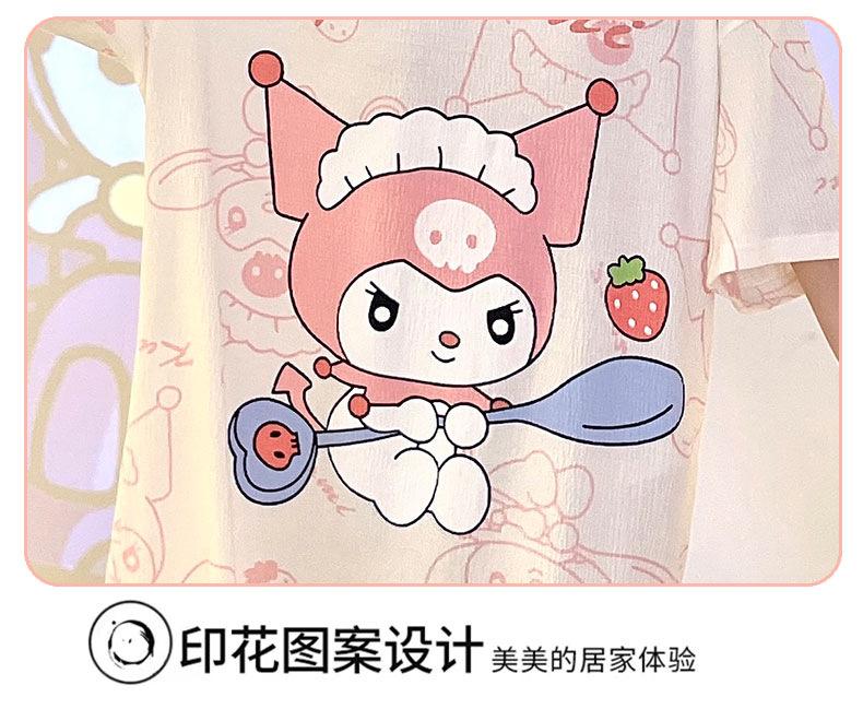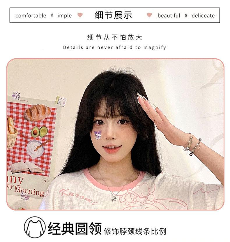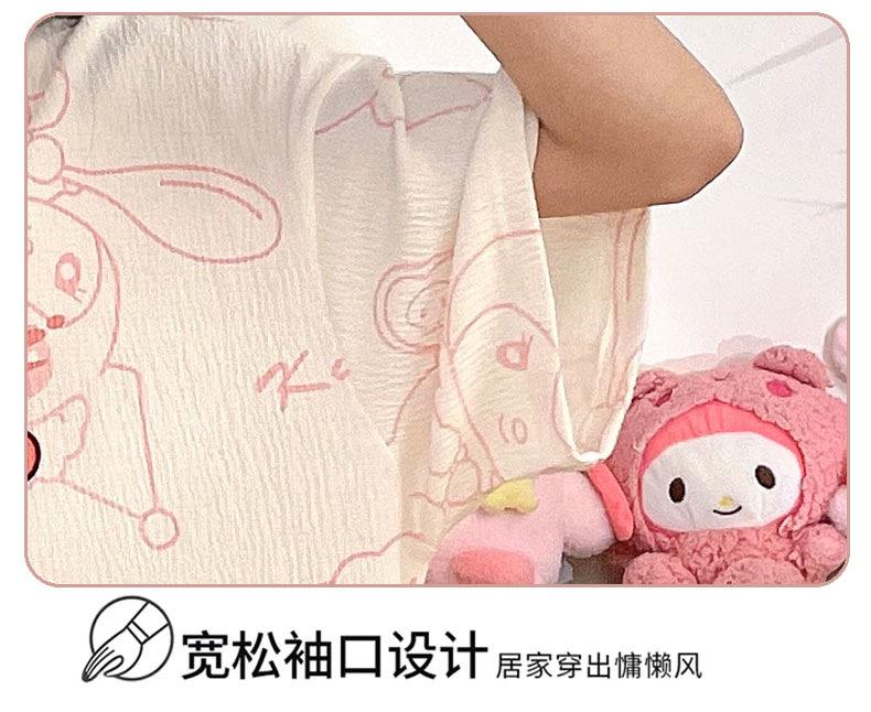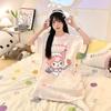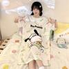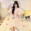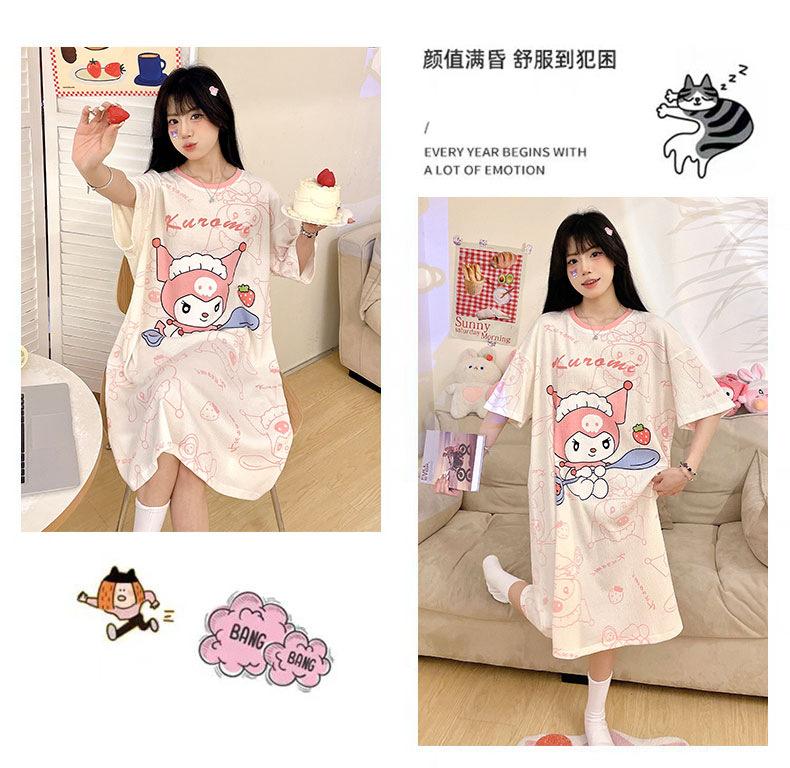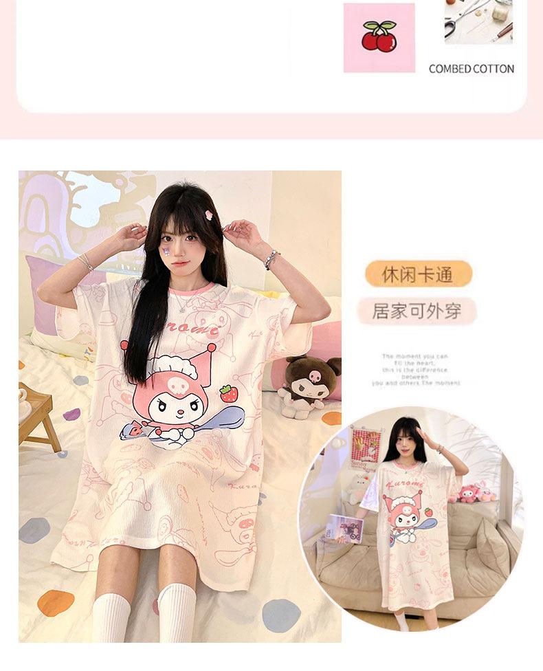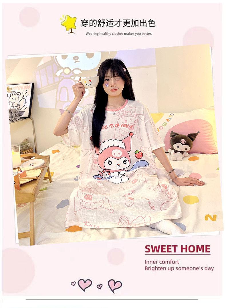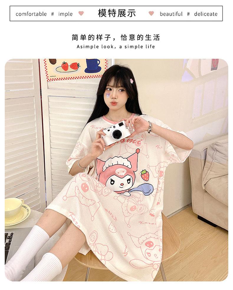 Camisón de verano para mujer, bonito y dulce camisón holgado de manga corta con cuello redondo y dibujos animados, ropa exterior fina para el hogar.