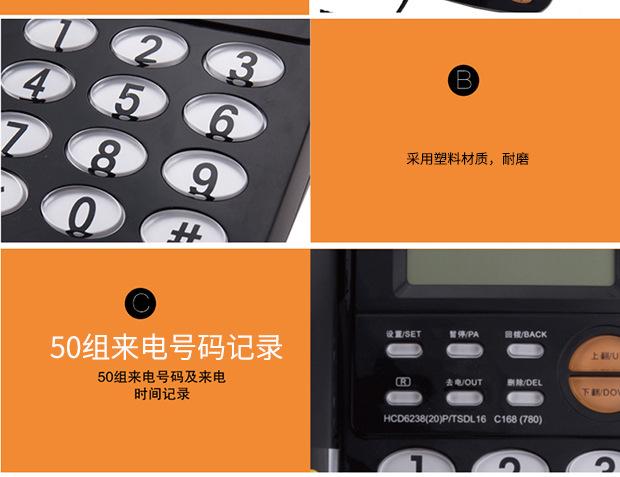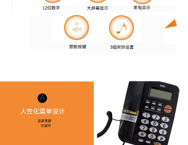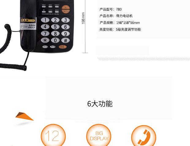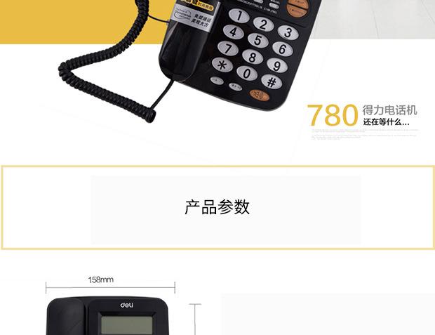 Teléfono Deli 780 Teléfono residencial ligero de lujo con pantalla de llamada, cableado, multifunción, marcación fija, para oficina