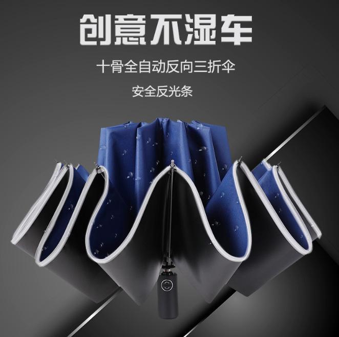 Classic black 10-bone automatic reverse umbrella strong wind resistance
