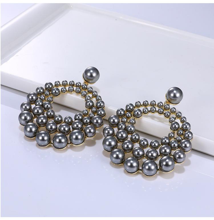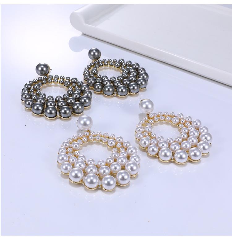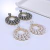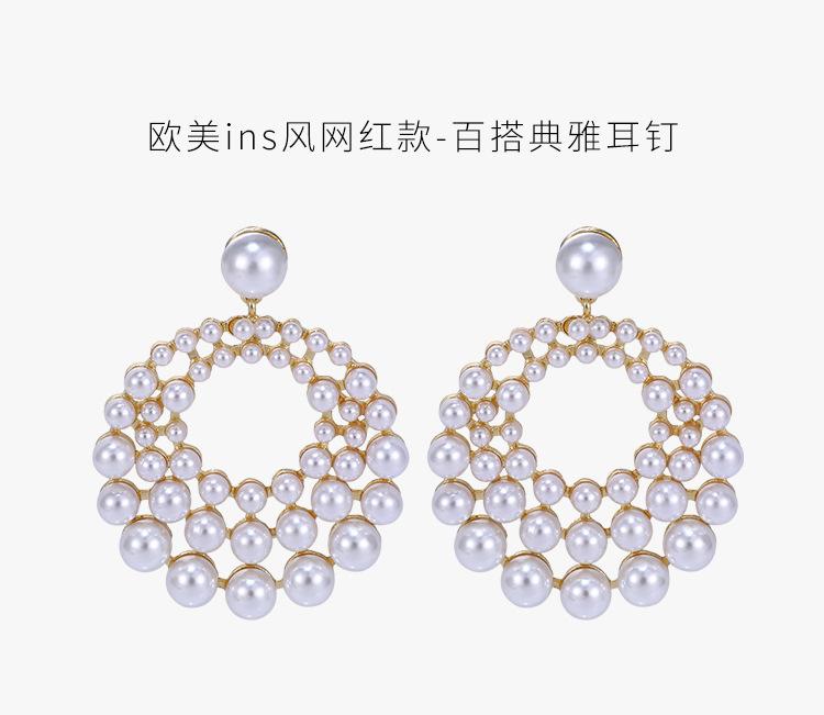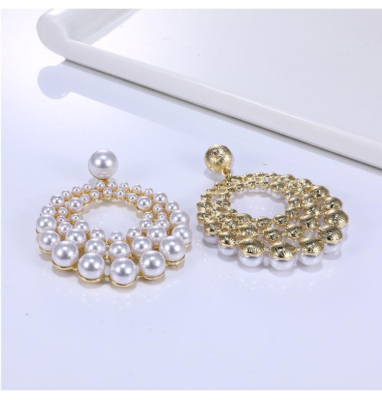 Pendientes de perlas huecas de estilo europeo y americano de Dongdaemun, nuevos y elegantes, de Corea del Sur, con diseño geométrico redondo, para mujer, gran oferta.