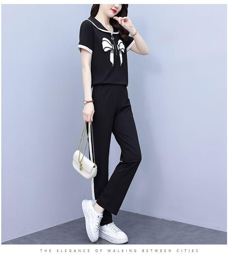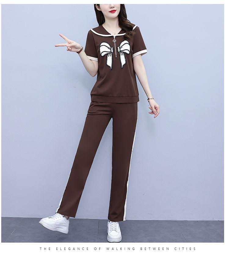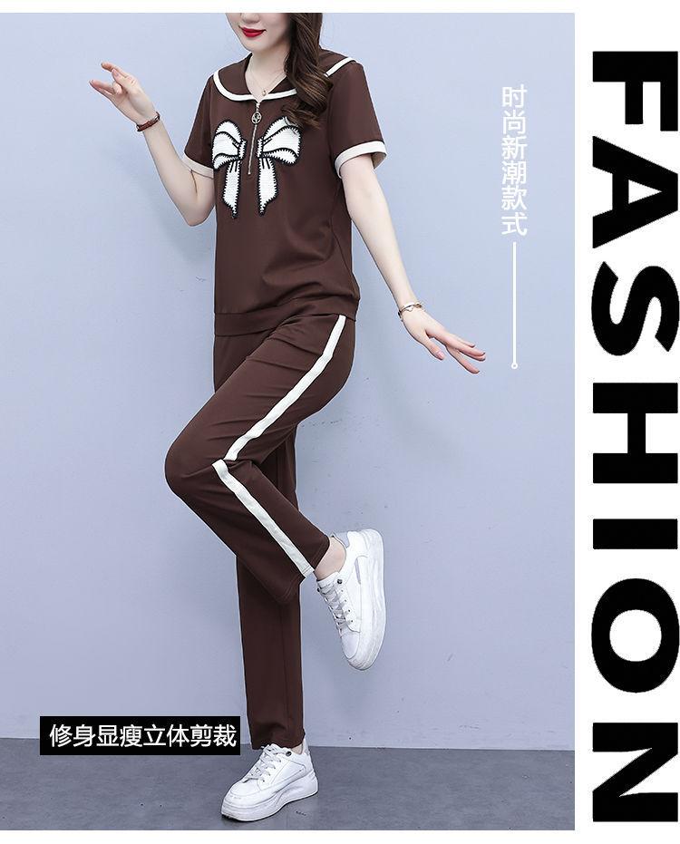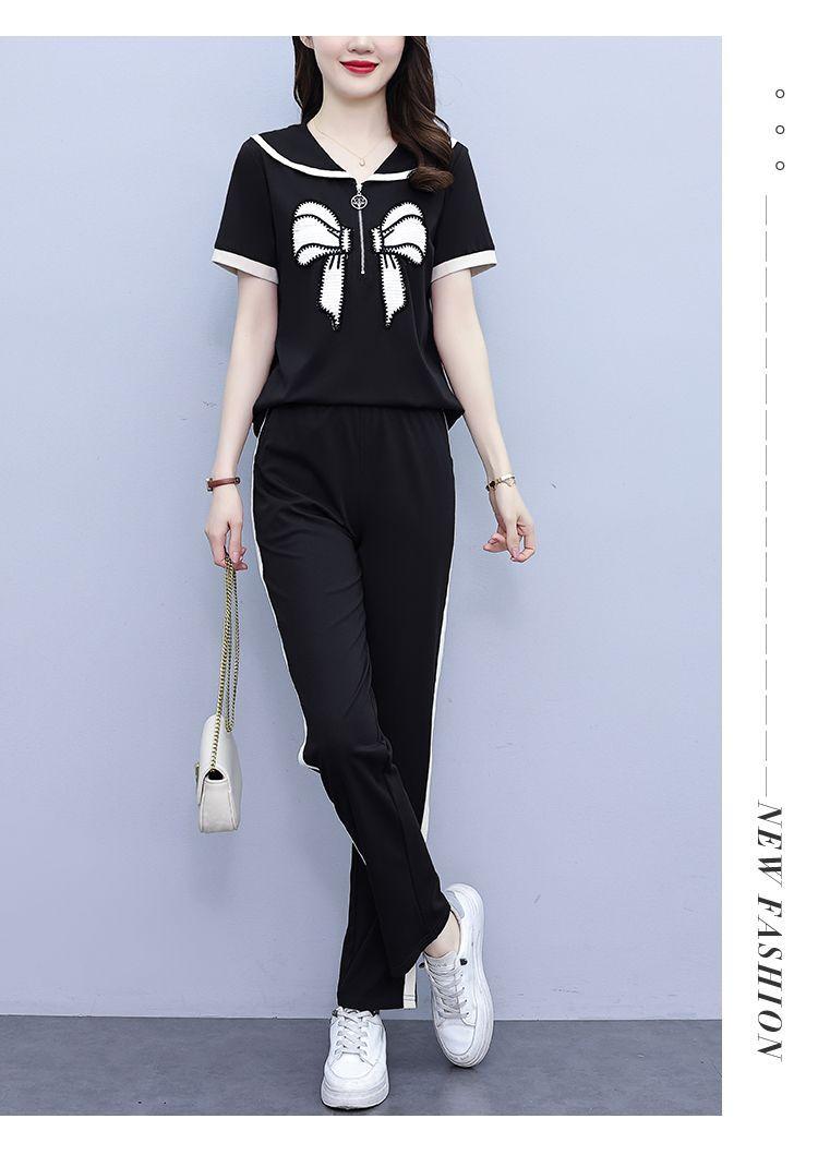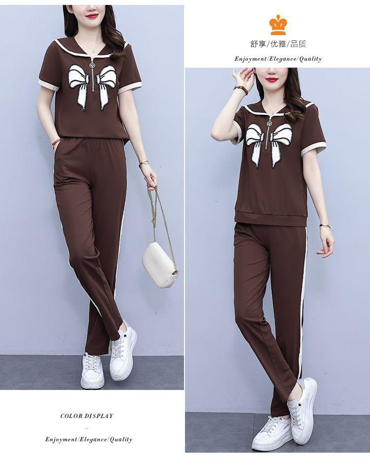 Traje de moda de estilo occidental para mujer, verano 2024, holgado, antiedad, de manga corta, informal, adelgazante, elegante, ropa deportiva