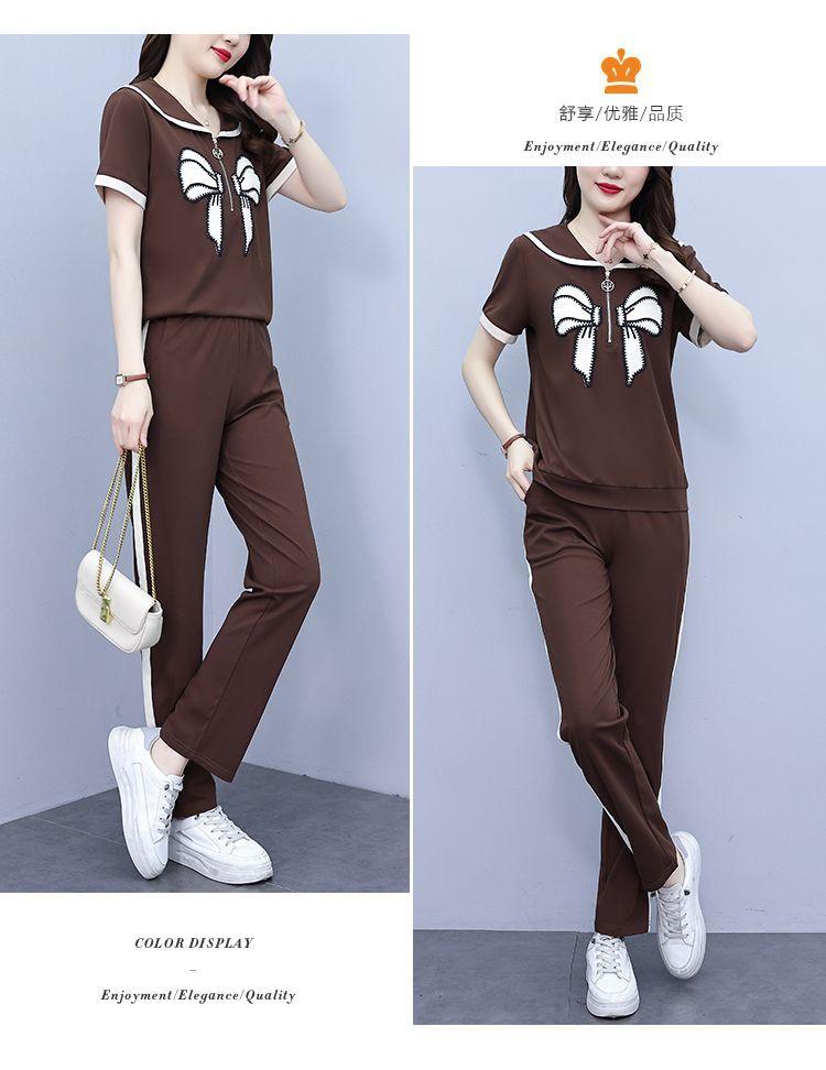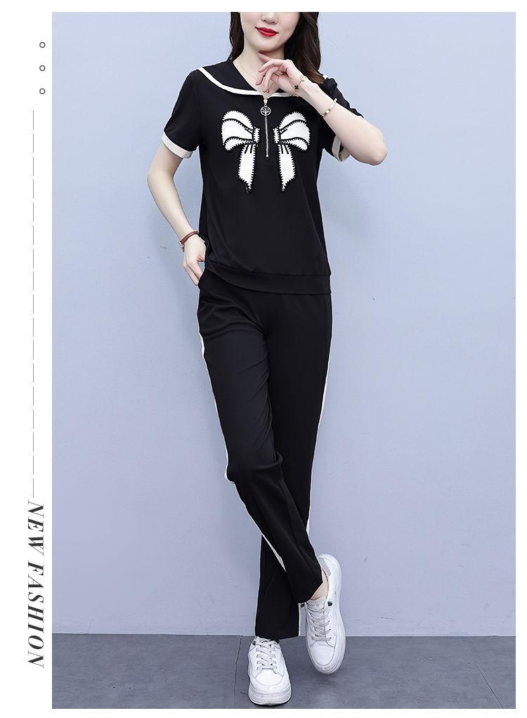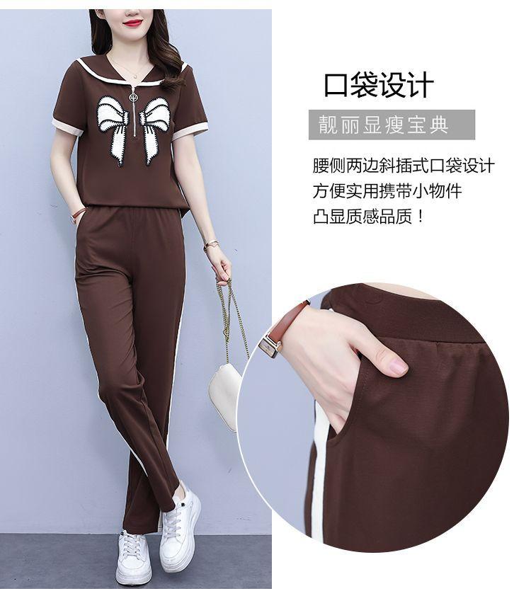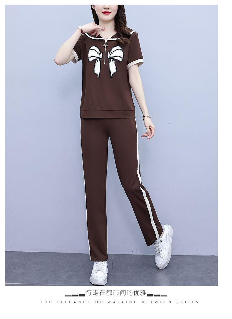 Traje de moda de estilo occidental para mujer, verano 2024, holgado, antiedad, de manga corta, informal, adelgazante, elegante, ropa deportiva