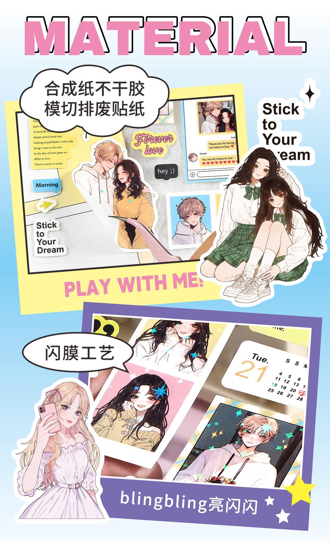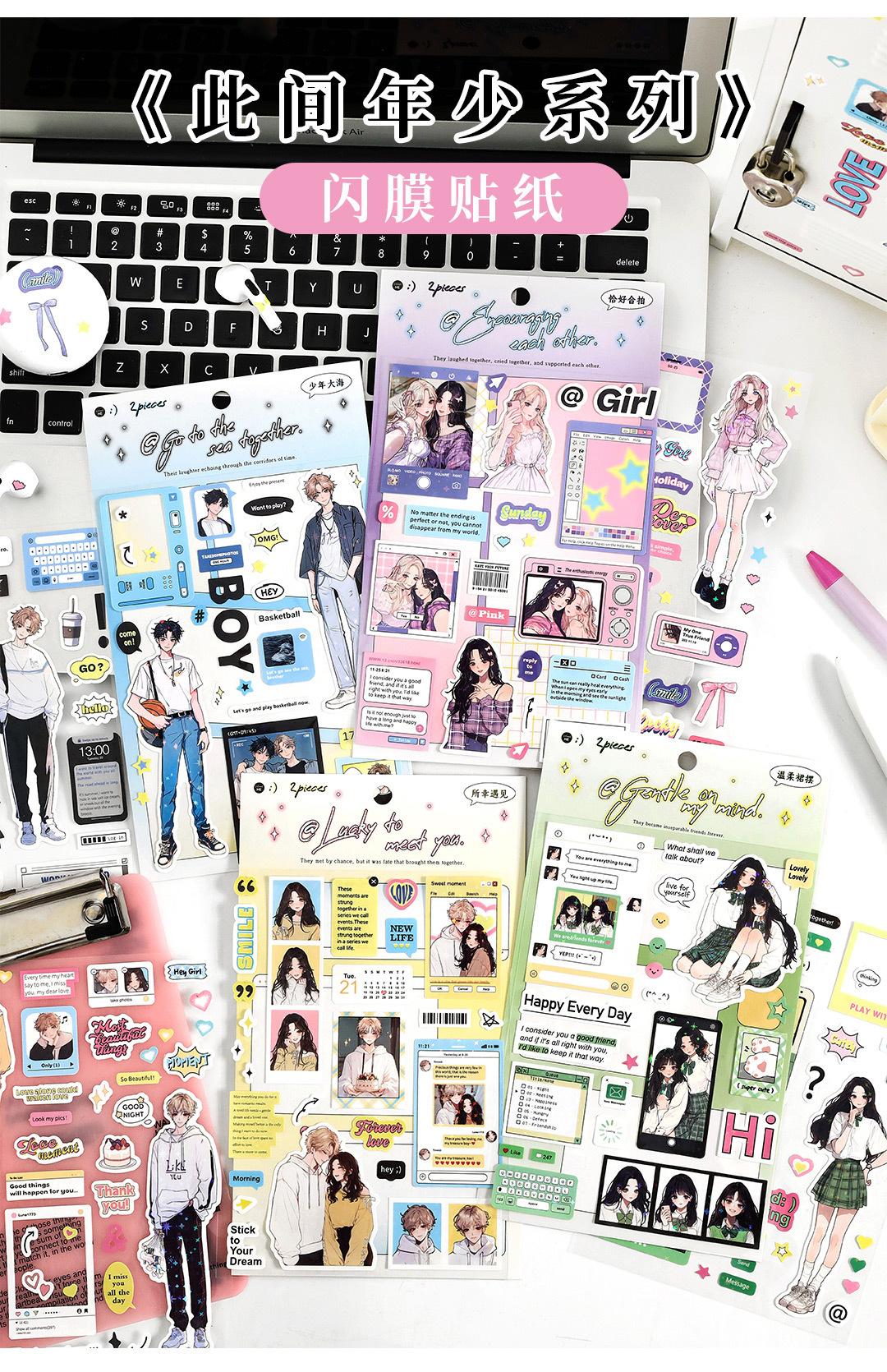 Infeel.Me esta joven serie de pegatinas autoadhesivas de película flash de papel sintético lindas pegatinas de decoración de cuentas de mano de dibujos animados