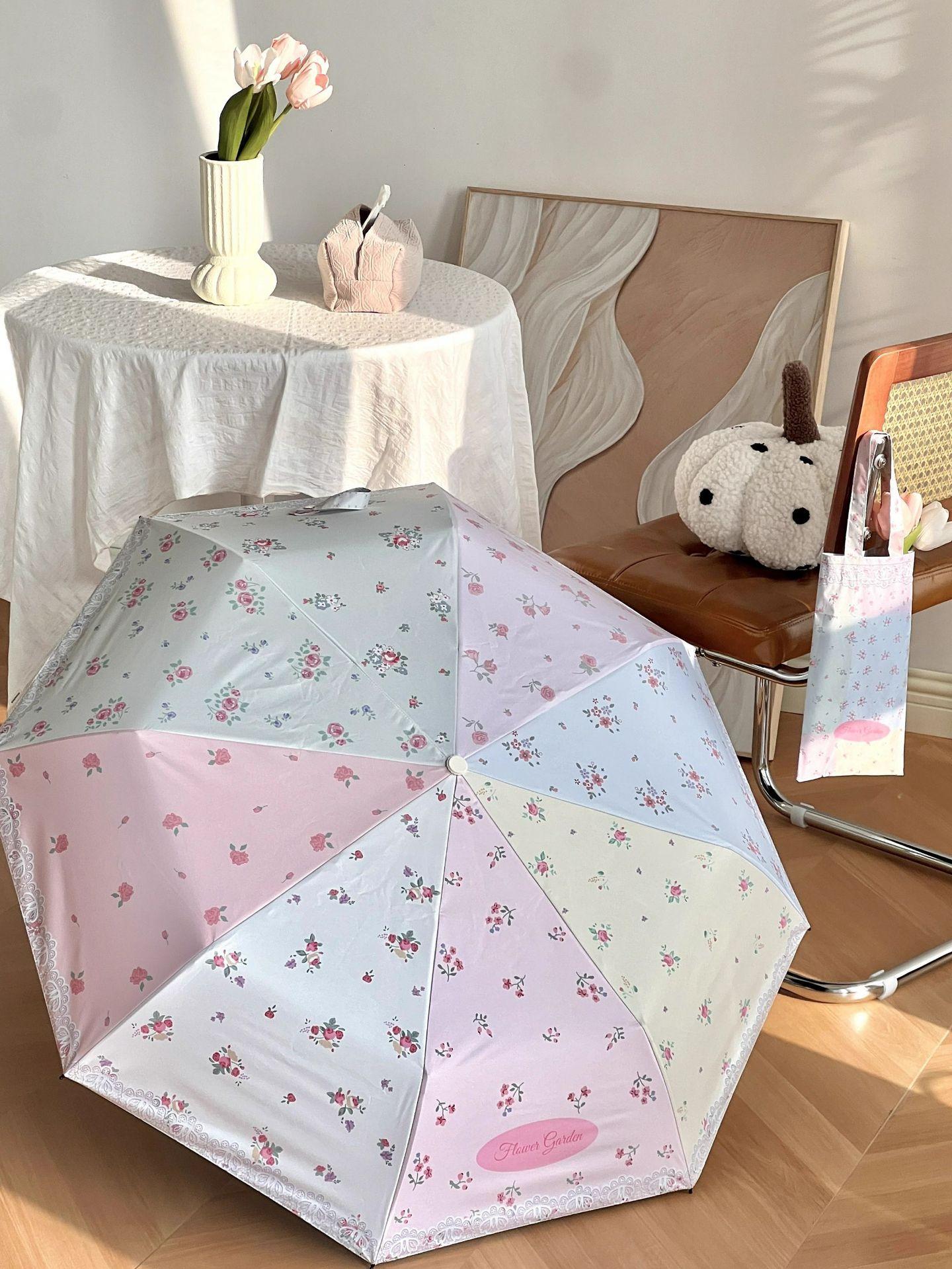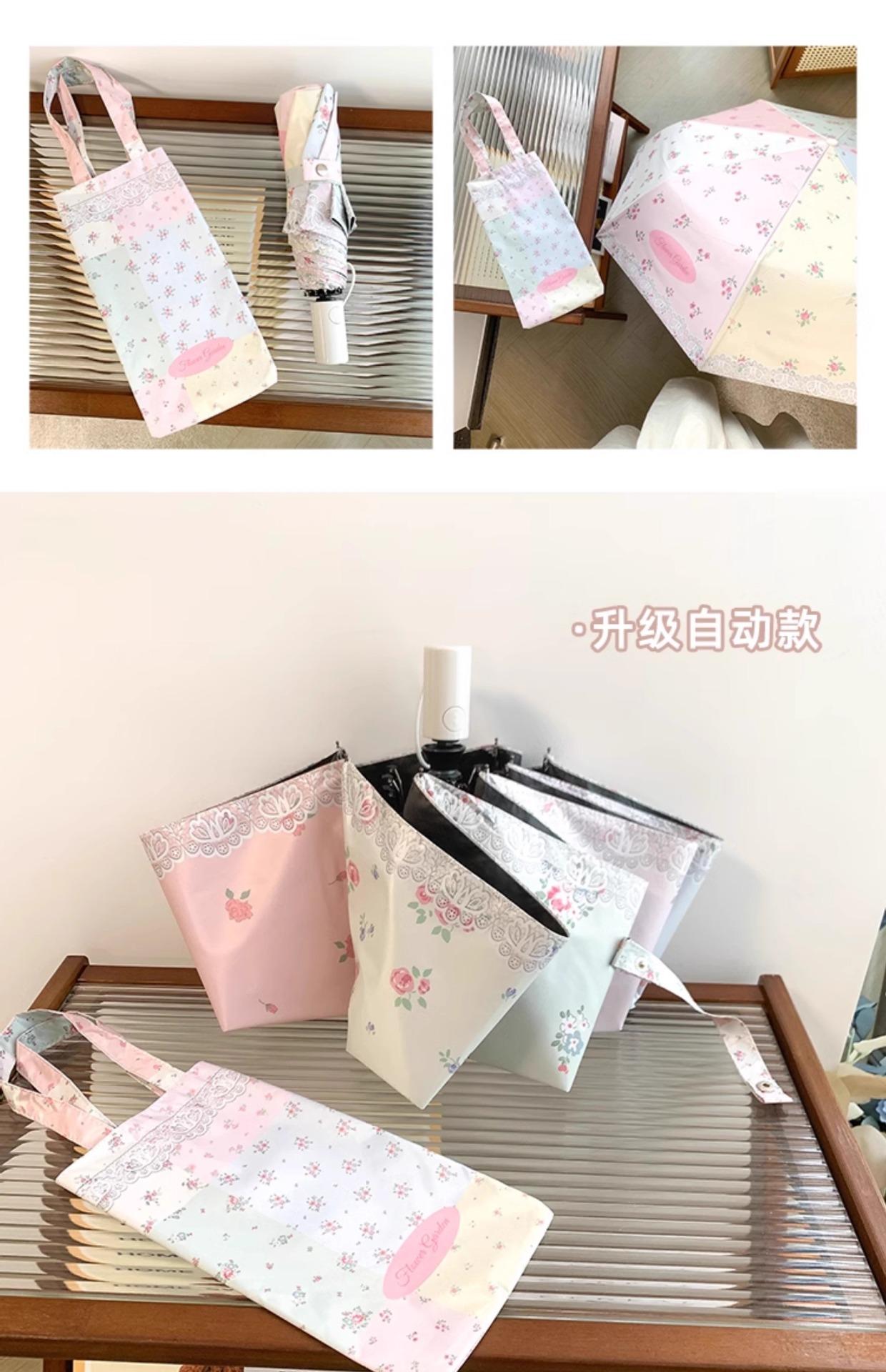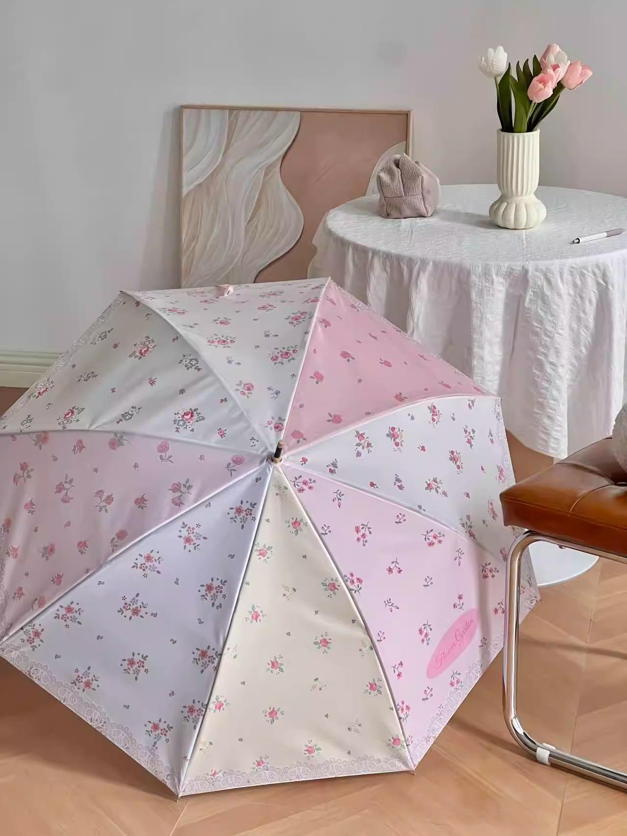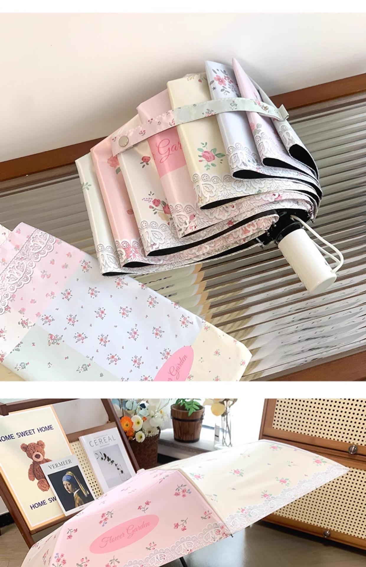 Paraguas Rosy Cute High-End Ins Viento Paraguas Plegable Automático Lluvia o Sol Femenino Doble Uso Sombrilla Paraguas Protección Solar Vinilo Anti-Púrpura