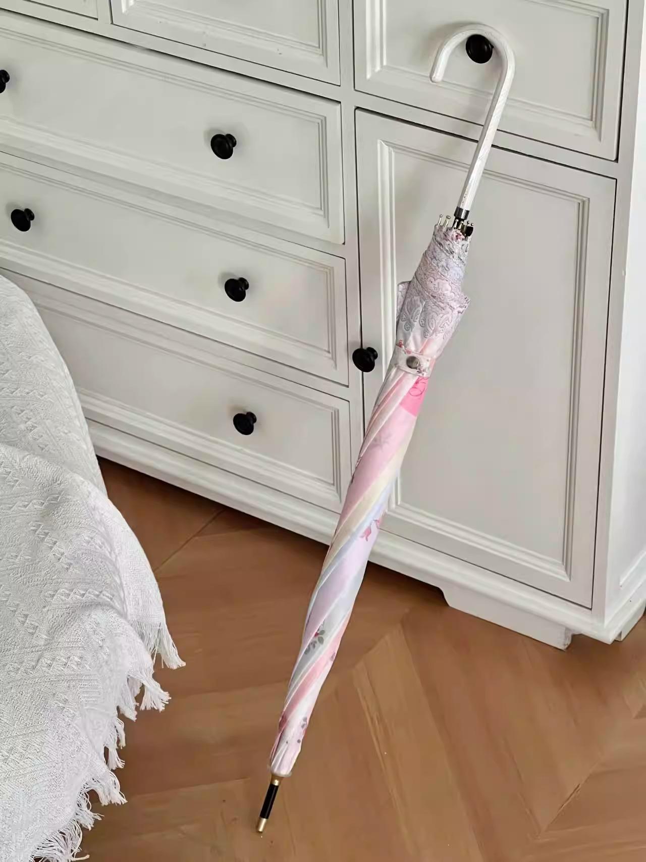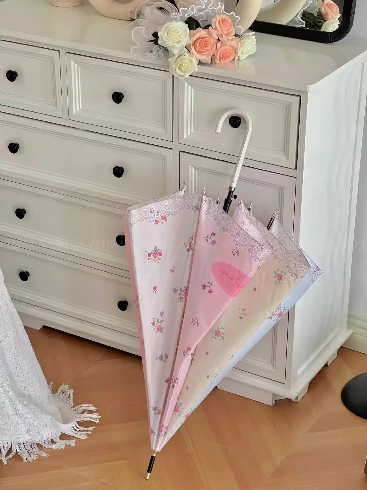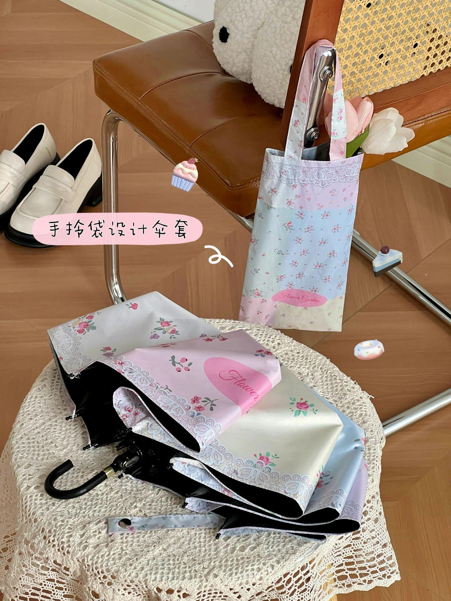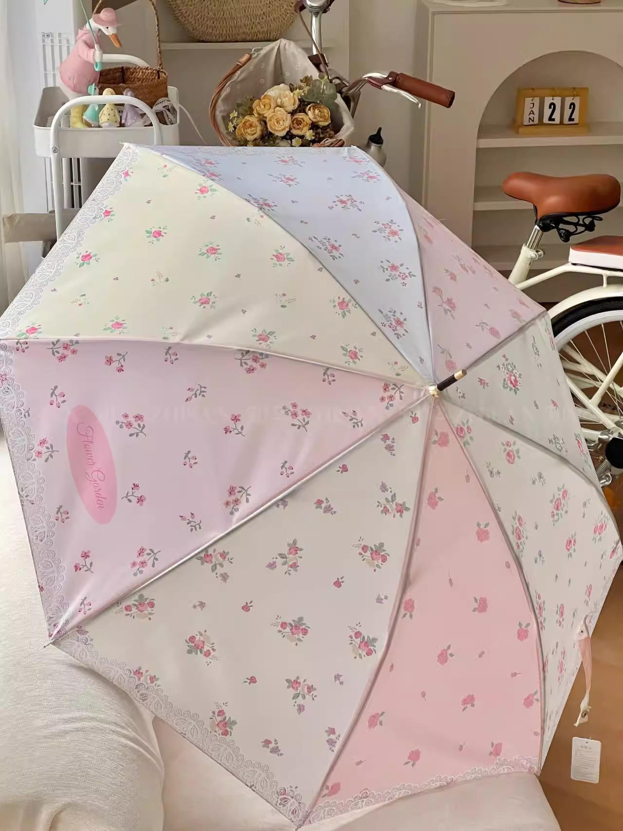 Paraguas Rosy Cute High-End Ins Viento Paraguas Plegable Automático Lluvia o Sol Femenino Doble Uso Sombrilla Paraguas Protección Solar Vinilo Anti-Púrpura