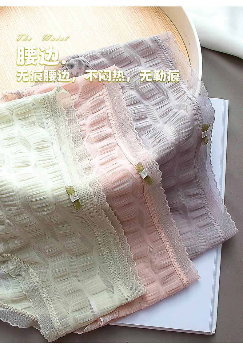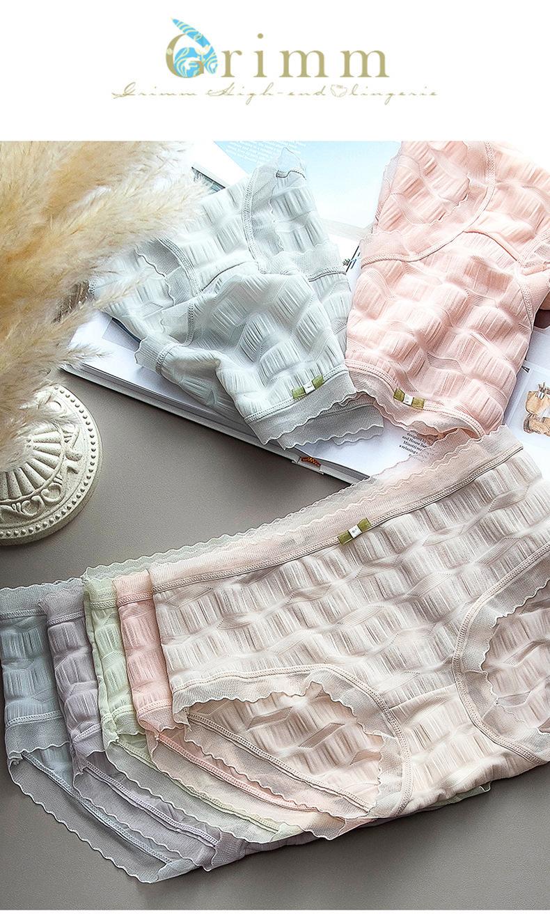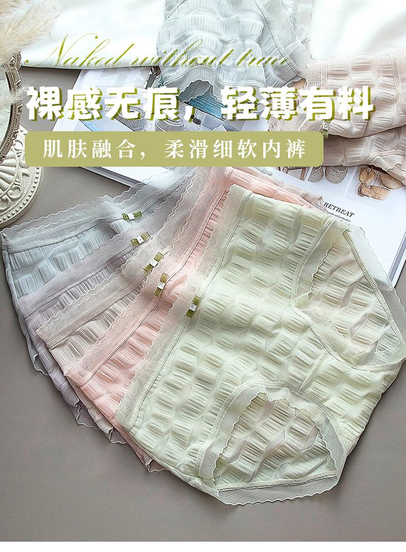 Ropa interior sin costuras con borde de encaje para mujer, pantalones de burbuja transpirables, cómodos, sexys, de cintura media, antibacterianos, con entrepierna para niña