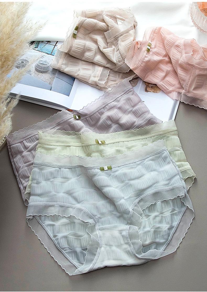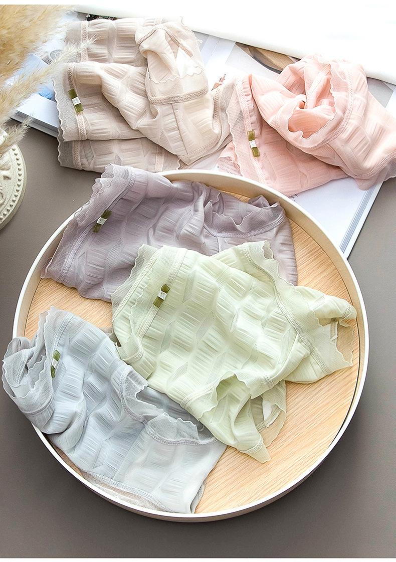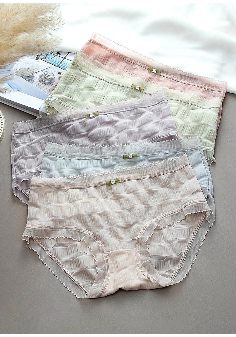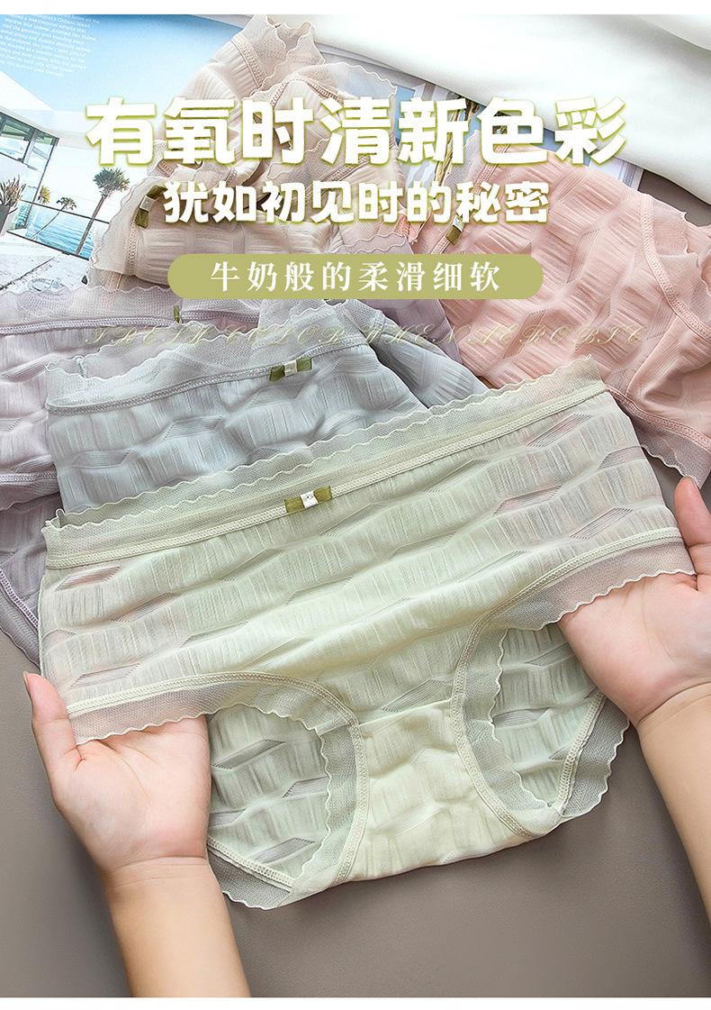 Ropa interior sin costuras con borde de encaje para mujer, pantalones de burbuja transpirables, cómodos, sexys, de cintura media, antibacterianos, con entrepierna para niña