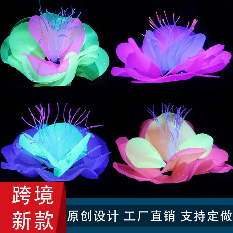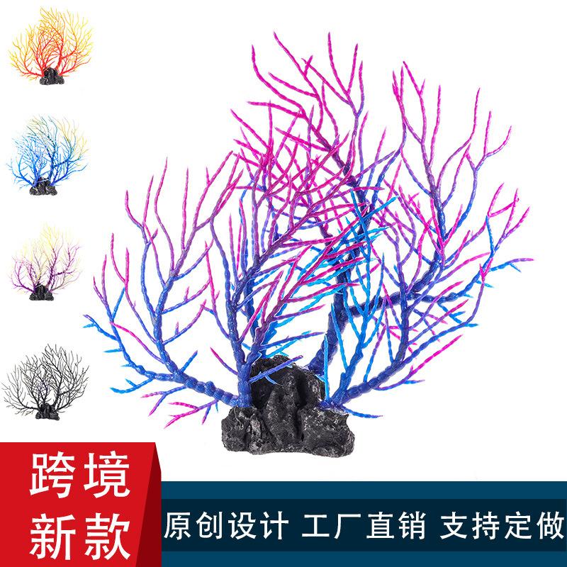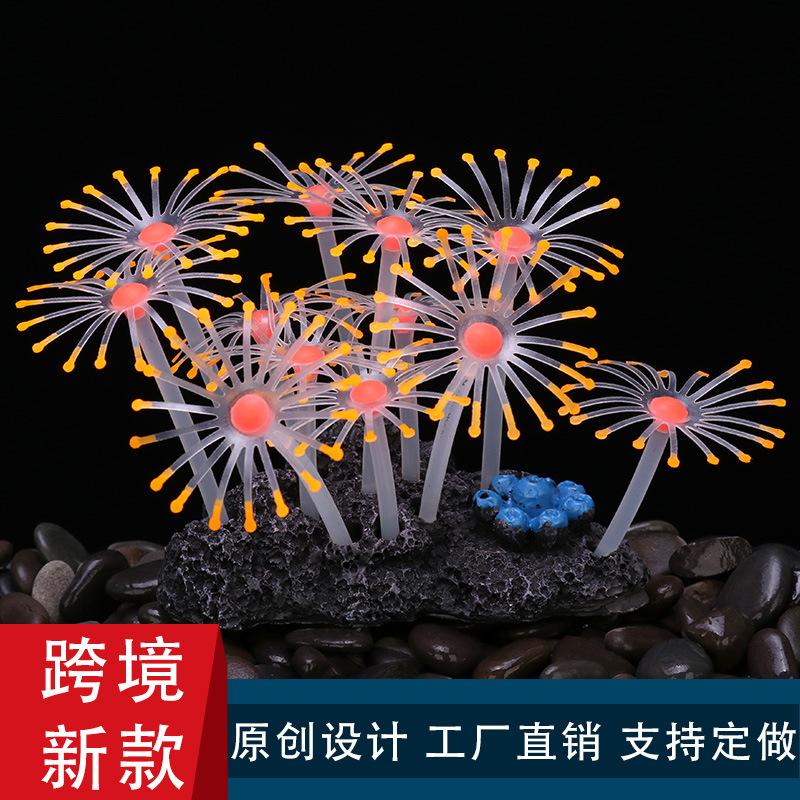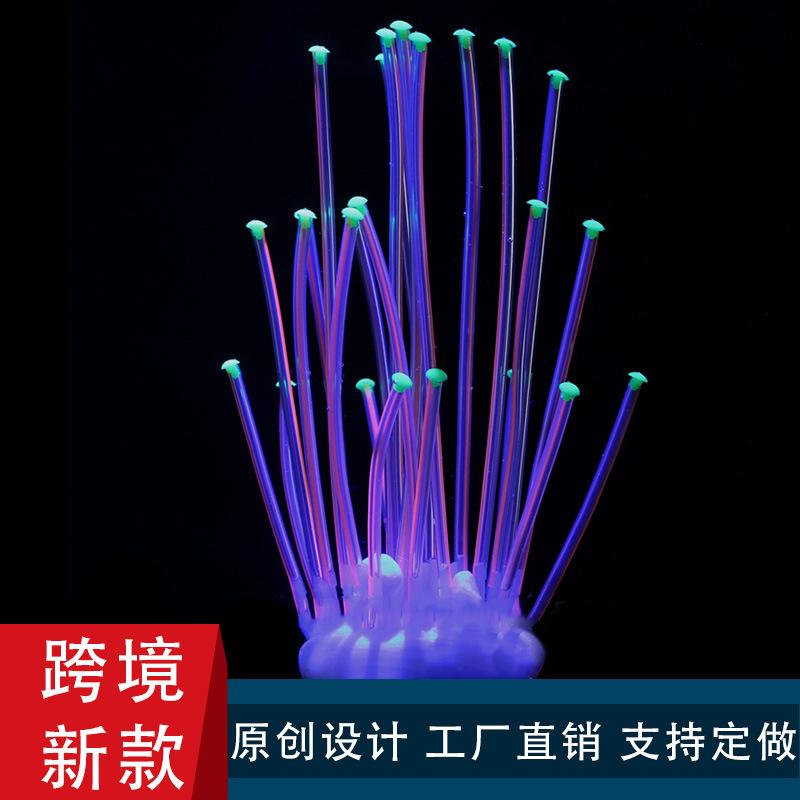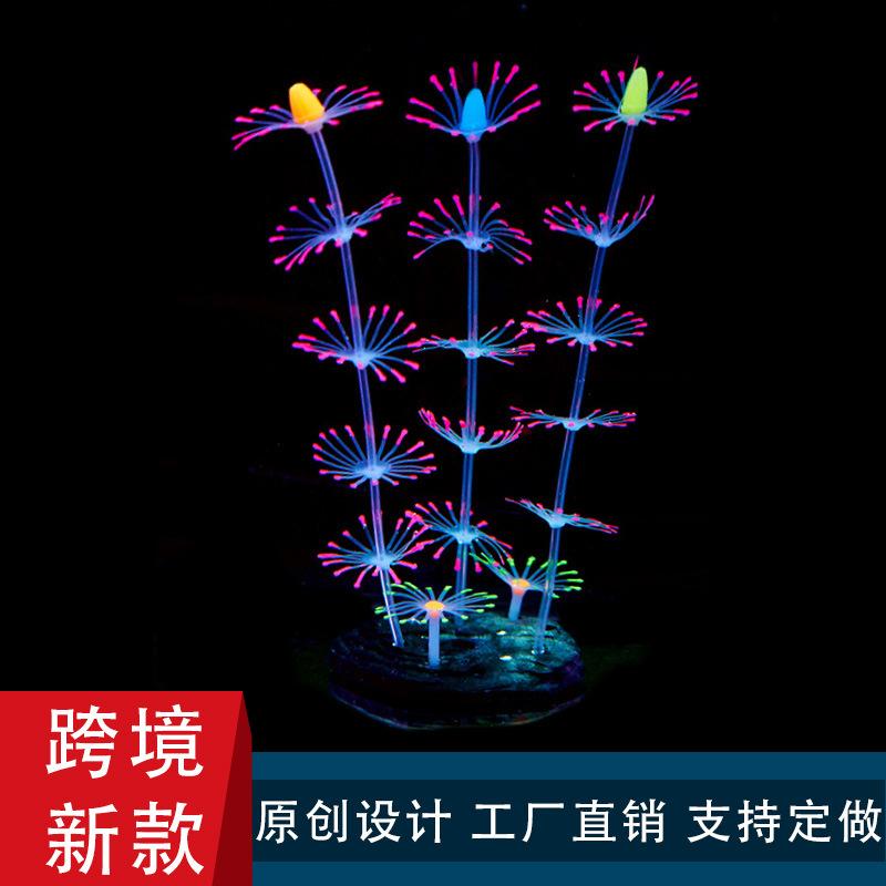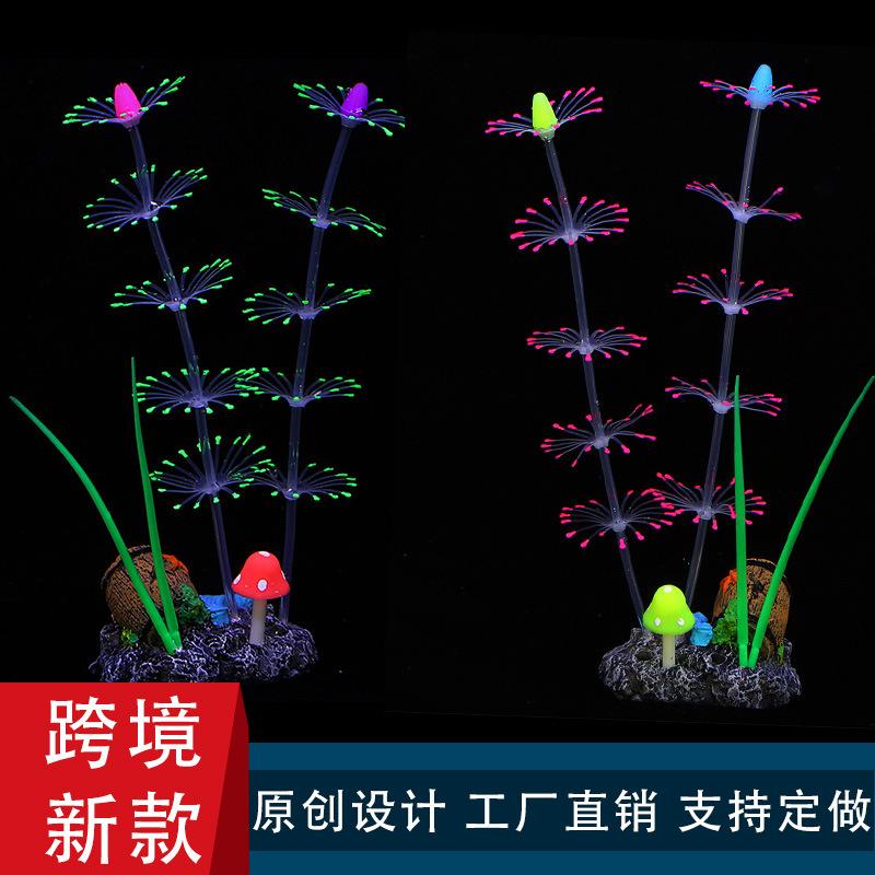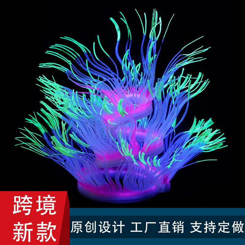 Suministros transfronterizos para acuarios, paisajismo de peceras, decoración de silicona, plumas suaves, coral luminoso, hierba acuática, coral simulado.