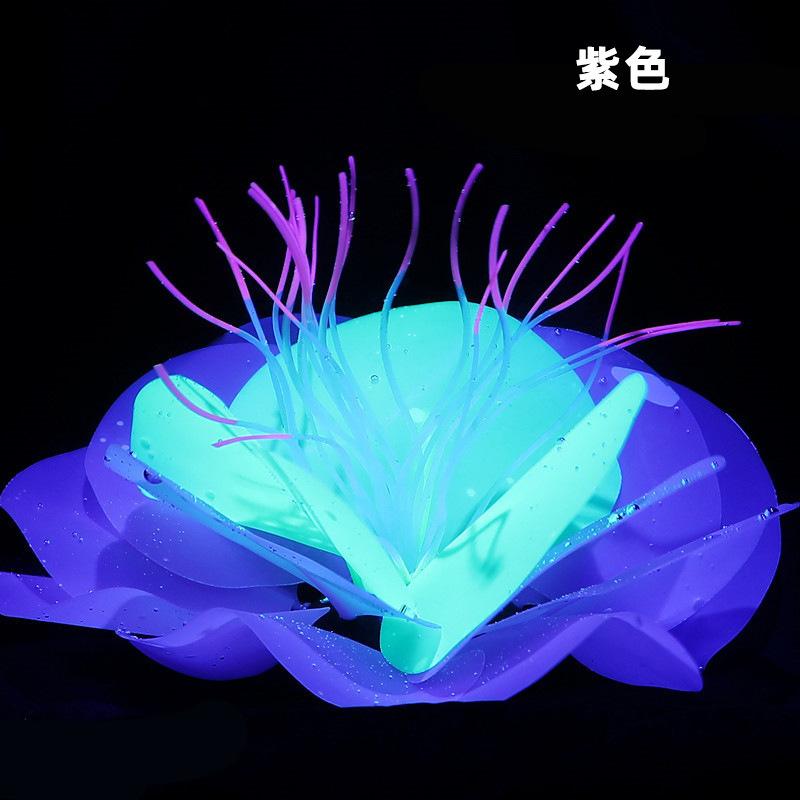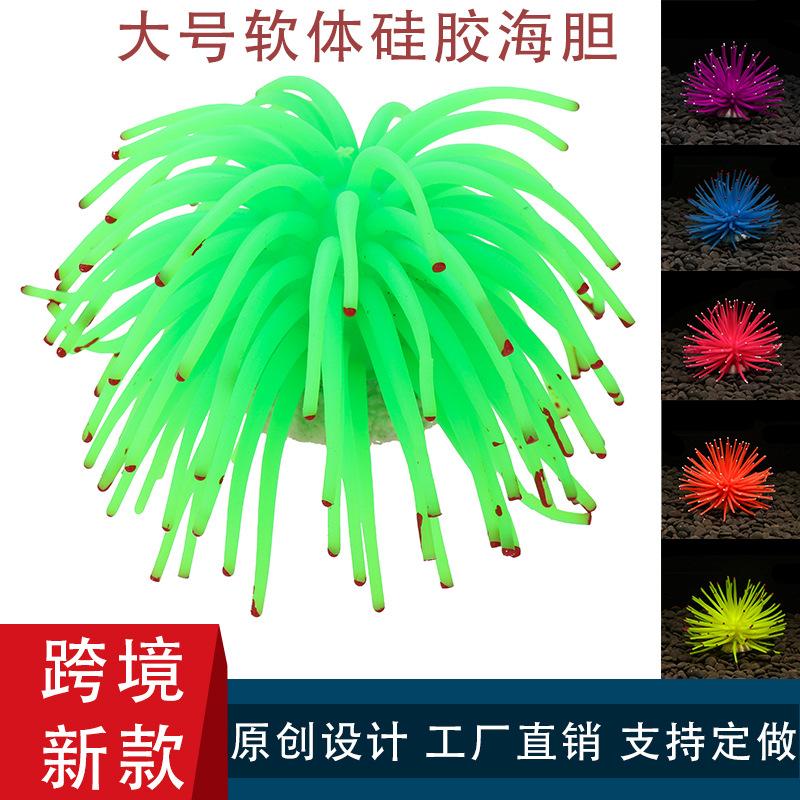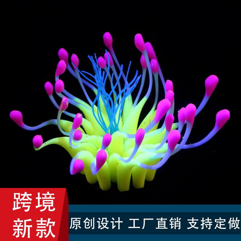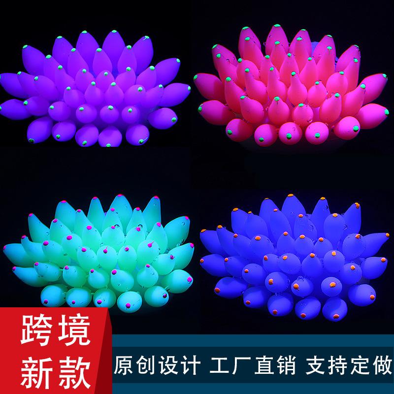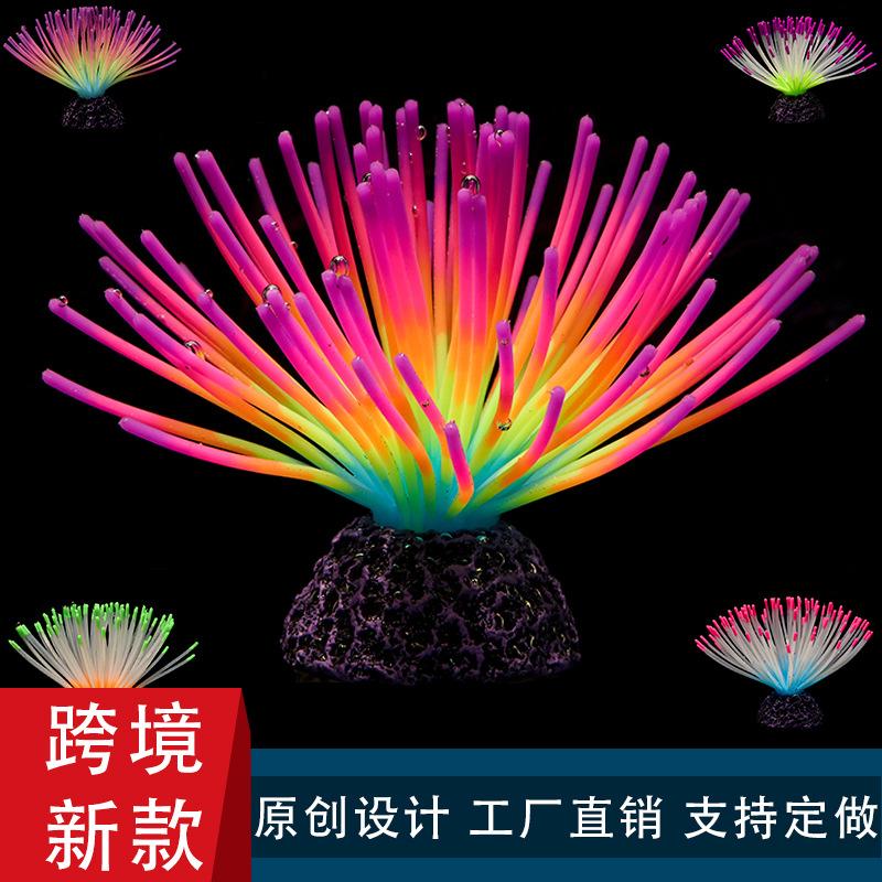 Simulación de color transfronterizo al por mayor con base de silicona suave fluorescente, plantas acuáticas, simulación de erizo de mar, decoración paisajística para peceras.