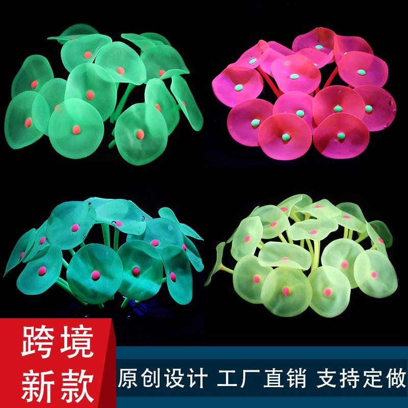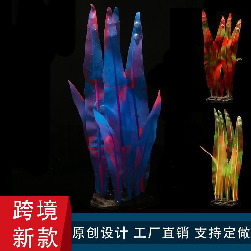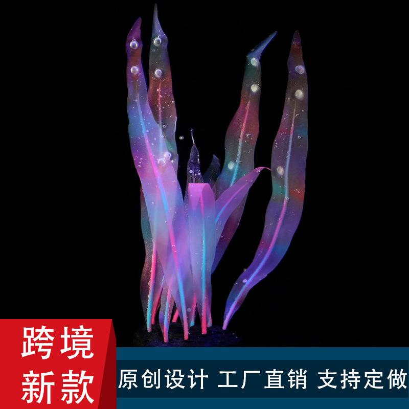 Adornos de decoración paisajística para peceras transfronterizas, simulación de coral blando de silicona luminosa, plantas acuáticas falsas de plástico, plantas acuáticas de simulación.