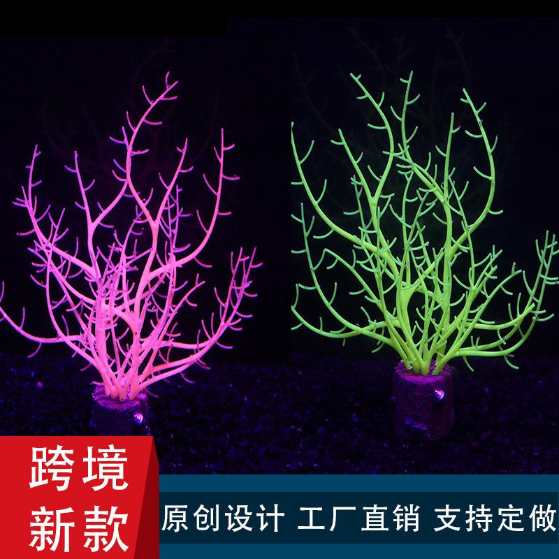 Decoración paisajística de acuario transfronterizo, plástico, silicona, suave, simulación falsa, hierba de agua, algas fluorescentes, hierba de coral.
