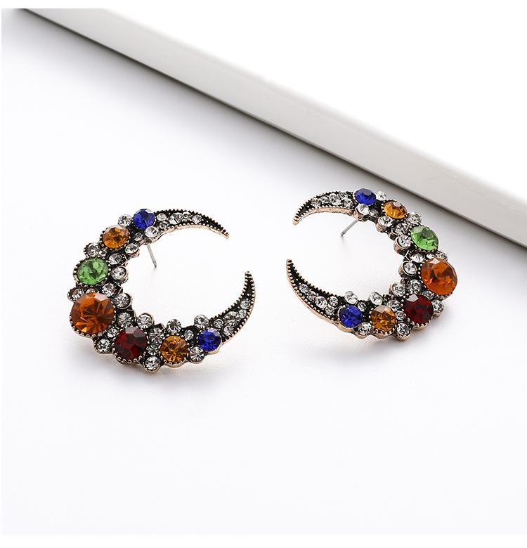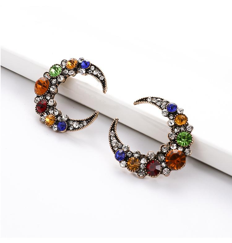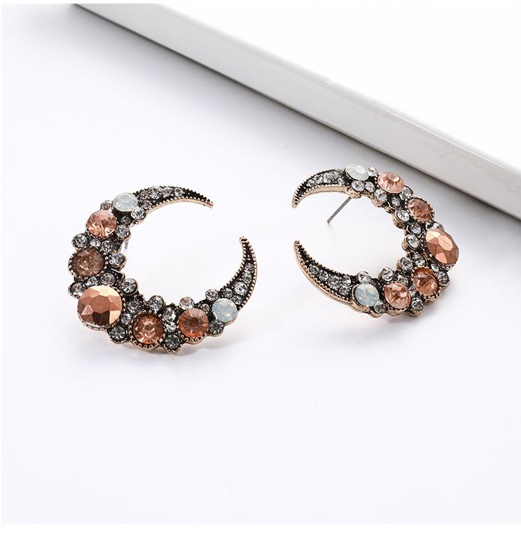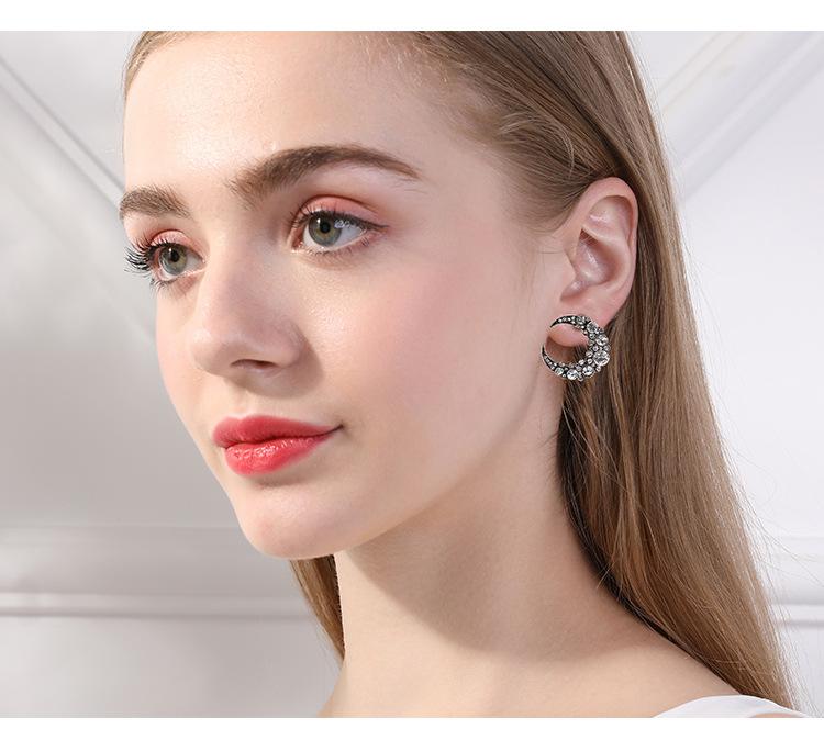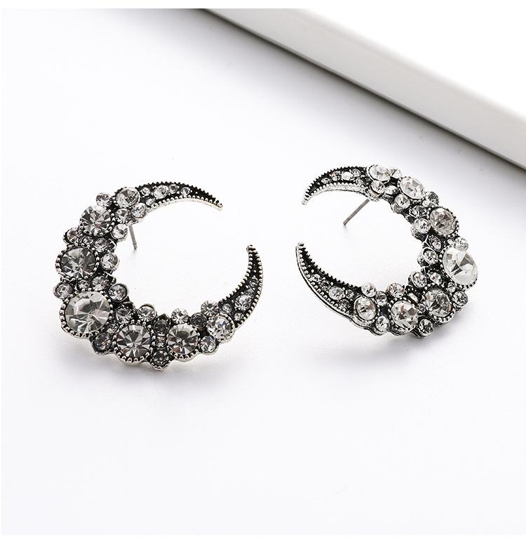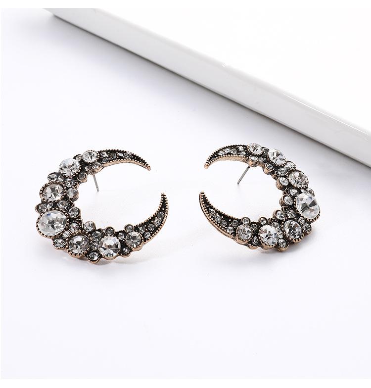 Pendientes de media luna con diamantes de imitación de estilo retro europeo y americano, pendientes de luna con diamantes de imitación de aleación de alta calidad, pendientes transfronterizos.