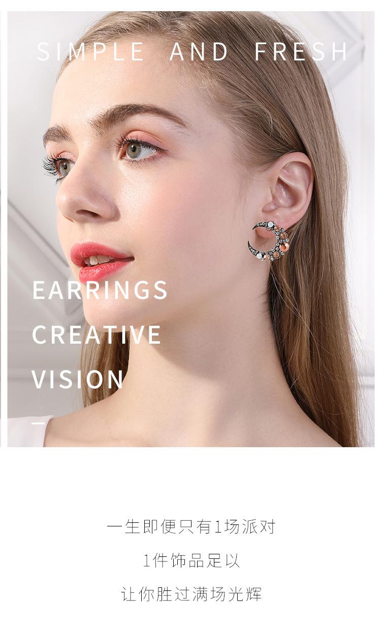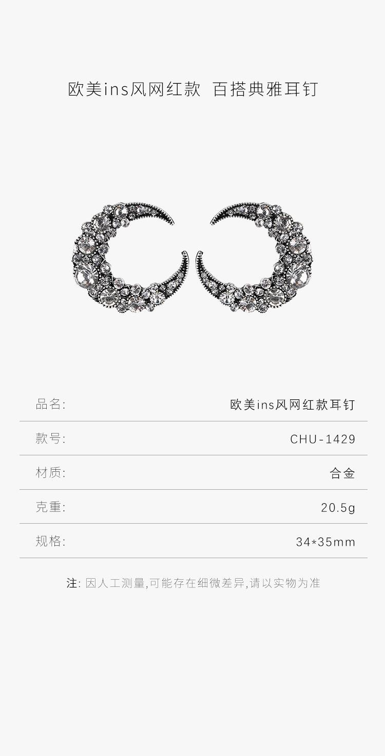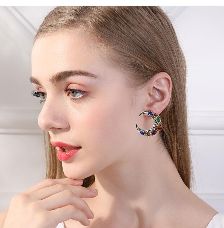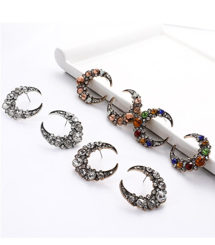 Pendientes de media luna con diamantes de imitación de estilo retro europeo y americano, pendientes de luna con diamantes de imitación de aleación de alta calidad, pendientes transfronterizos.