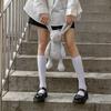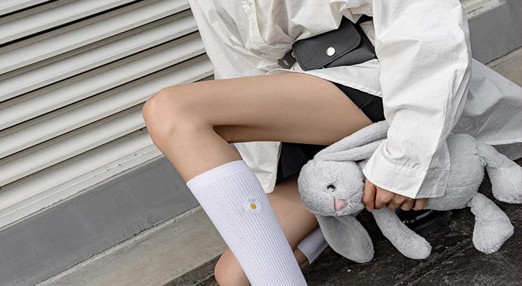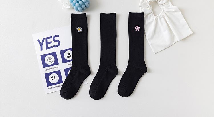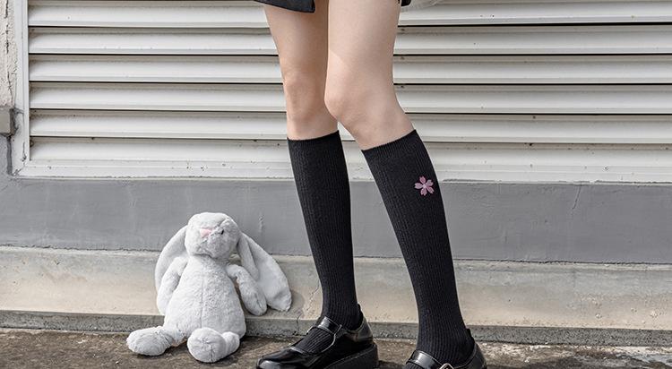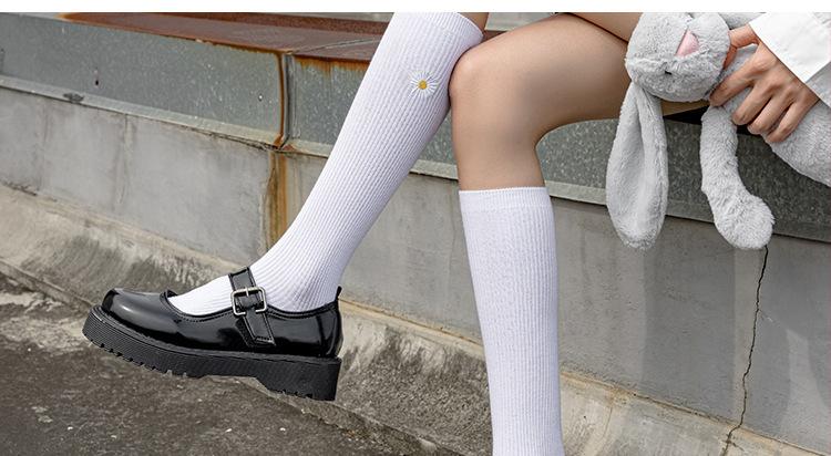 Calcetines de media pantorrilla blancos y negros para mujer, Calcetines largos hasta la rodilla de otoño, Calcetines de algodón de color sólido estilo Jk de caña alta, Calcetines altos por encima de la rodilla, Piernas hermosas