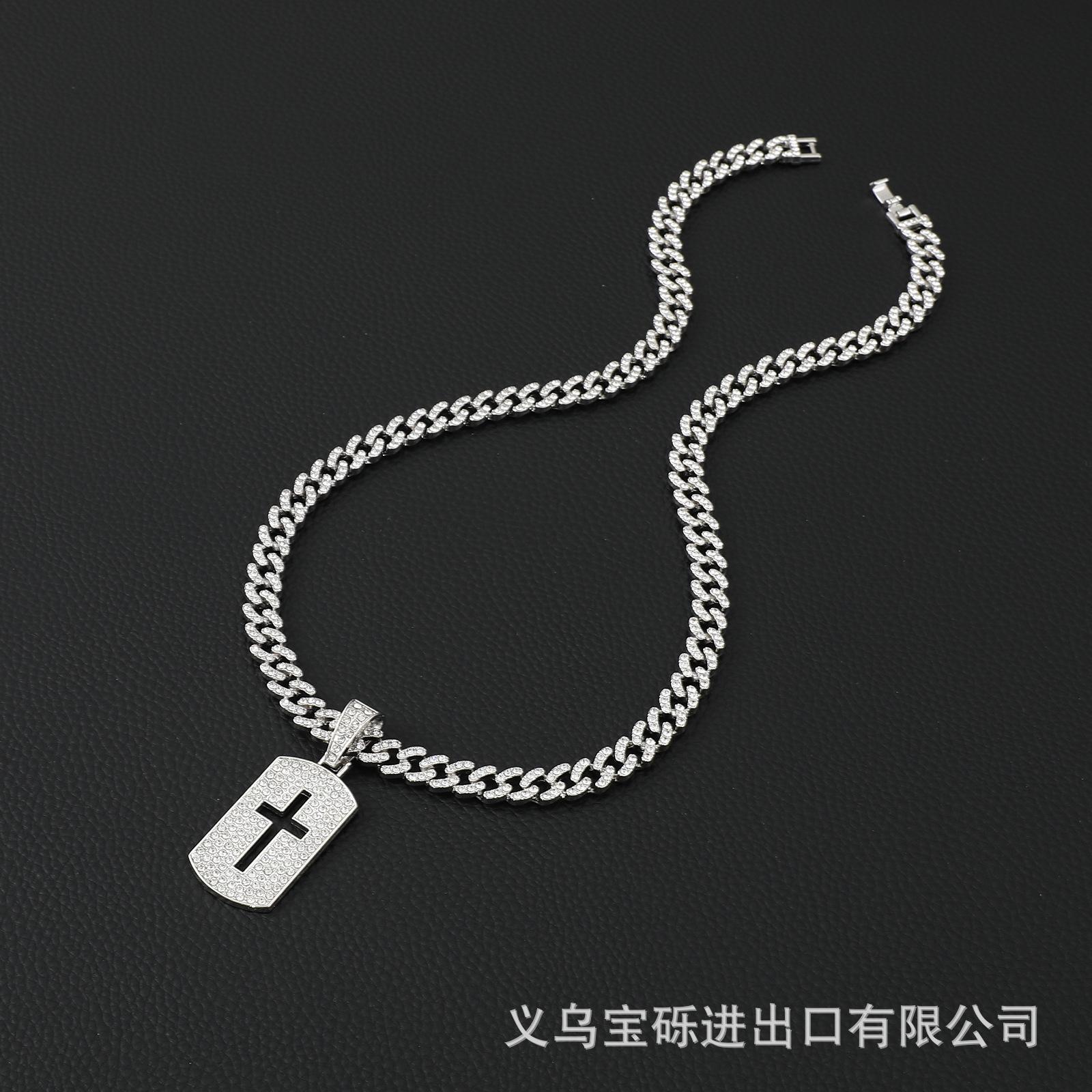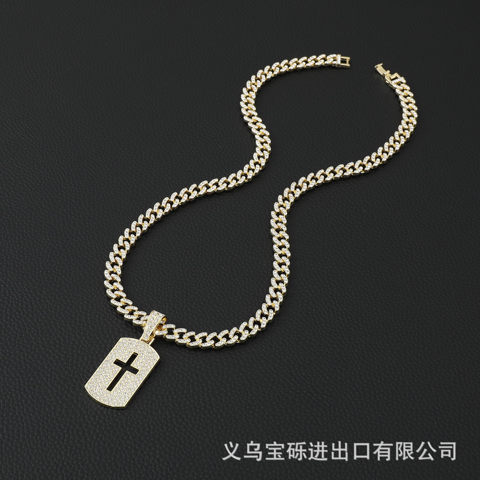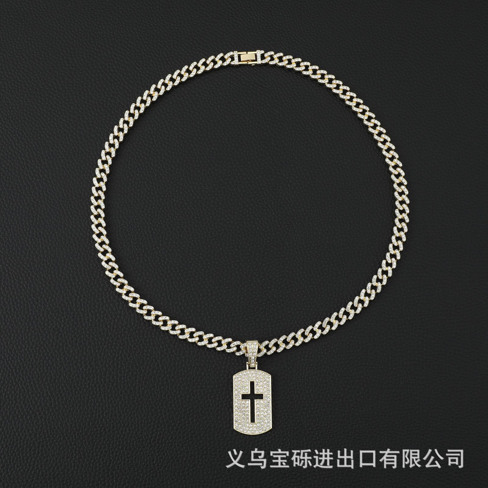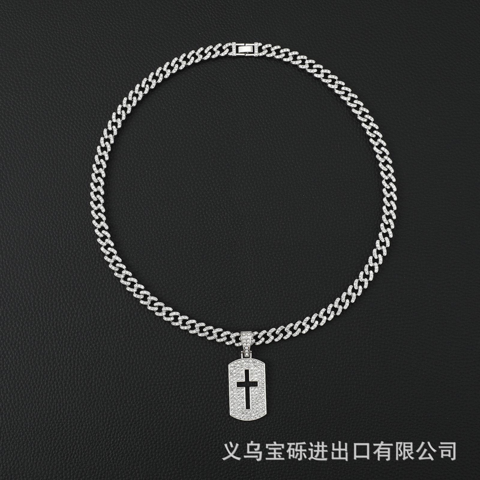 Collar de hip hop transfronterizo para Europa y América, con personalidad, cadena cubana de diamantes brillantes, colgante de aleación con cruz de diamantes, joyería de hip hop.