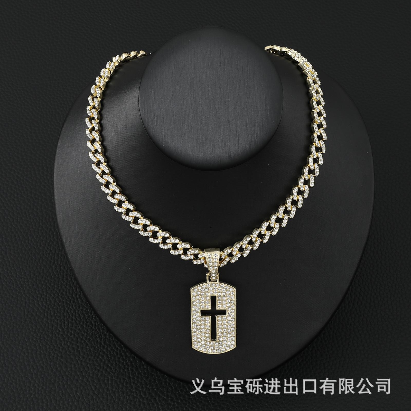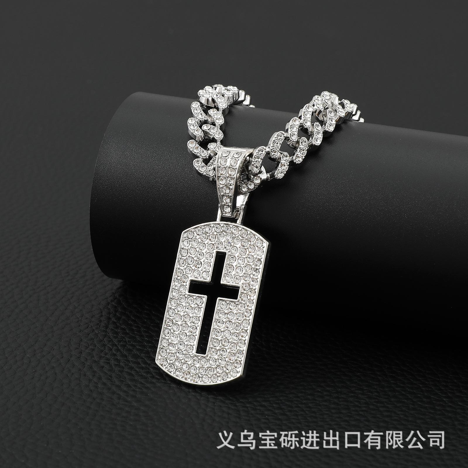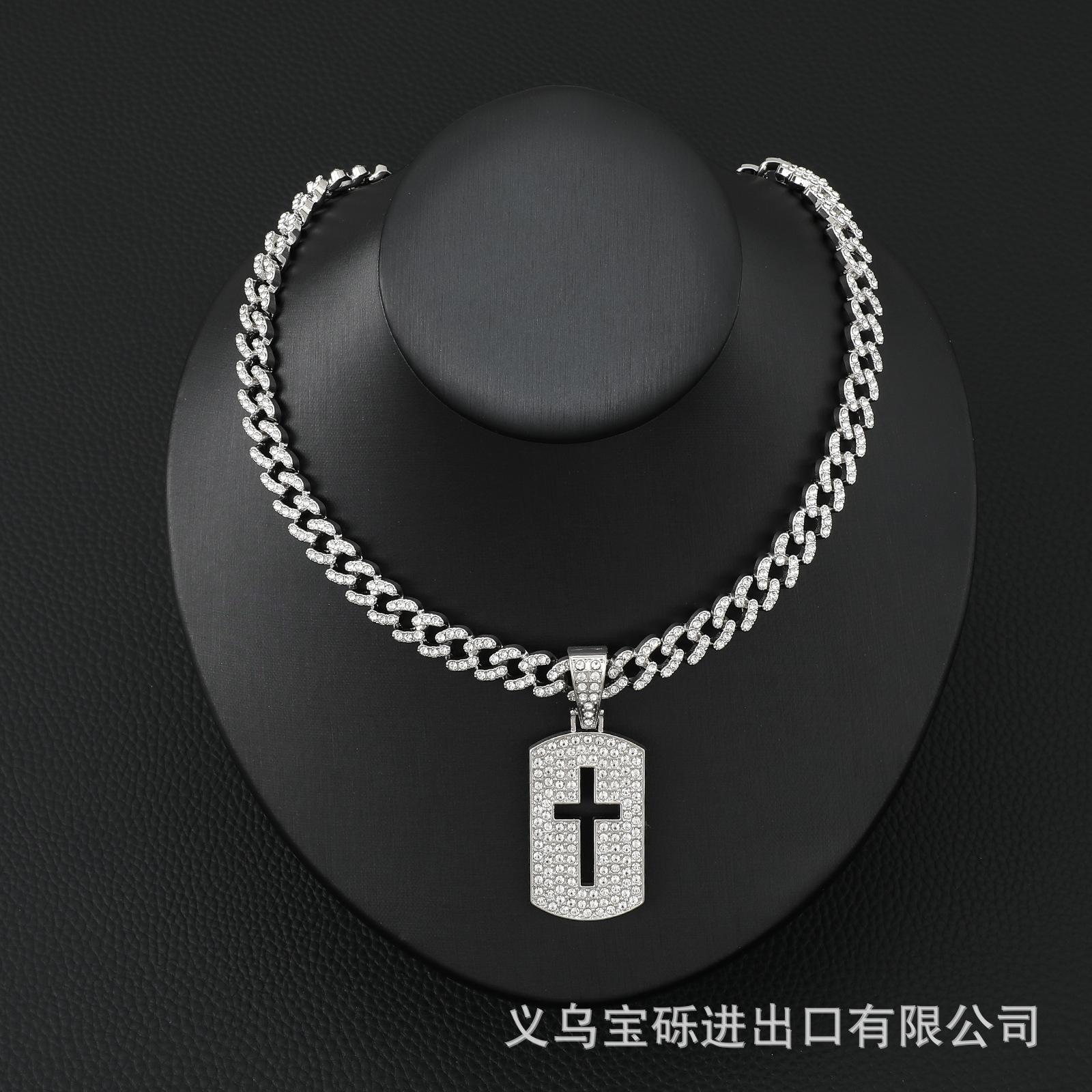 Collar de hip hop transfronterizo para Europa y América, con personalidad, cadena cubana de diamantes brillantes, colgante de aleación con cruz de diamantes, joyería de hip hop.