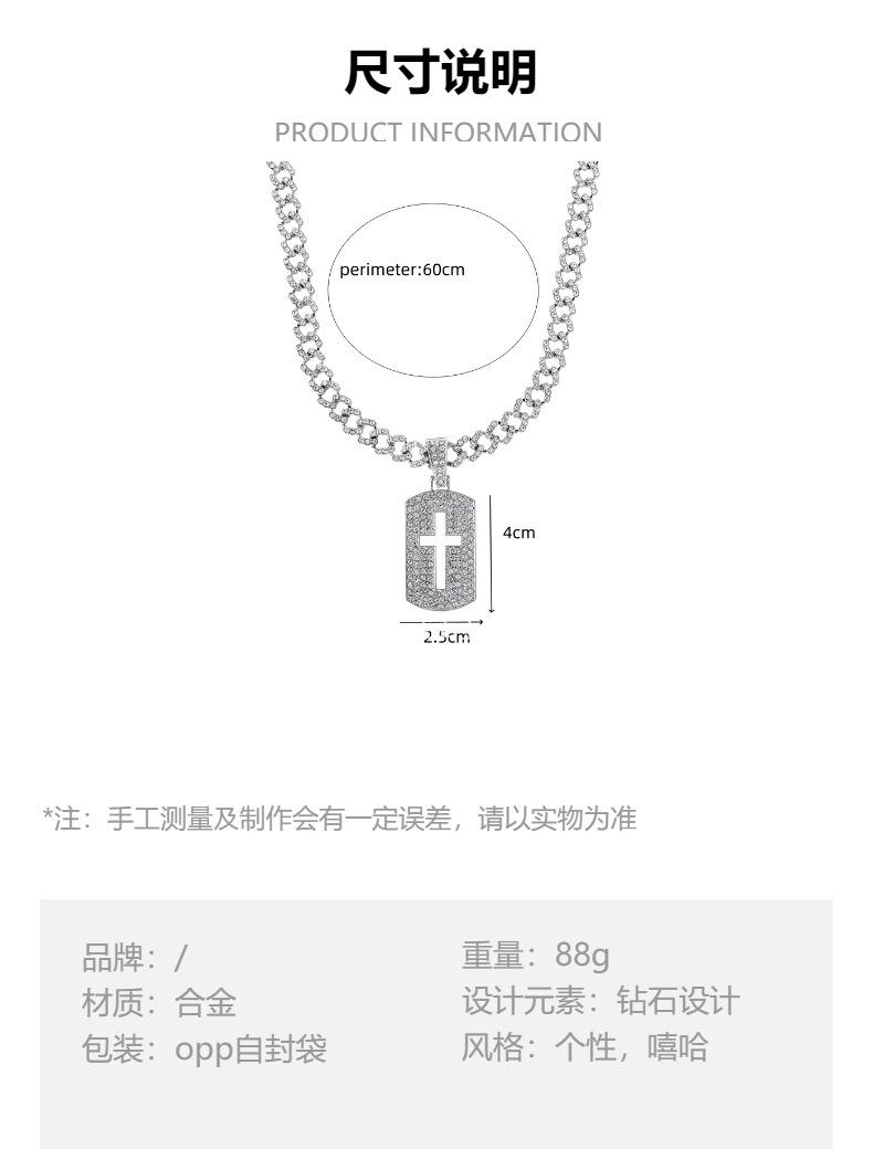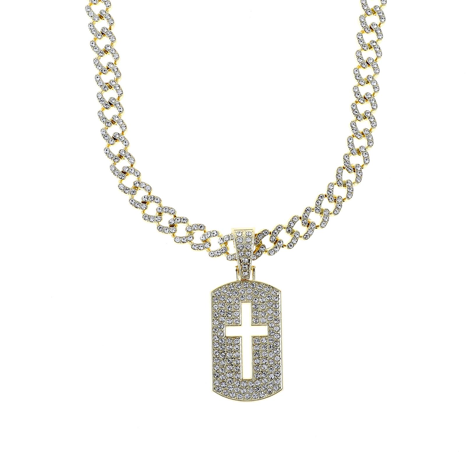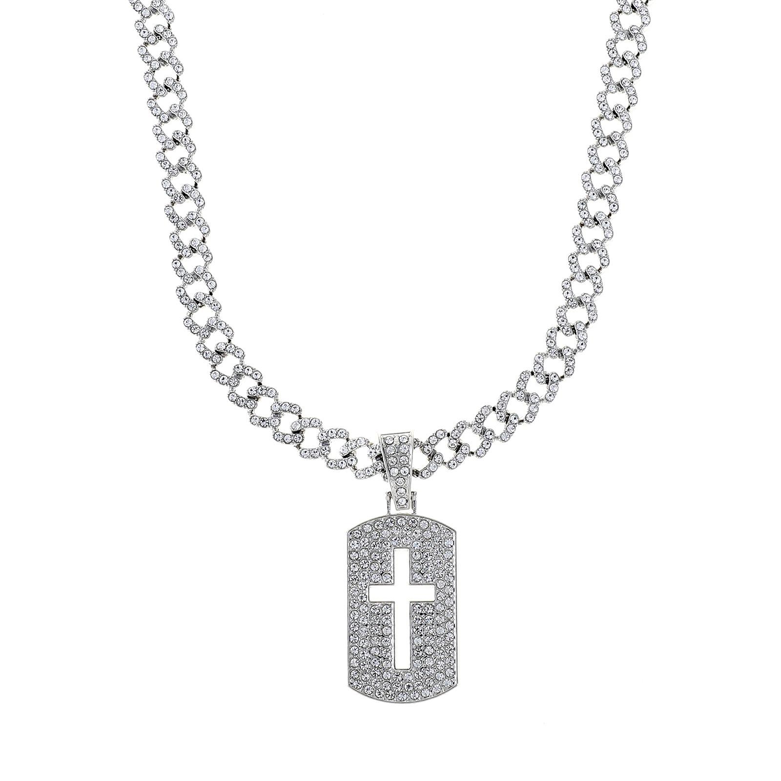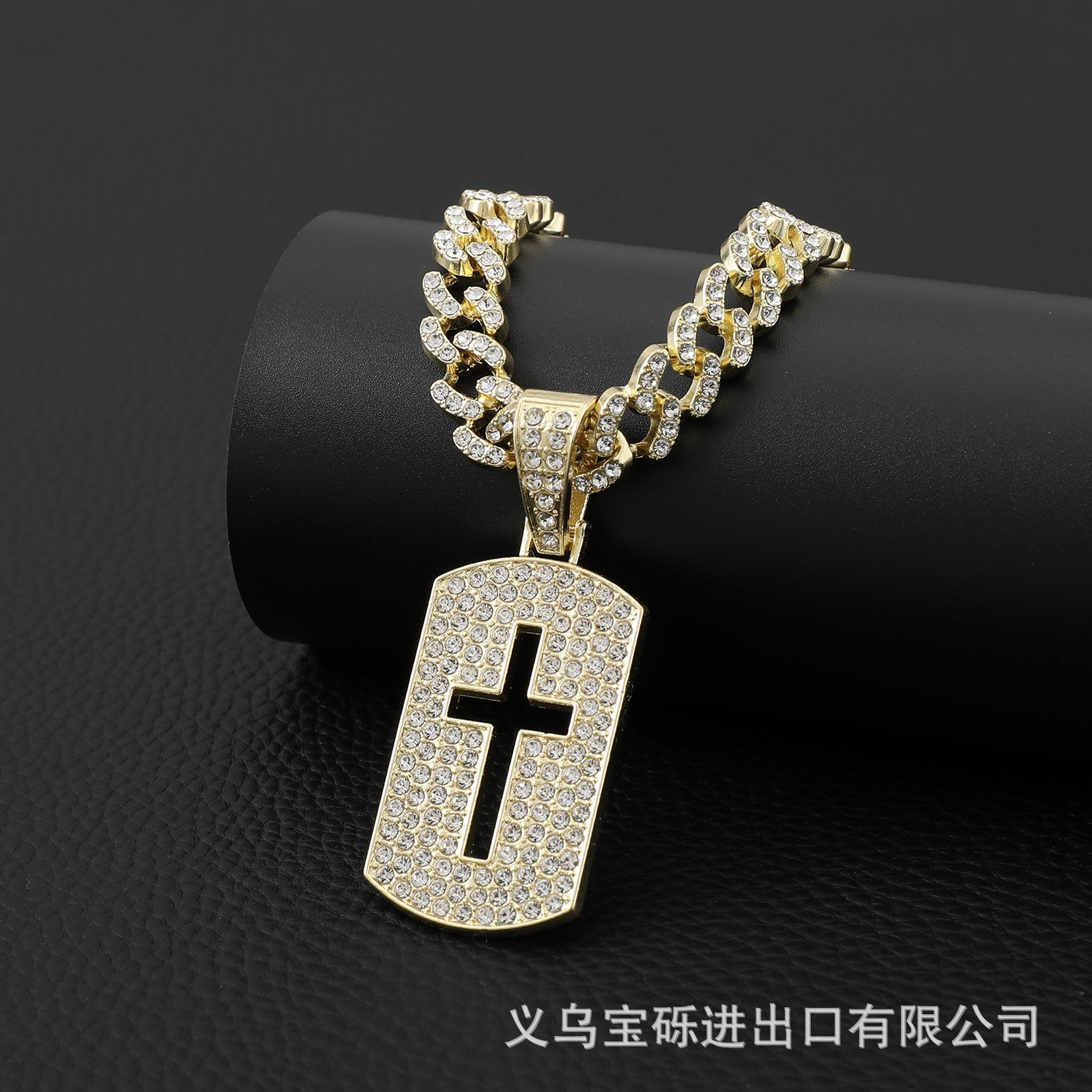 Collar de hip hop transfronterizo para Europa y América, con personalidad, cadena cubana de diamantes brillantes, colgante de aleación con cruz de diamantes, joyería de hip hop.