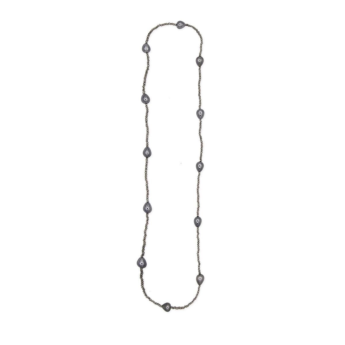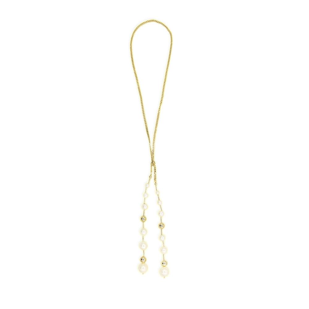 [Nombre] Collar de cadena de metal de hierro con perlas de vidrio de longitud media, joyería sencilla para suéter que combina con todo para otoño e invierno