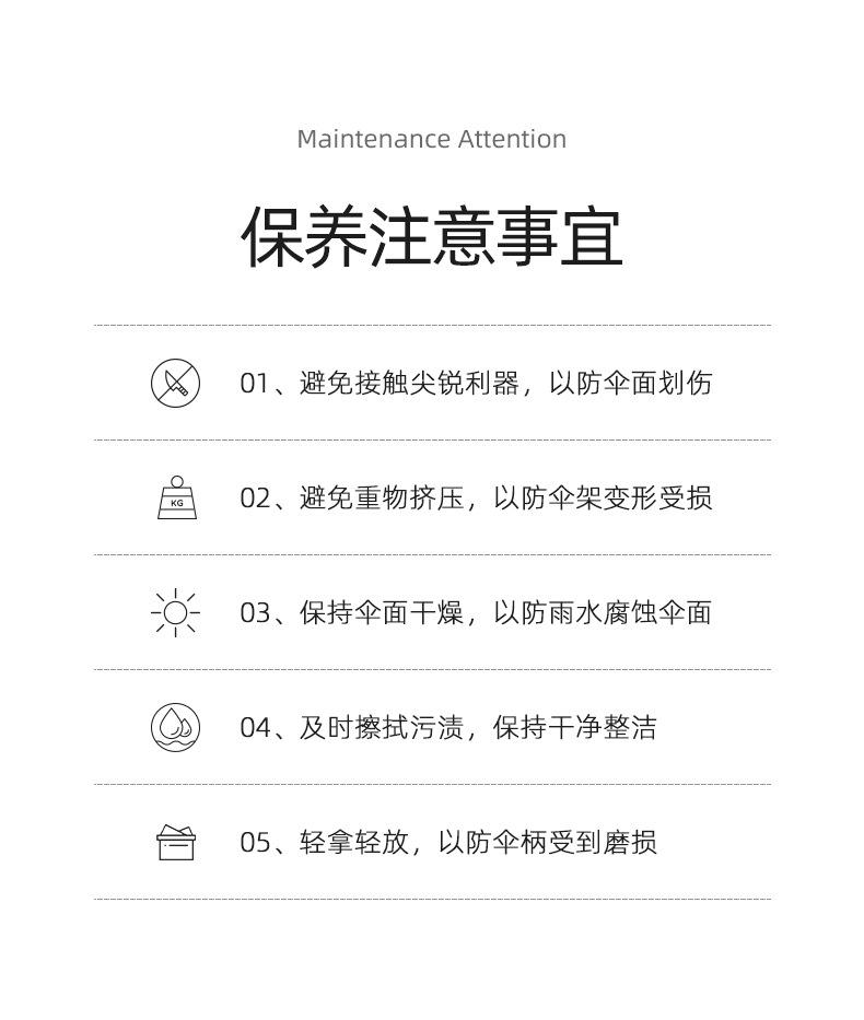 1. Todos los precios corresponden a sombrillas sin impresión. La impresión se cobra por separado según las necesidades específicas del cliente. Para obtener información detallada sobre los precios, contacte con el servicio de atención al cliente. Si necesita imprimir un logotipo, utilice una imagen vectorial en formato AI o CDI para garantizar la calidad del dibujo y el efecto de impresión.