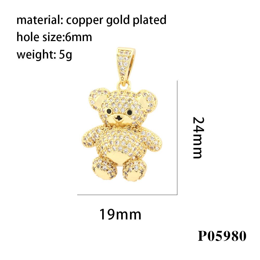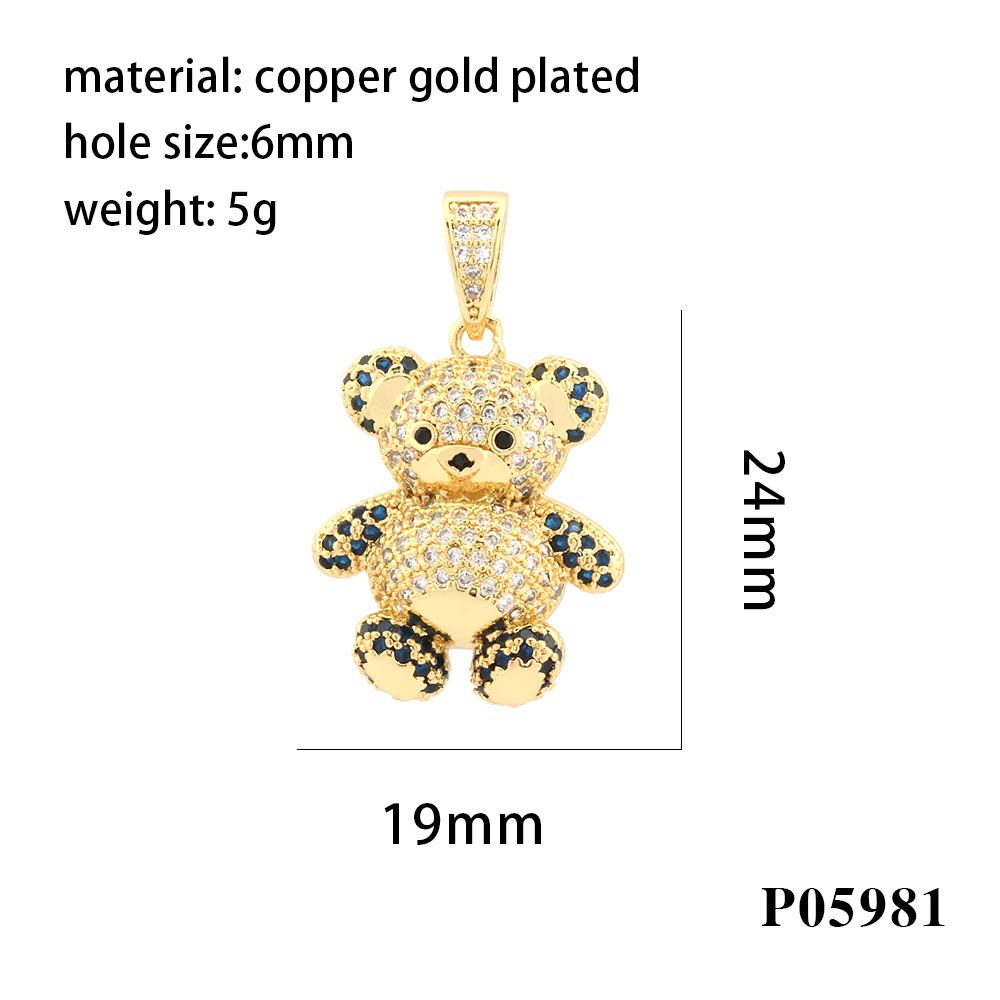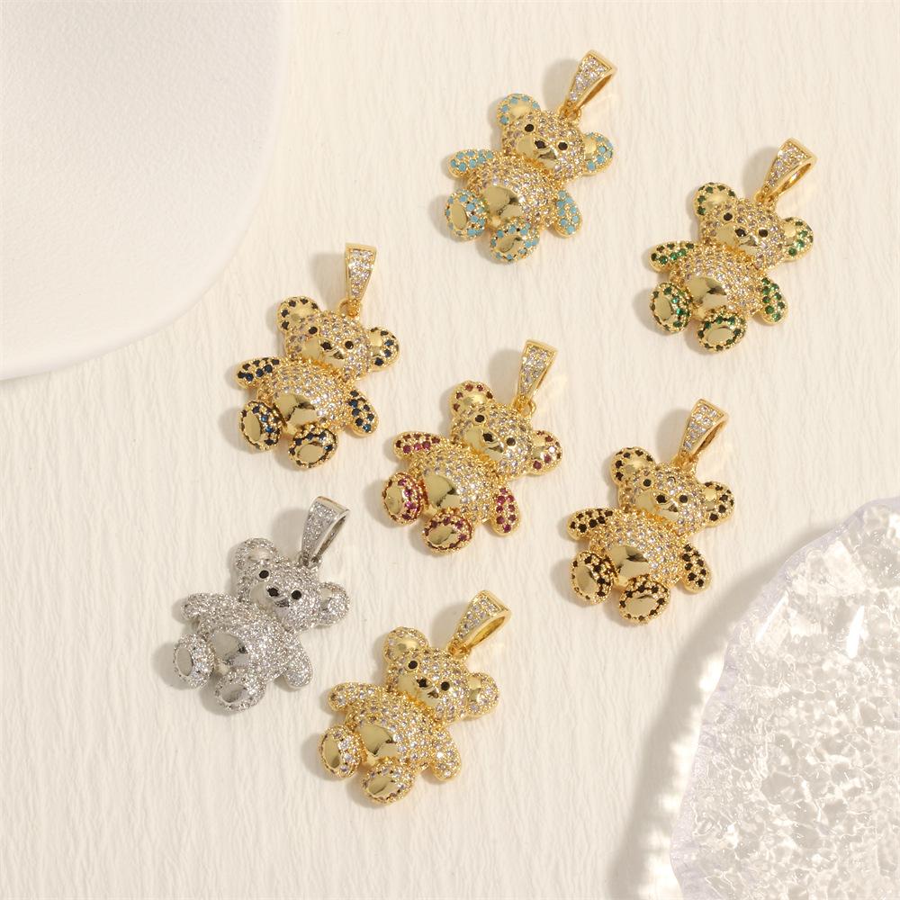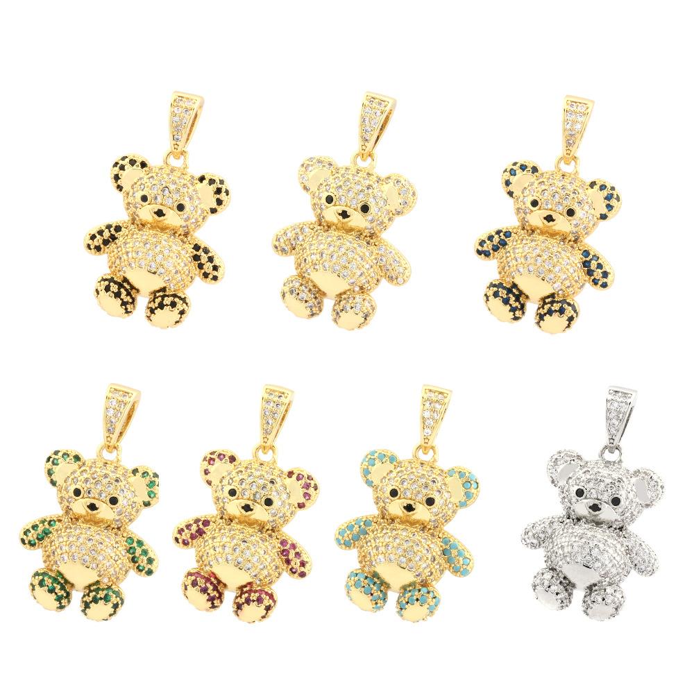 Colgante de oso tridimensional con microincrustaciones de diamantes, chapado en cobre, collar de oro de 18 quilates, accesorios de joyería DIY
