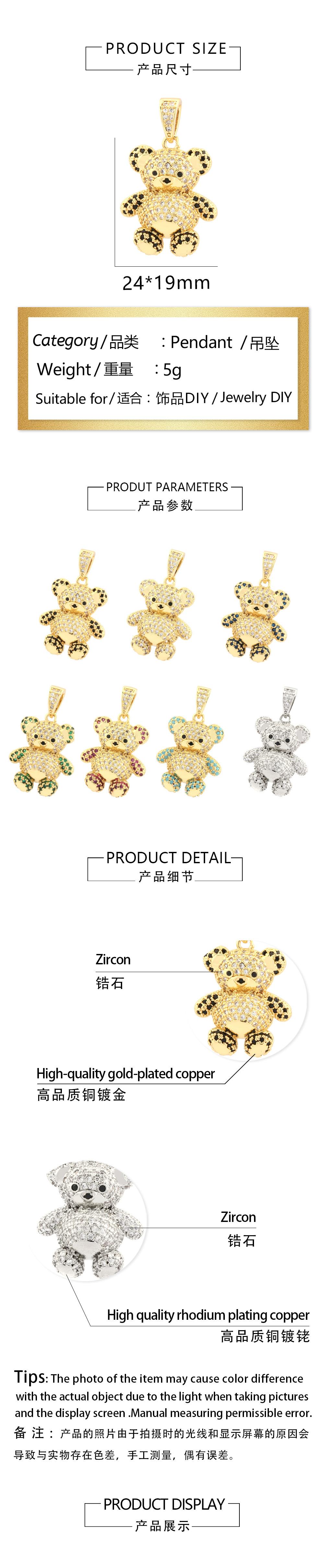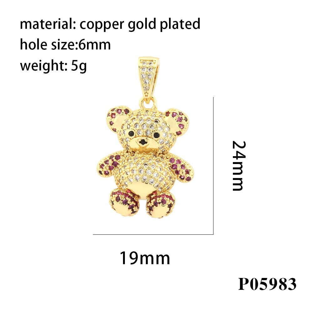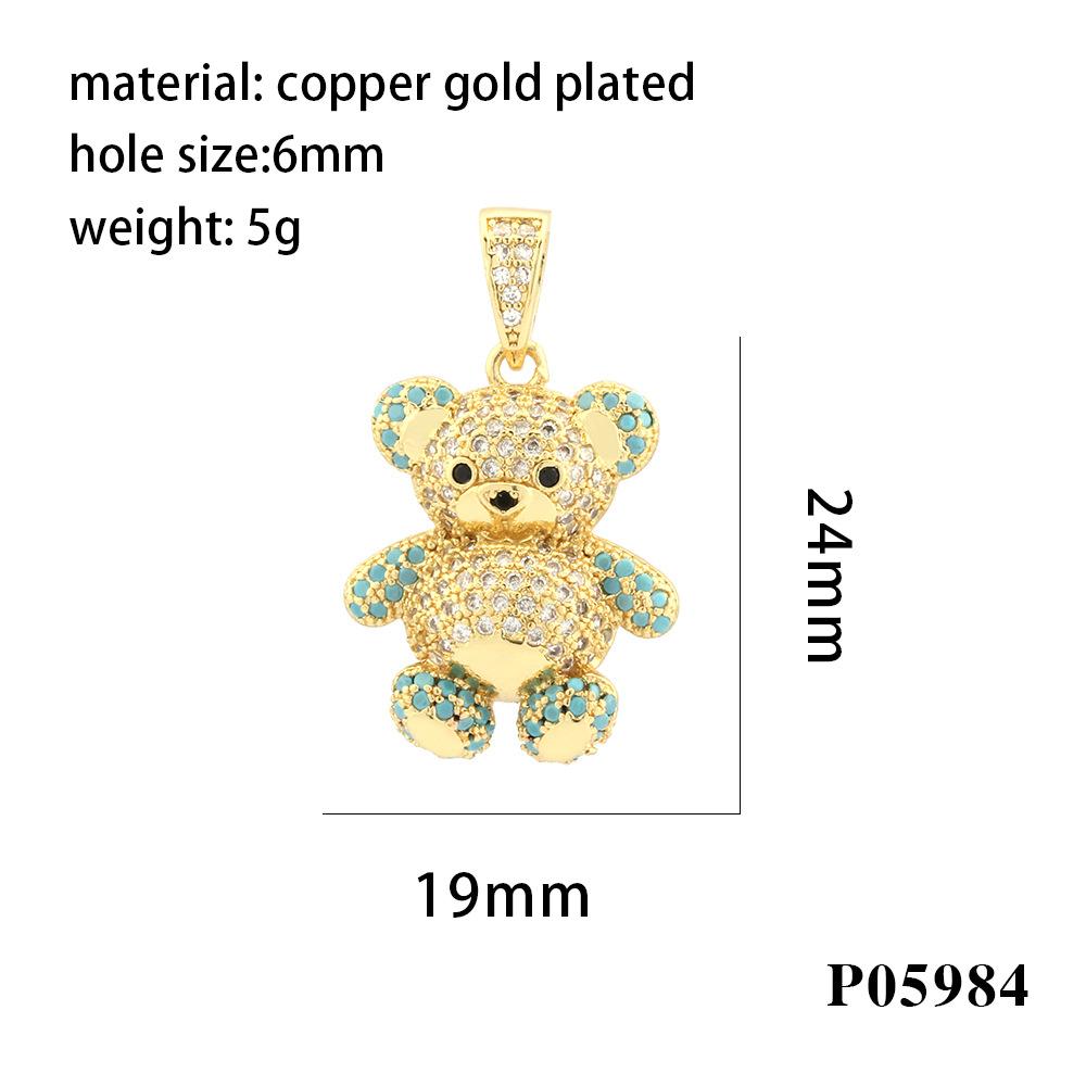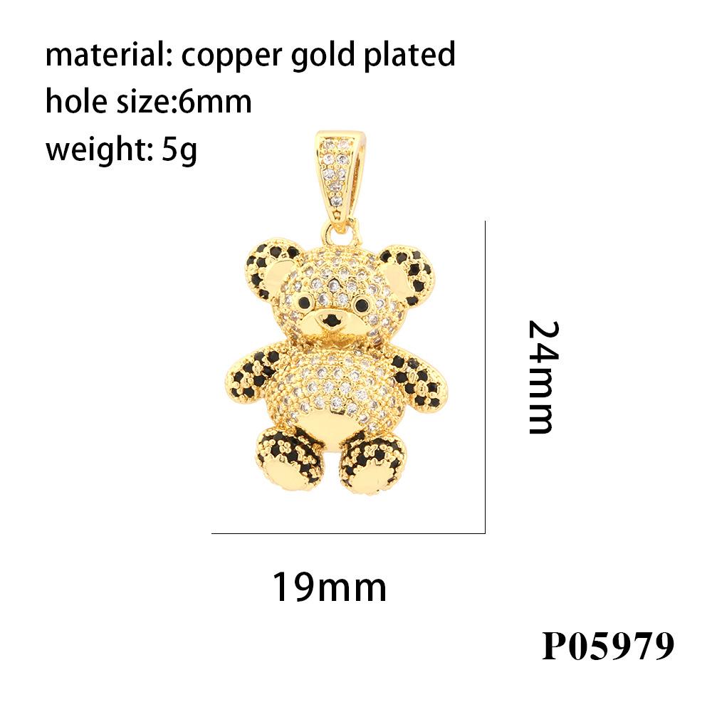 Colgante de oso tridimensional con microincrustaciones de diamantes, chapado en cobre, collar de oro de 18 quilates, accesorios de joyería DIY