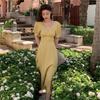 Vestido midi francés con escote en V y abertura, elegante y suave, de verano, estilo Platycodon grandiflorum, para mujer, 2022