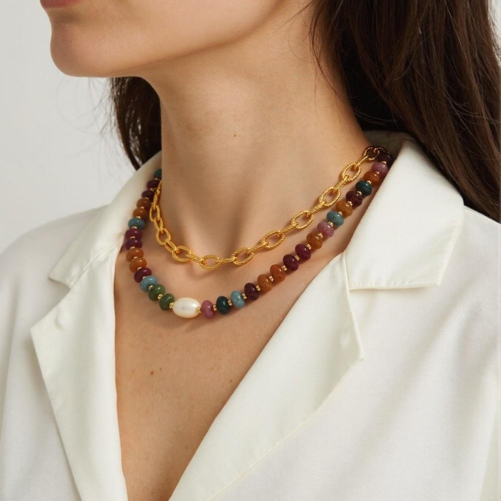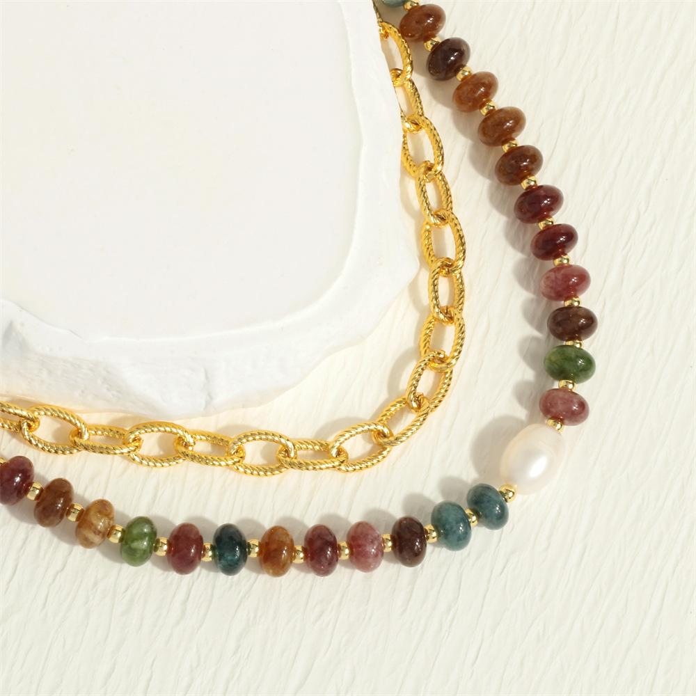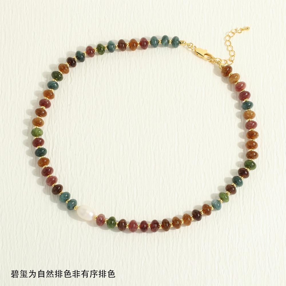 Una generación de cabello turmalina piedra de color mixto hecho a mano collar de perlas con cuentas multicapa apilado cadena de clavícula chapada en oro de 18K en stock