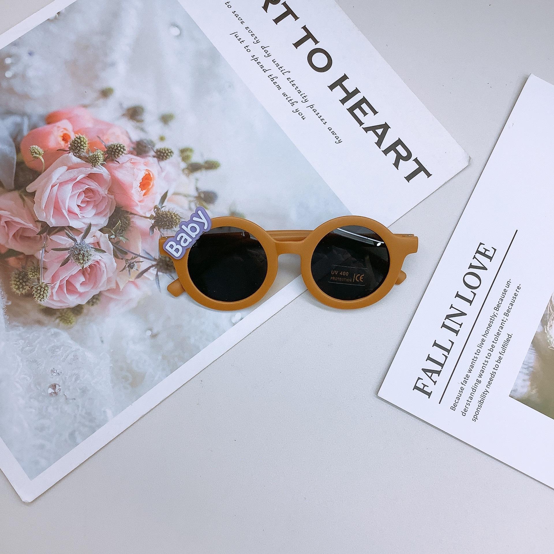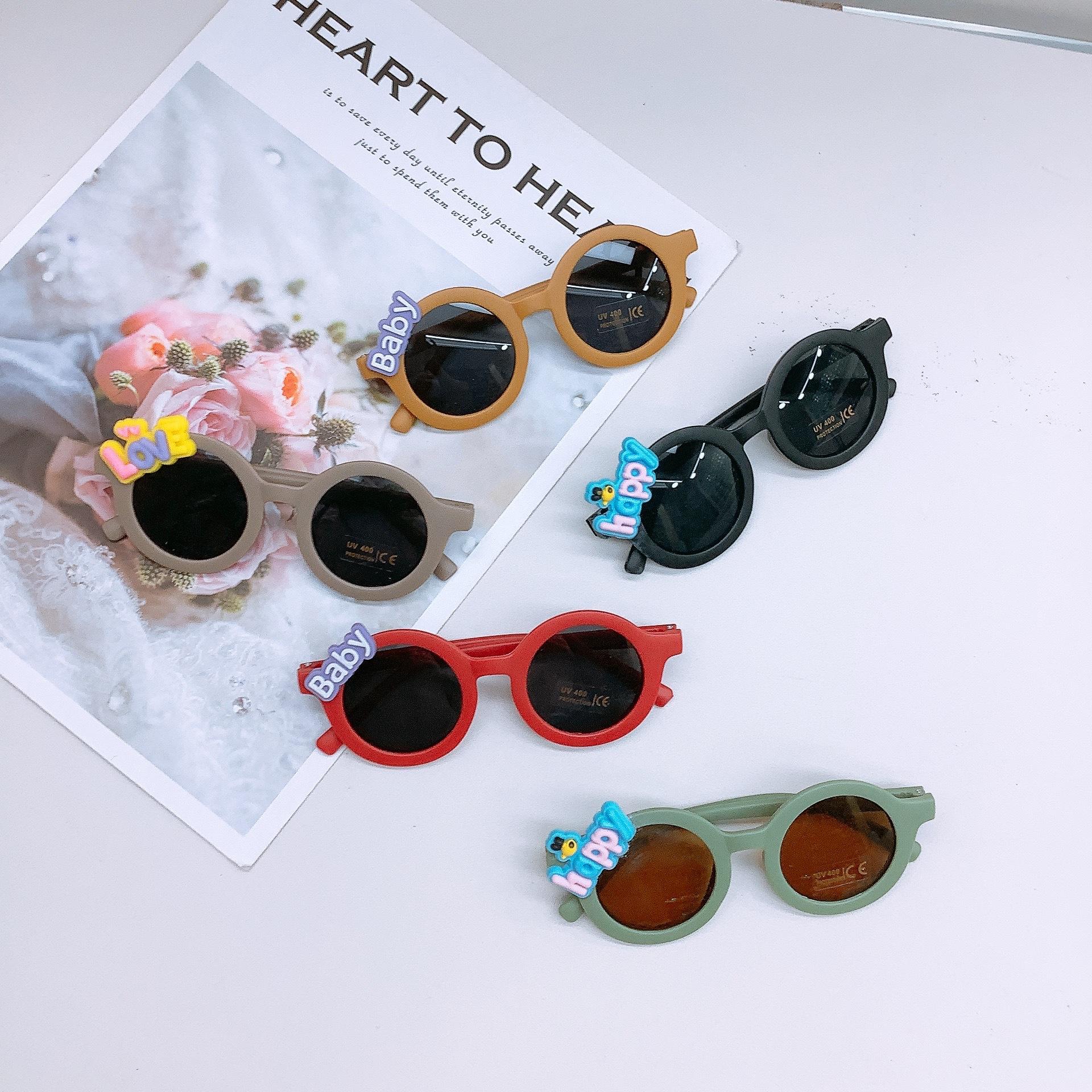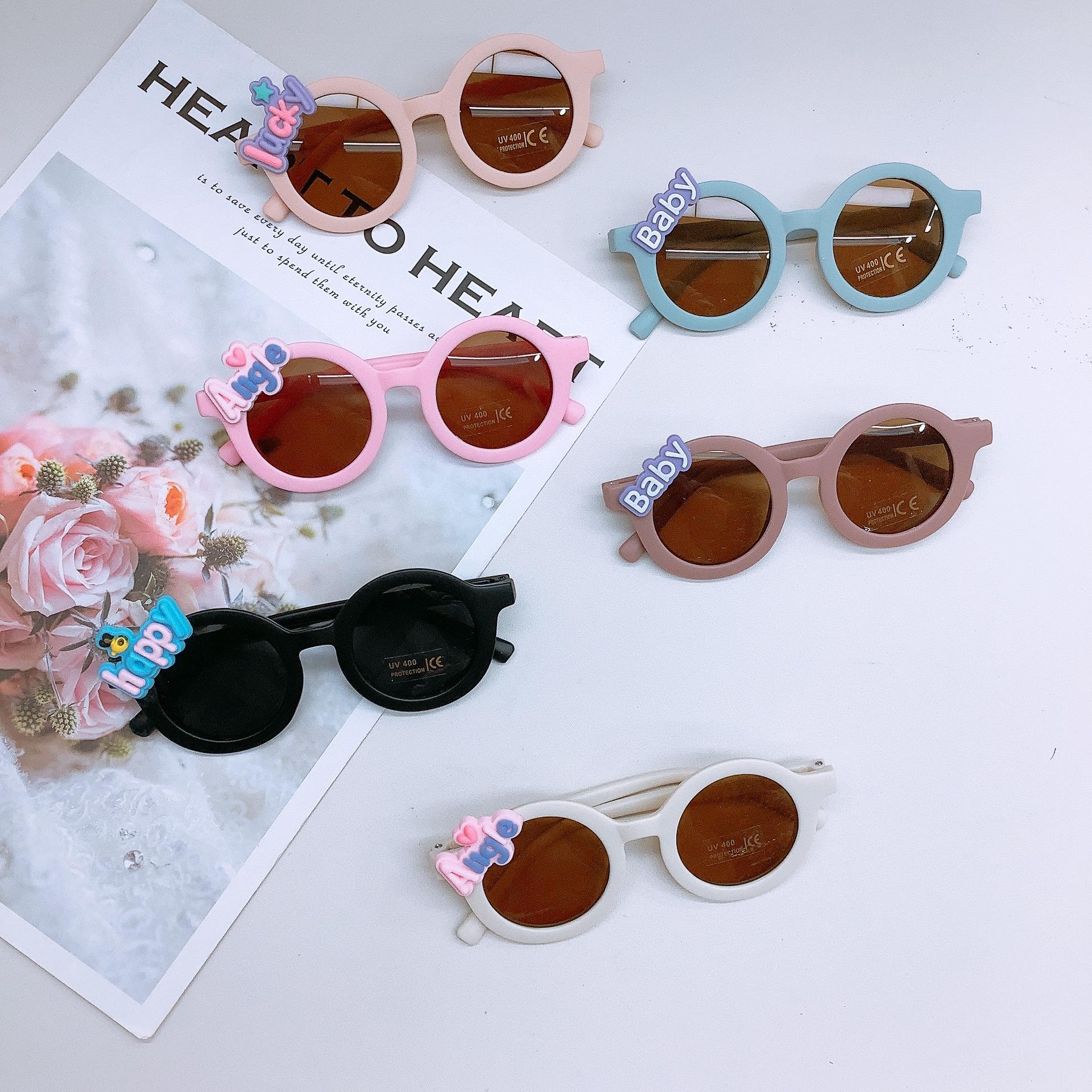 Gafas de sol de moda para niños estilo coreano, lindas gafas de sol adhesivas para bebé, protección solar, forma cóncava, uso moderno, gafas para niños
