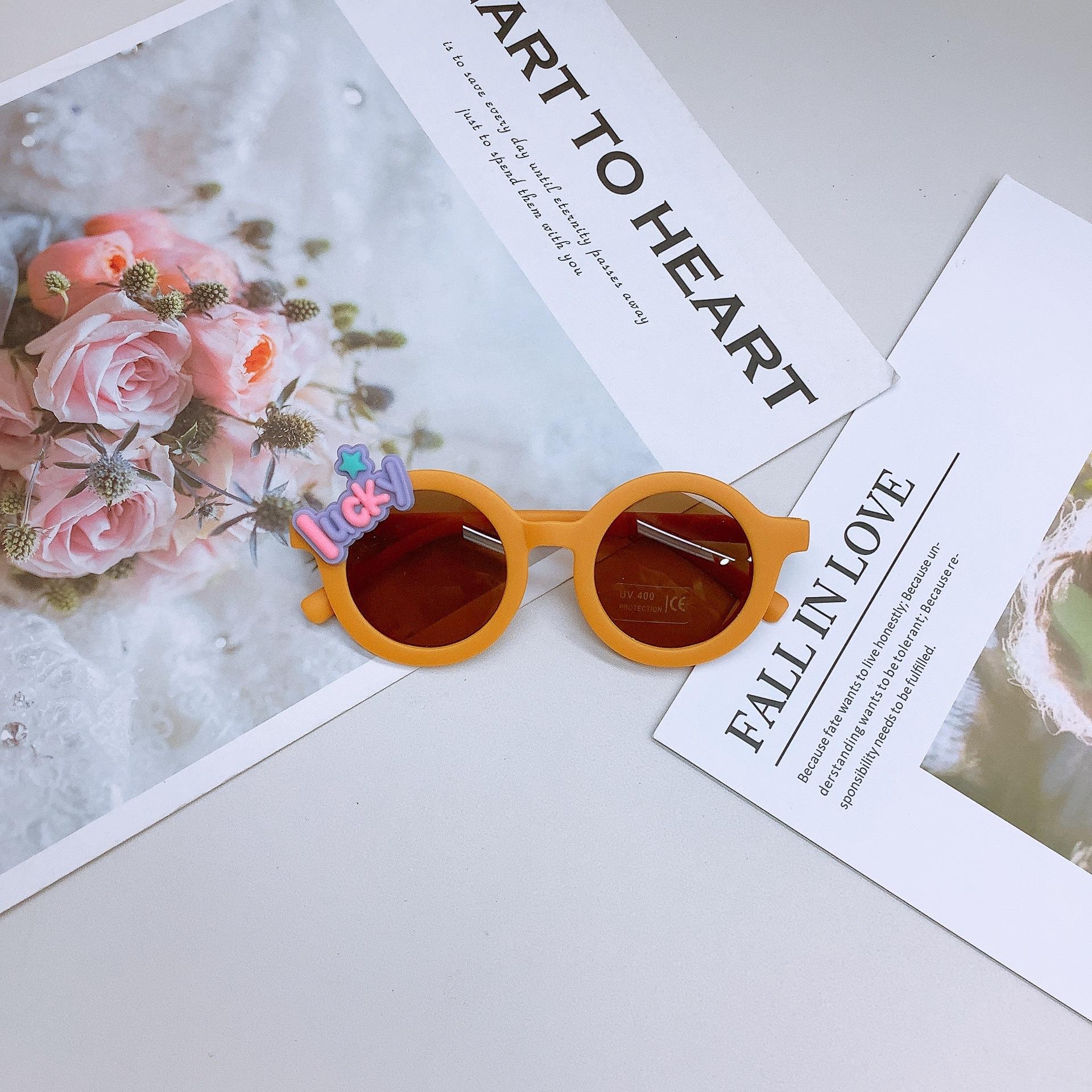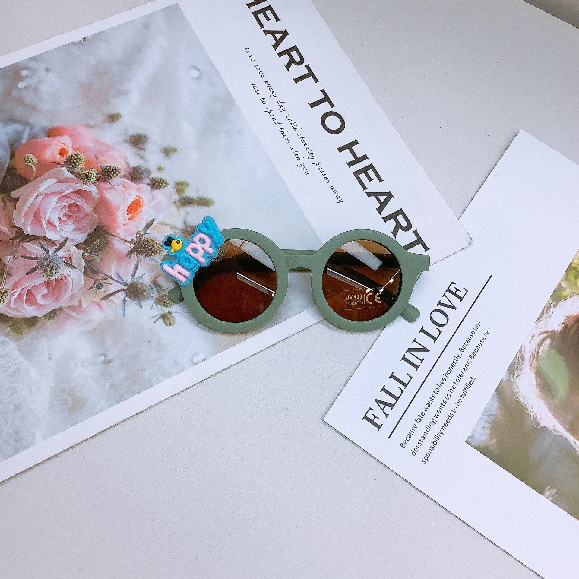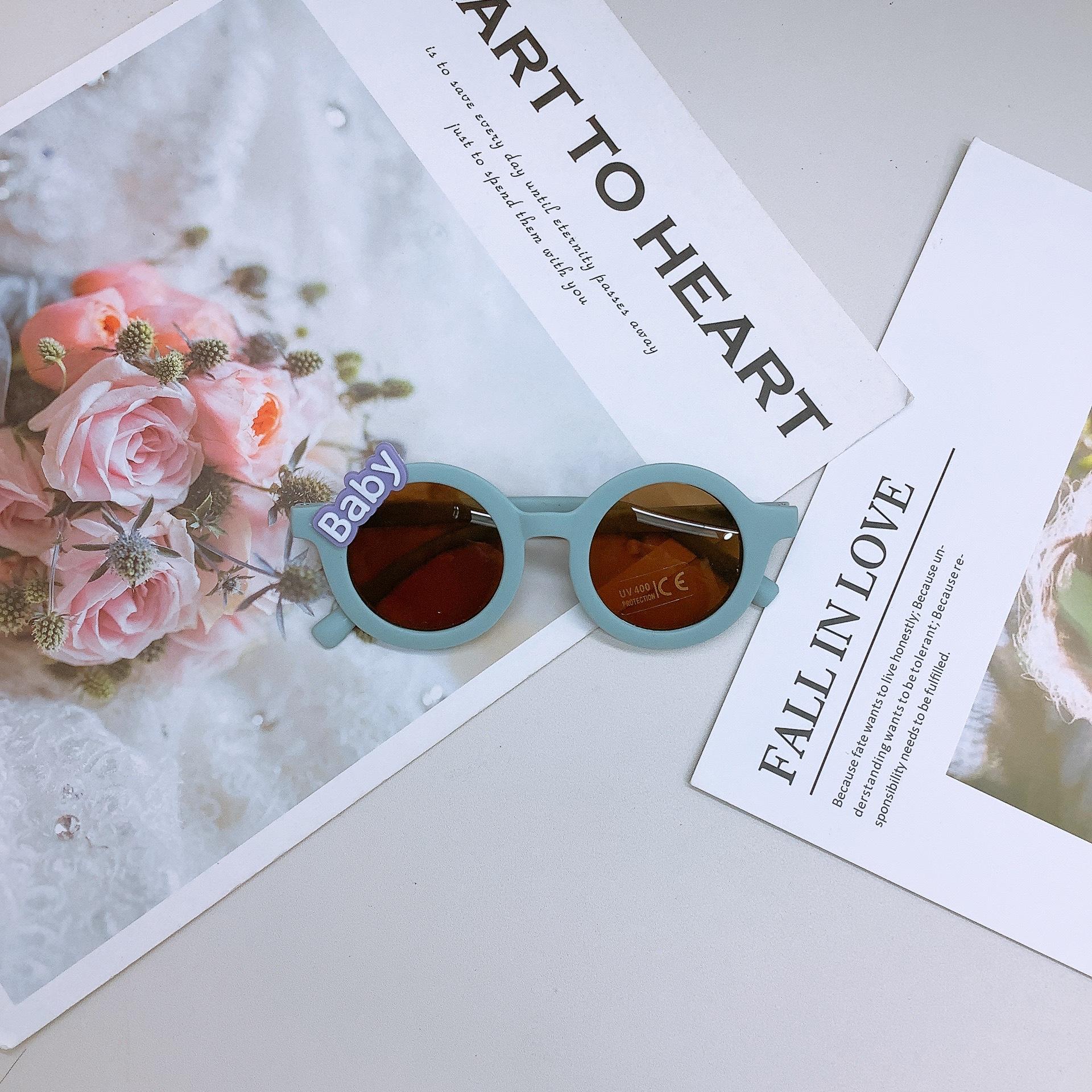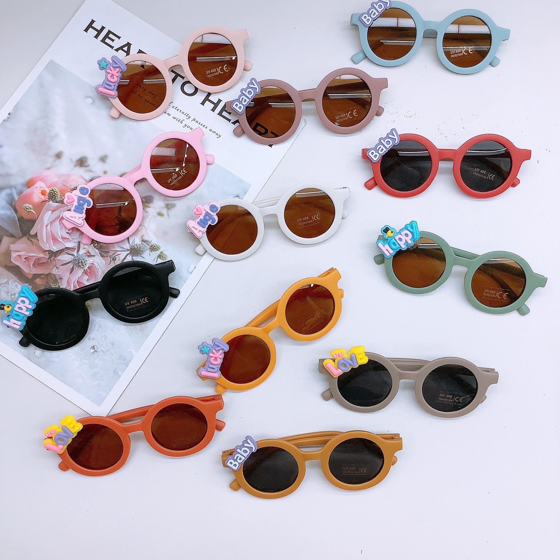 Gafas de sol de moda para niños estilo coreano, lindas gafas de sol adhesivas para bebé, protección solar, forma cóncava, uso moderno, gafas para niños