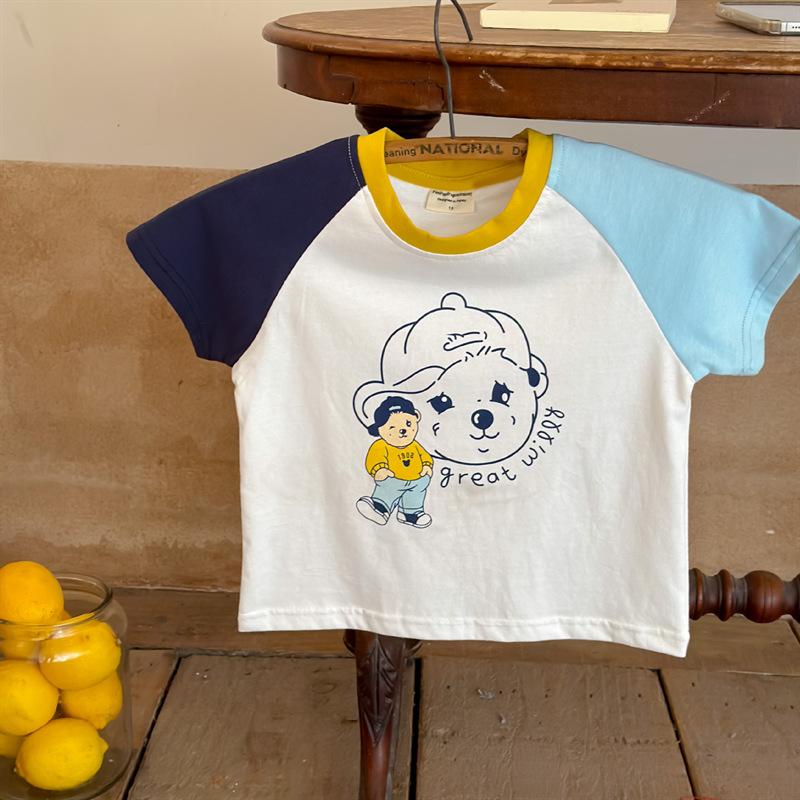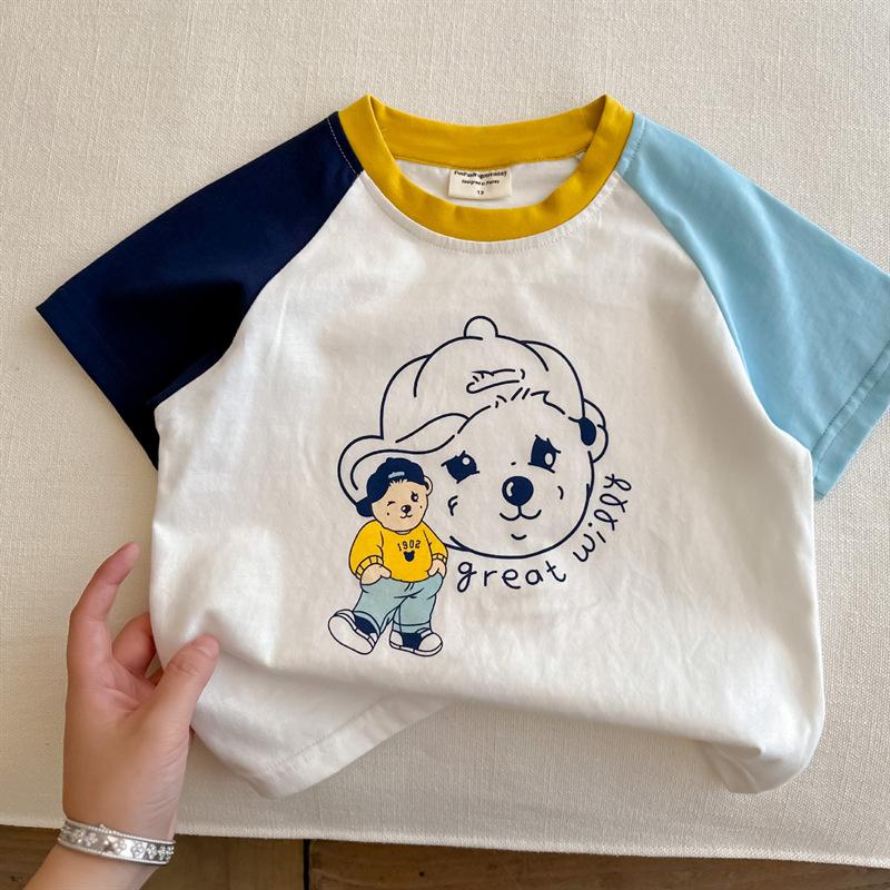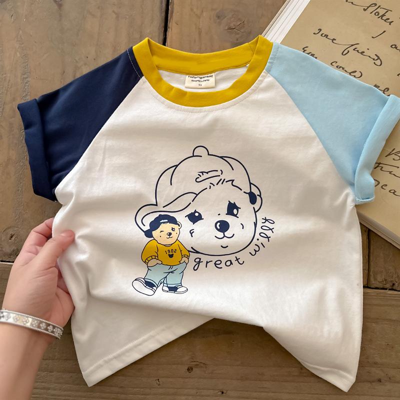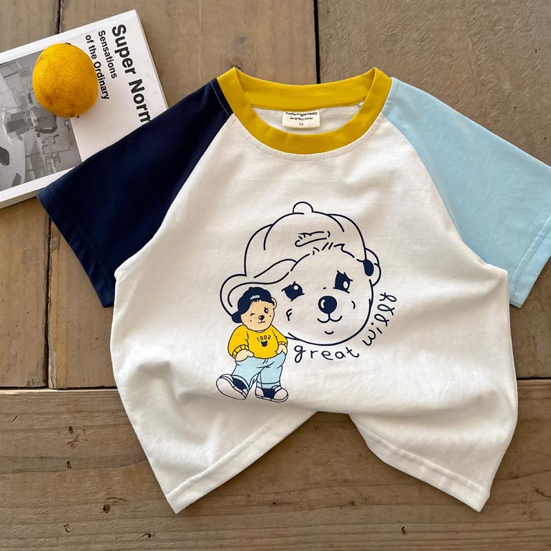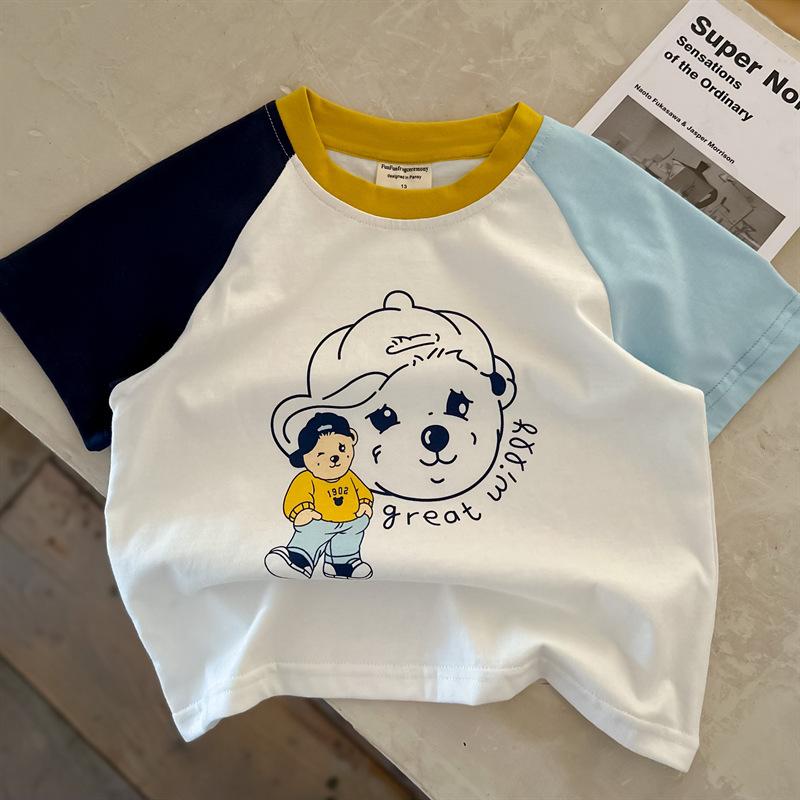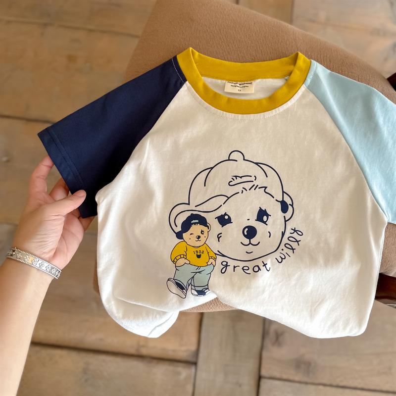 Camiseta de algodón de manga corta con dibujos animados para niños, ropa de verano para niños y niñas, ropa de verano de media manga para bebés.
