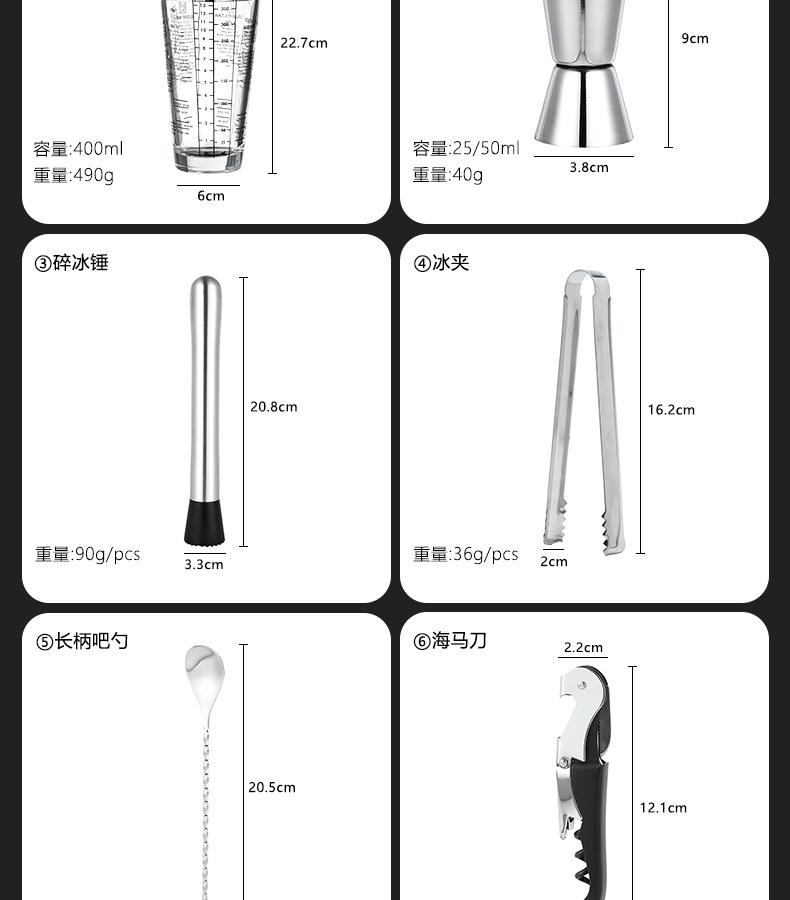 400ML glass bartending set (egg type 19 piece set), 550ML stainless steel bartender set (egg type 19 piece set...
