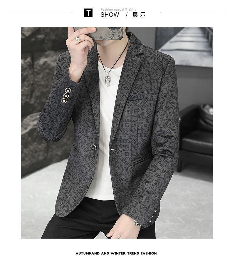 Traje de negocios popular para hombre, nuevo otoño 2023, estilo coreano de moda, corte entallado, traje estampado combinable