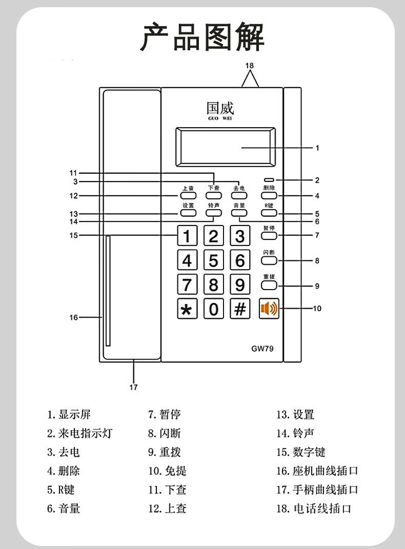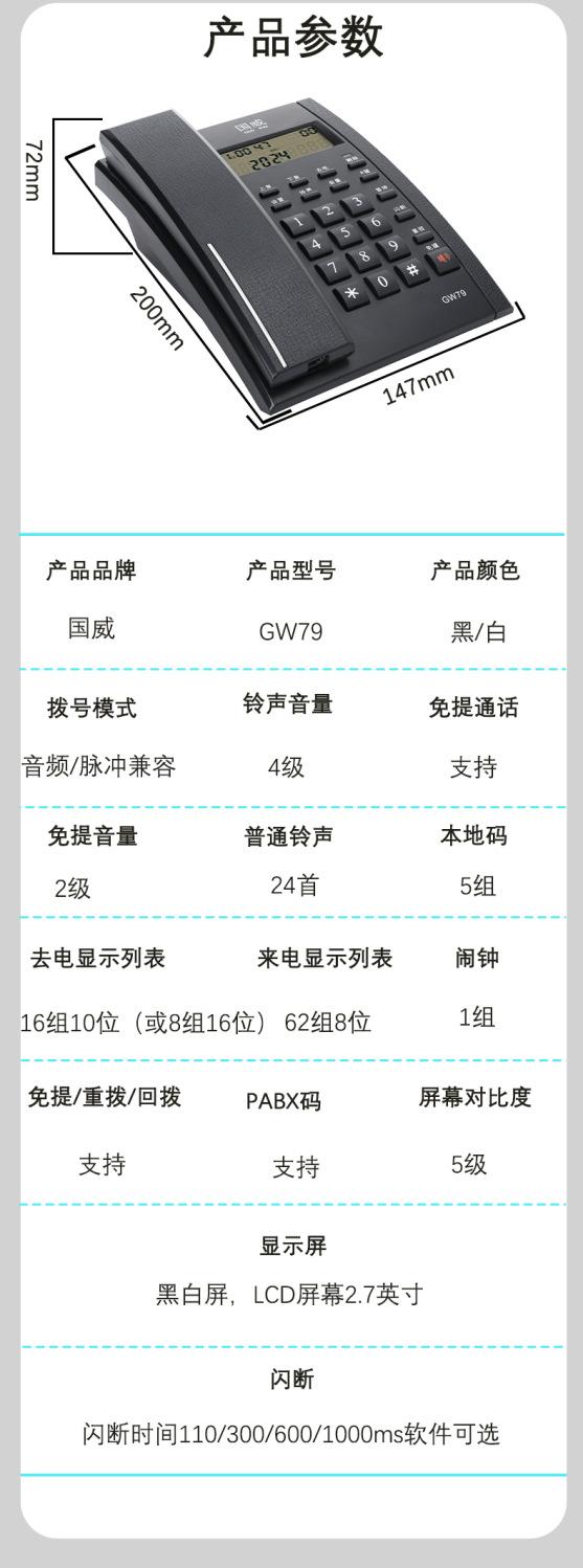 Teléfono fijo Guowei GW79 con interfaz dual, sin batería, para oficina y hogar, montado en la pared
