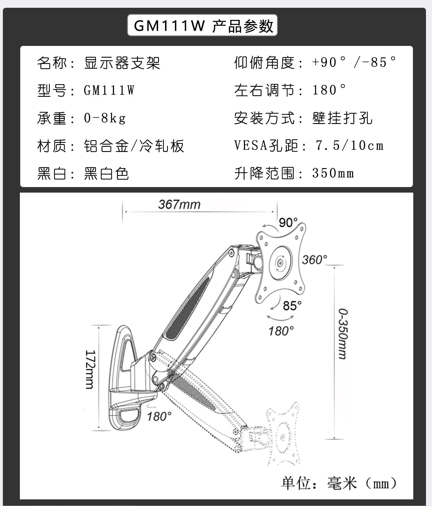 GM111W black pressure one-section arm