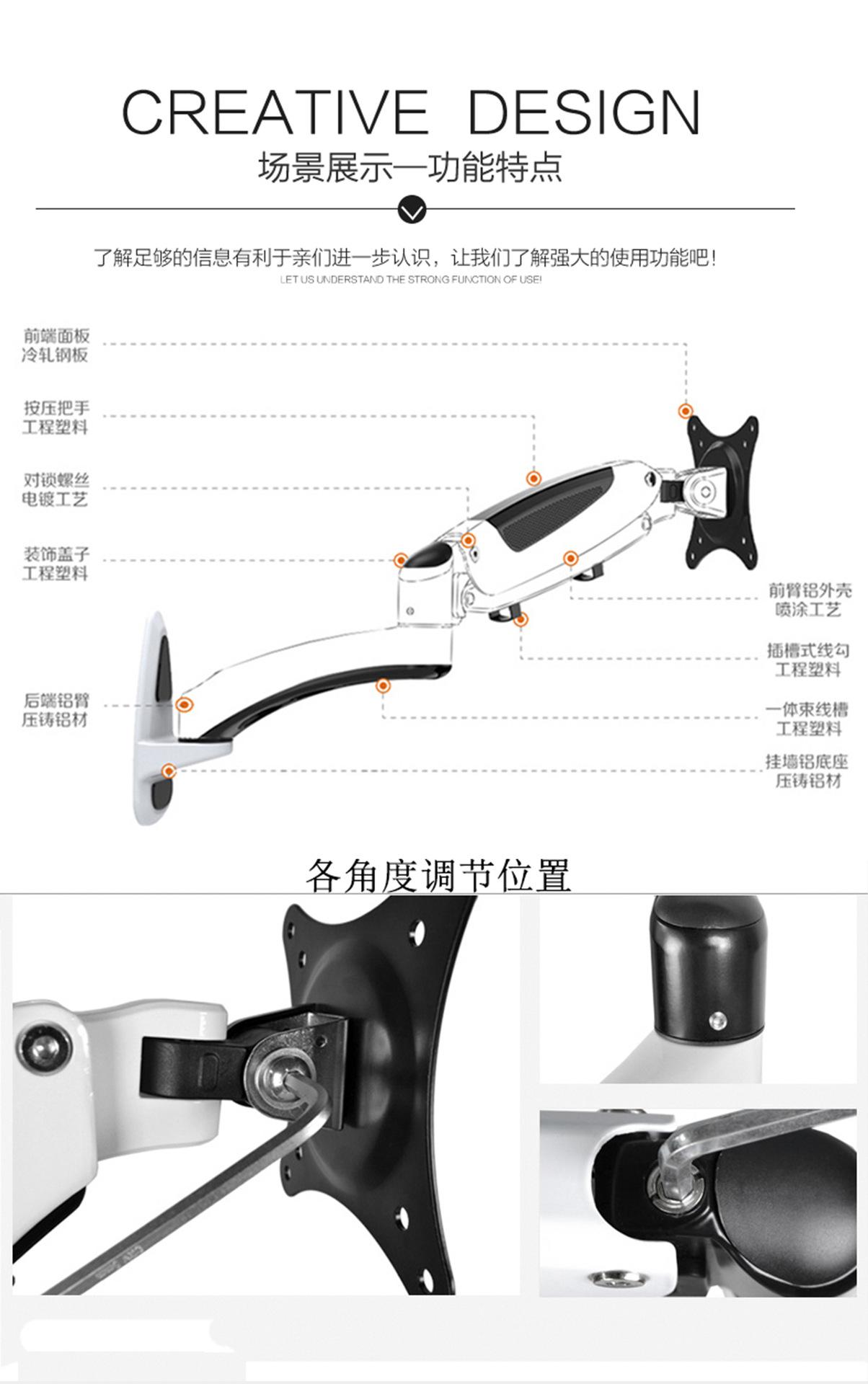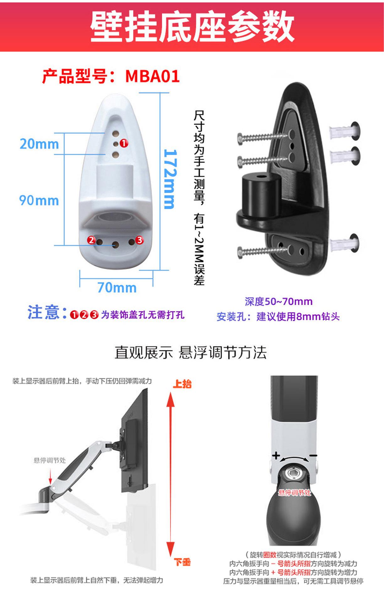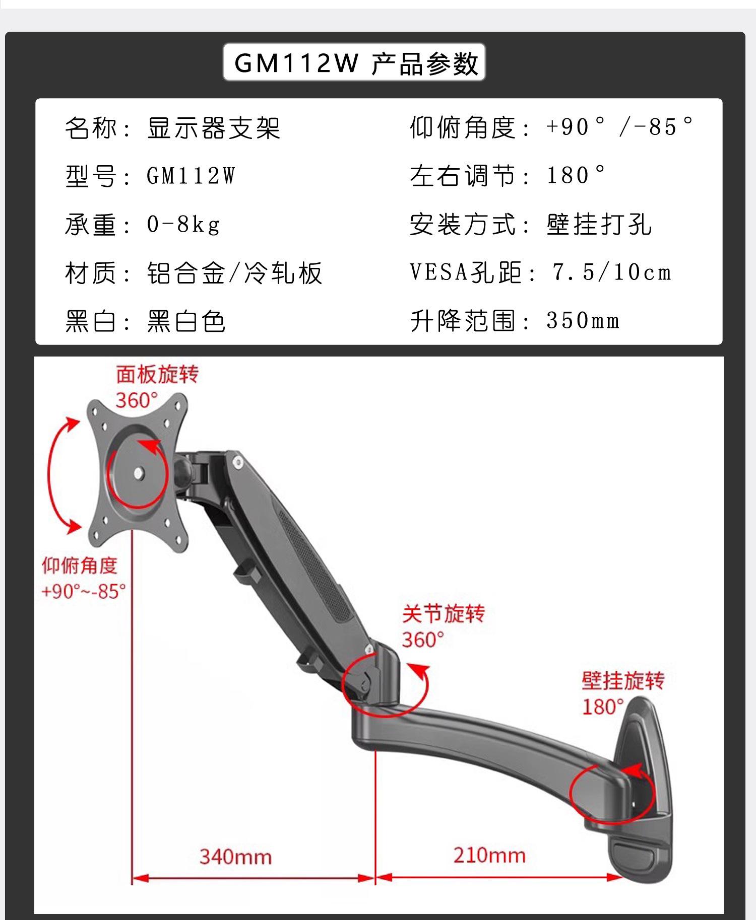 Soporte de pared para monitor de ordenador Gibbon, color negro, universal, con elevación universal, GM112W