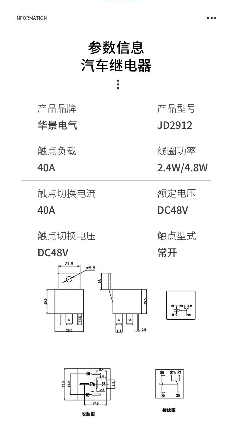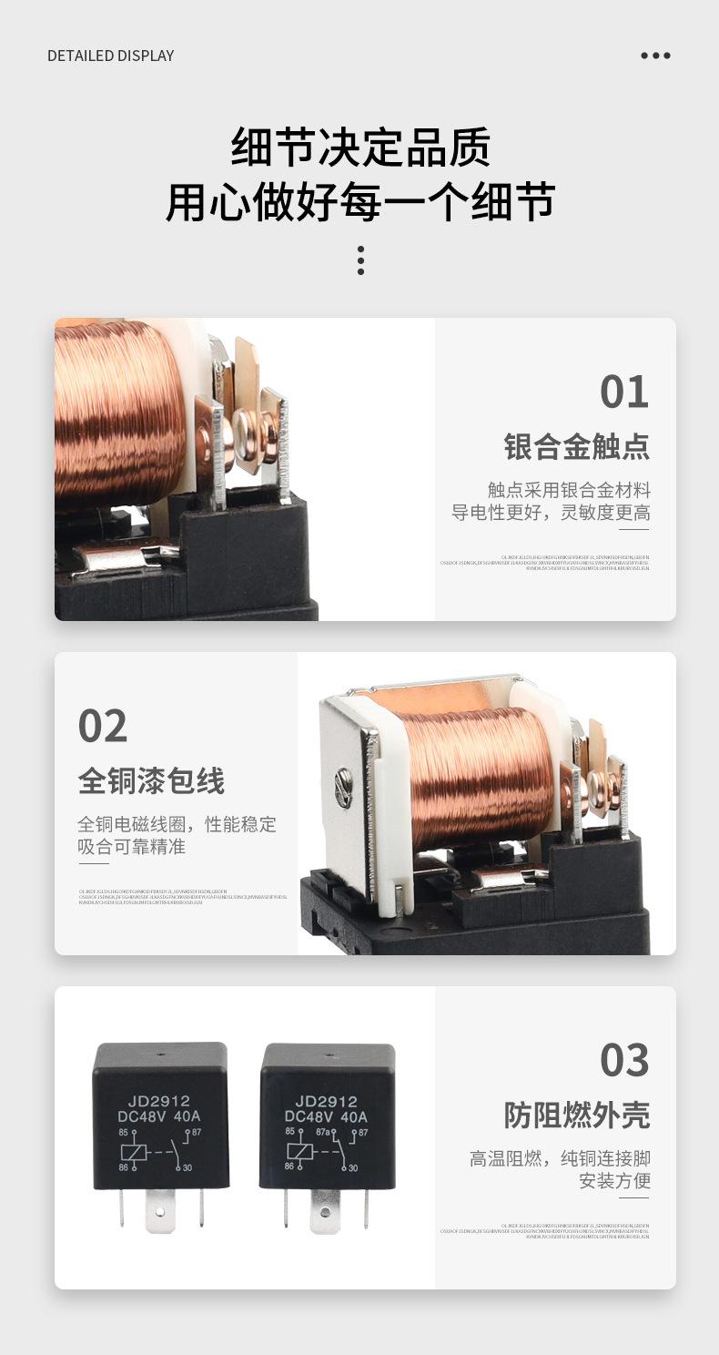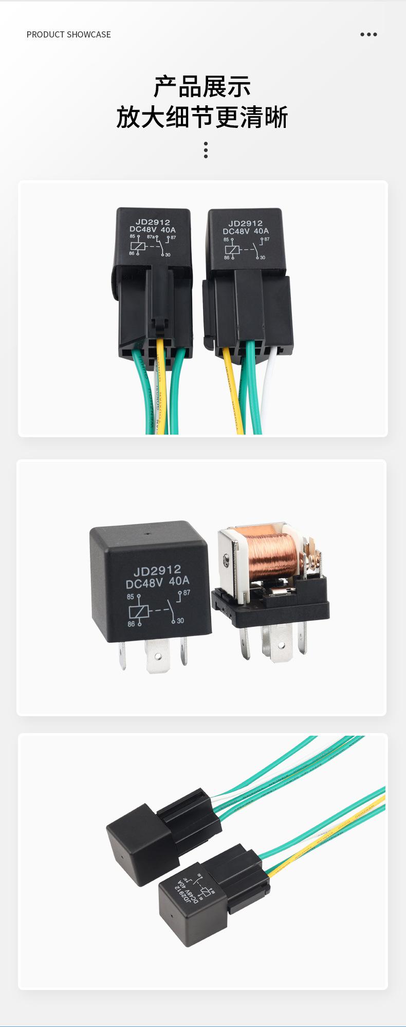 Relé de coche JD2912 40A48V, relé de bocina, conector de cuatro pines y cinco pines, relé de bomba de aceite de faro