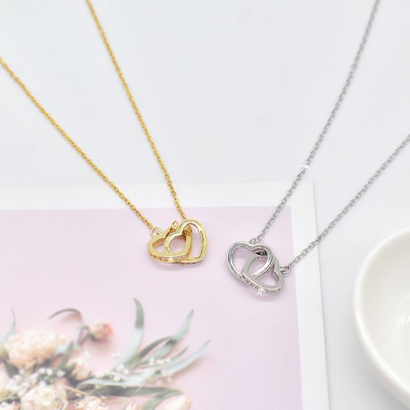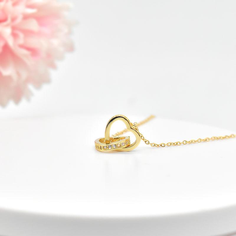 Collar de Doble Anillo de Amor con Diamantes Anillo de Möbius Acero de Titanio No Se Desvanece Oro de 18K Estilo Ins Diseño Nicho Cadena Clavícula