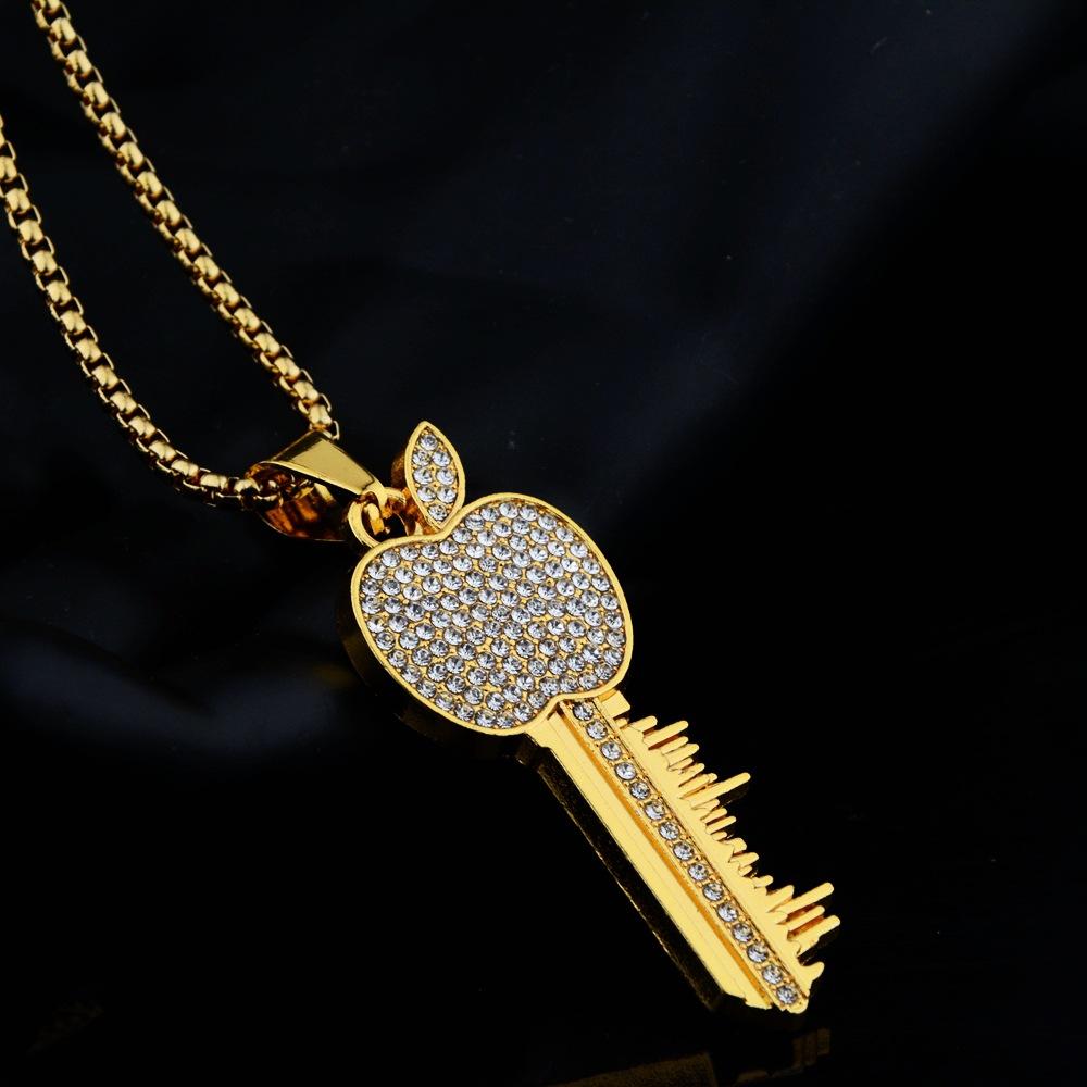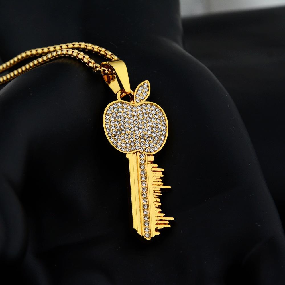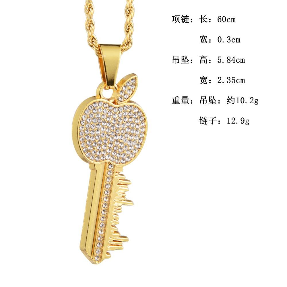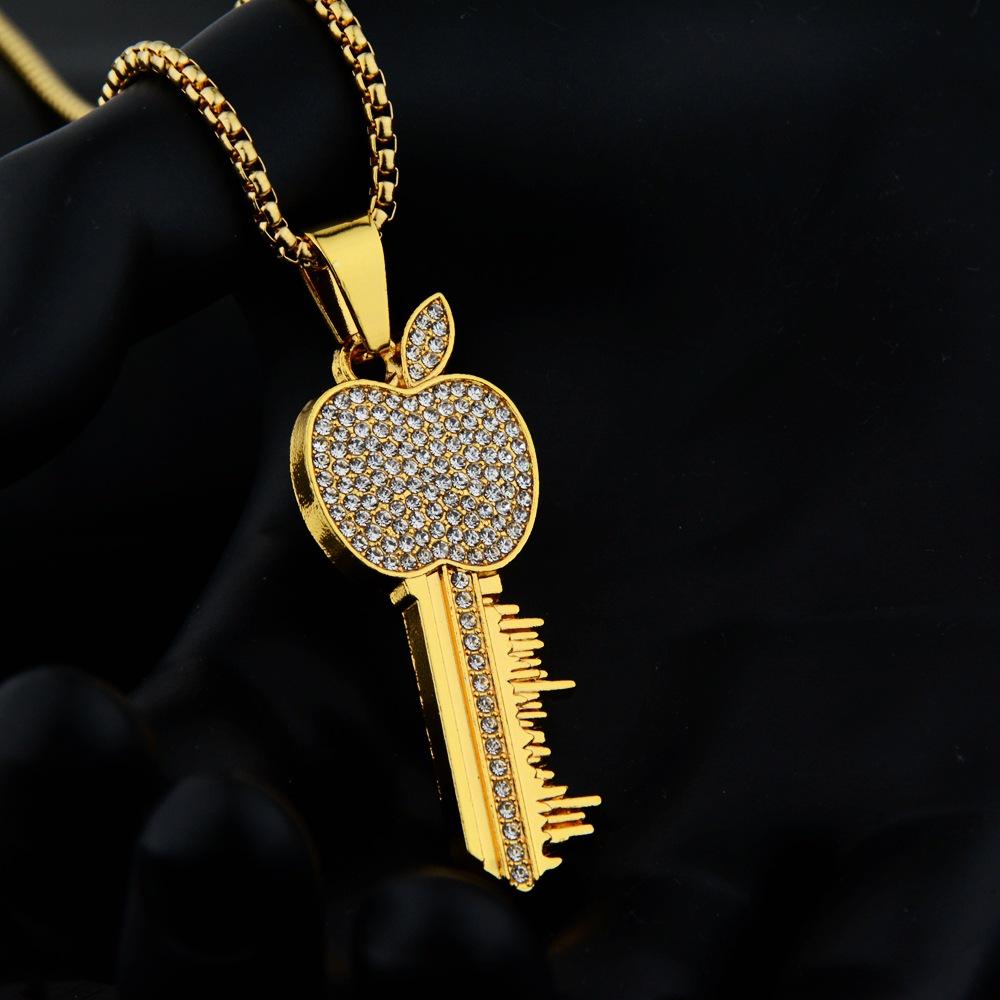 Collar de ocio personalizado para hombres y mujeres con colgante de llave de Apple con incrustaciones de diamantes de aleación de hip-hop de fuente de comercio exterior europea y americana