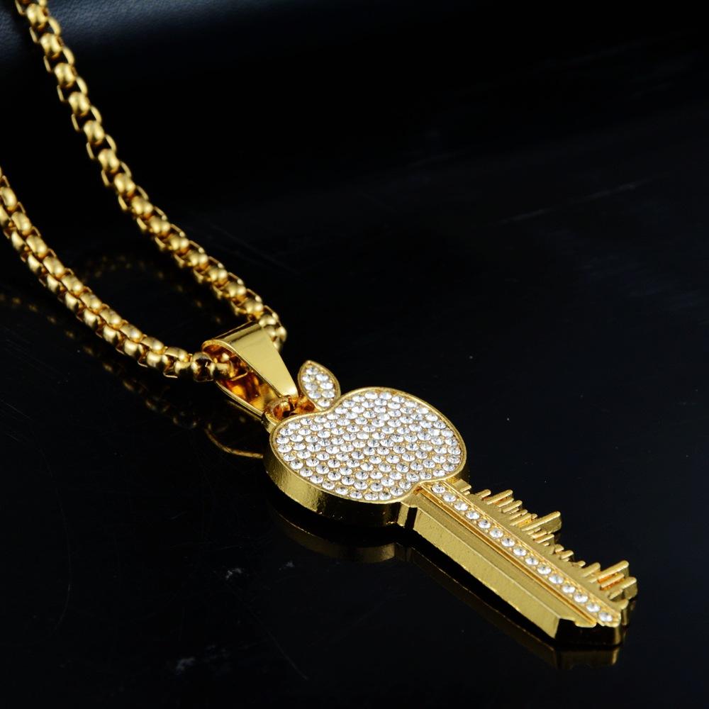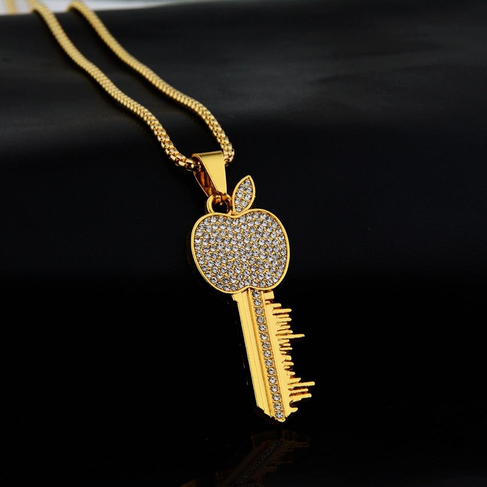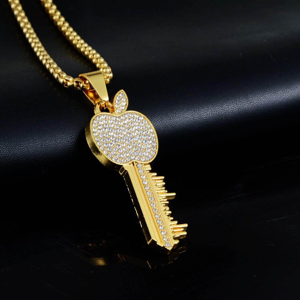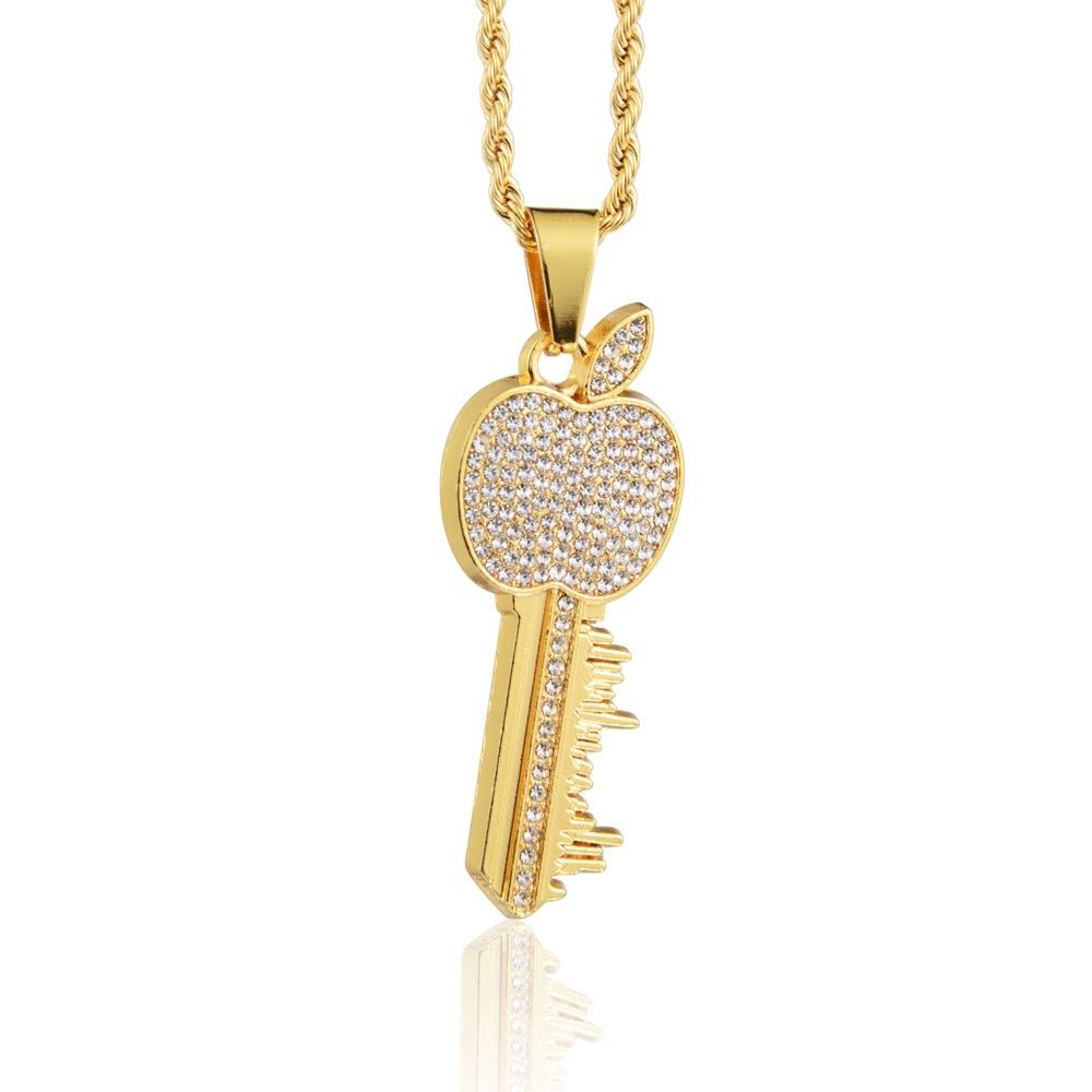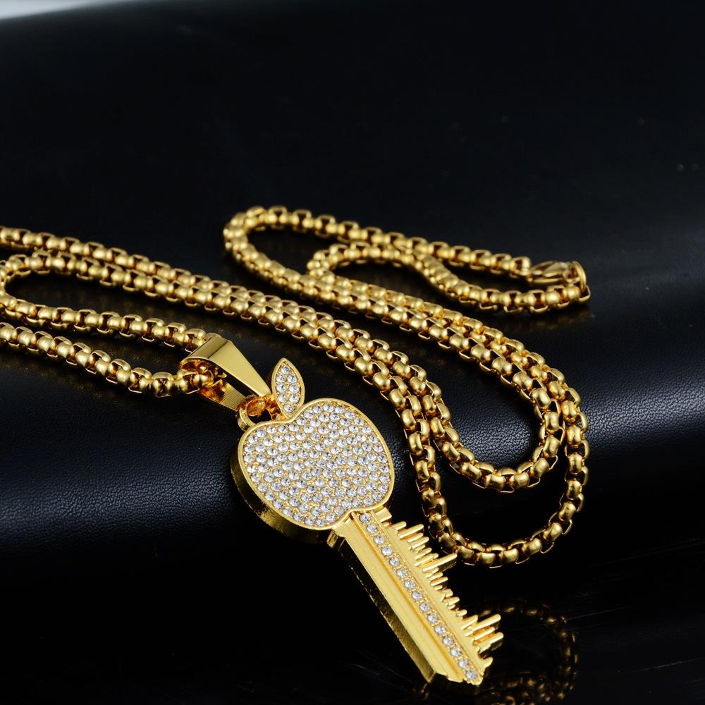 Collar de ocio personalizado para hombres y mujeres con colgante de llave de Apple con incrustaciones de diamantes de aleación de hip-hop de fuente de comercio exterior europea y americana