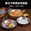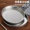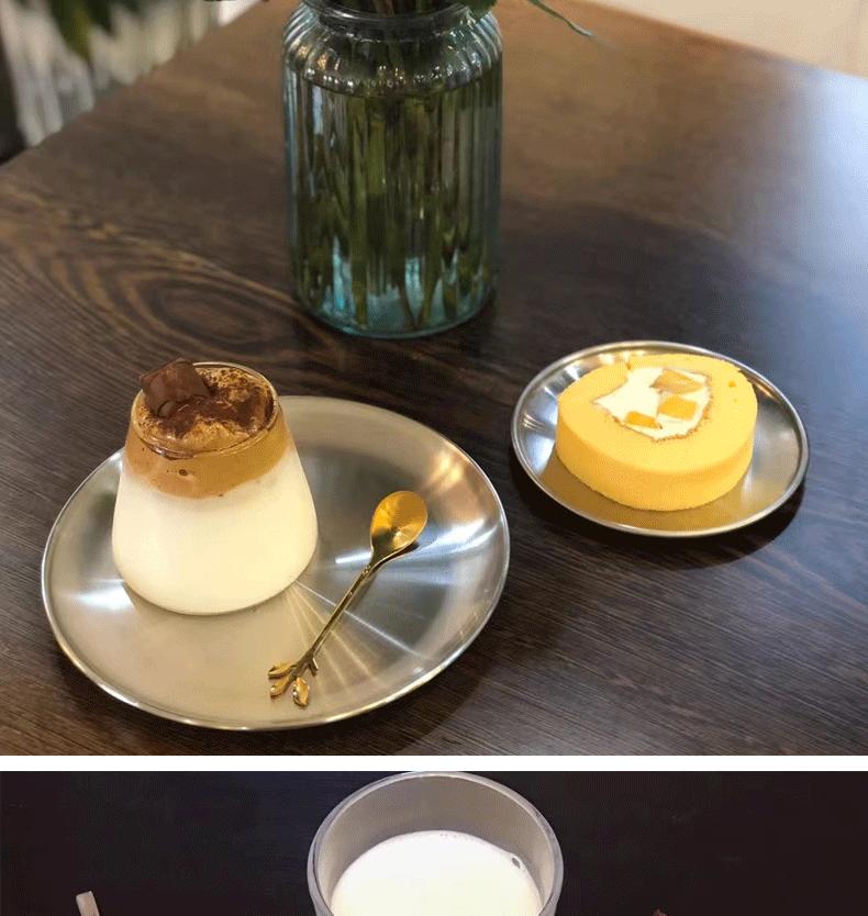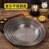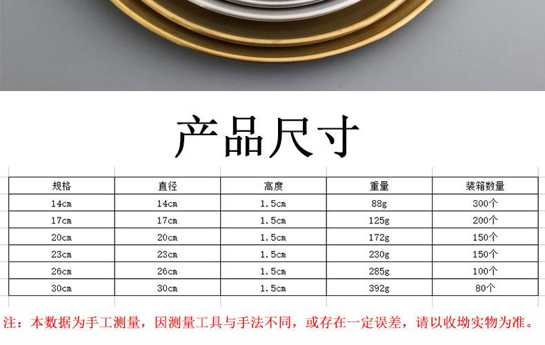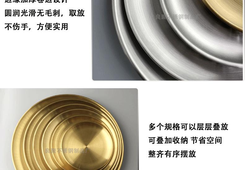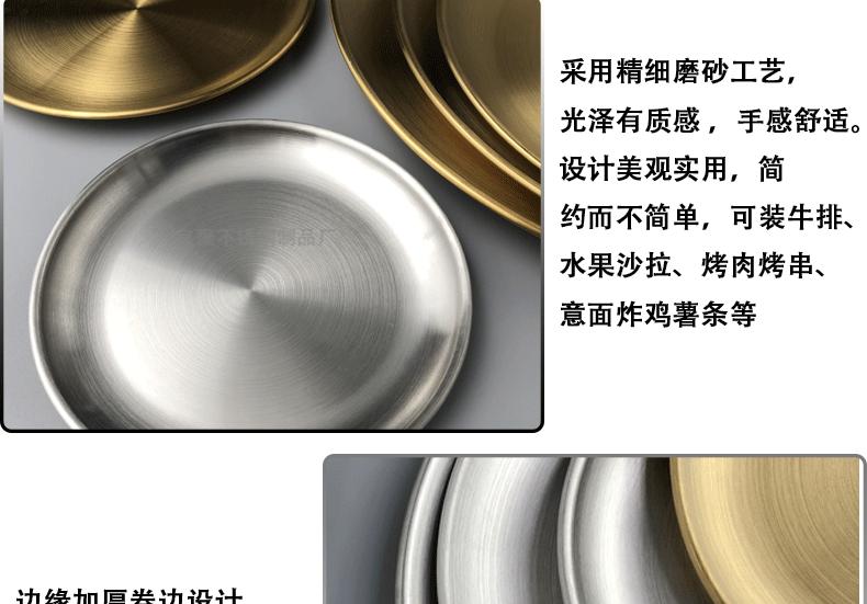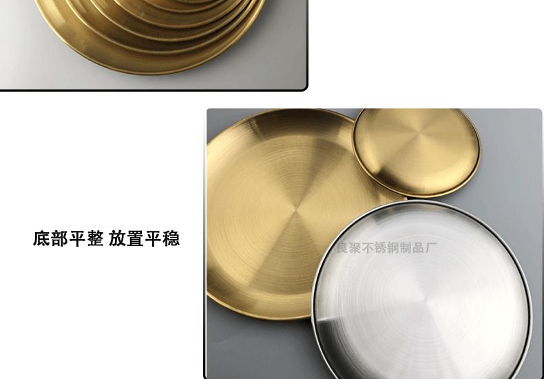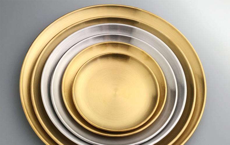 Plato redondo de acero inoxidable, bandeja de café dorada, plato de frutas, plato de pastel, plato de huesos, plato de verduras, plato poco profundo, plato occidental, plato de brochetas a la parrilla