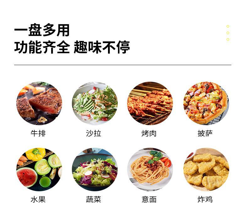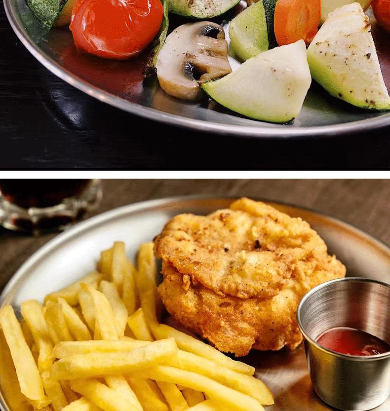 5. Un plato se puede utilizar para múltiples propósitos, como ensalada de frutas, batidos, pasteles de postre, filetes, brochetas de barbacoa, pastas, pollo frito y papas fritas, etc.
