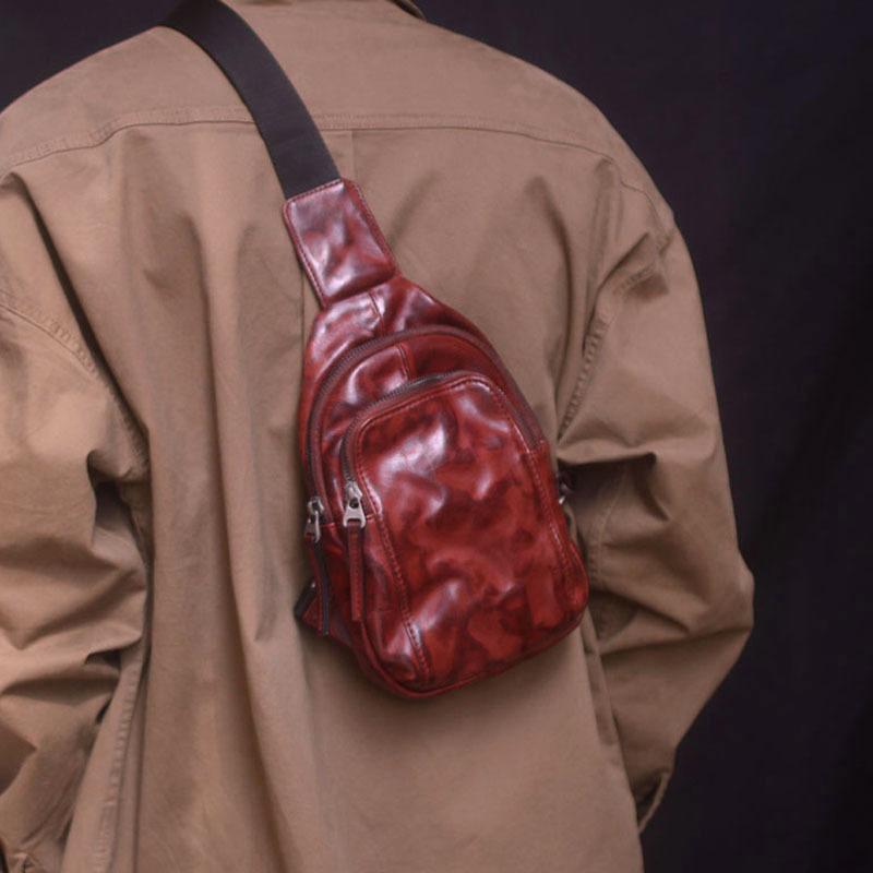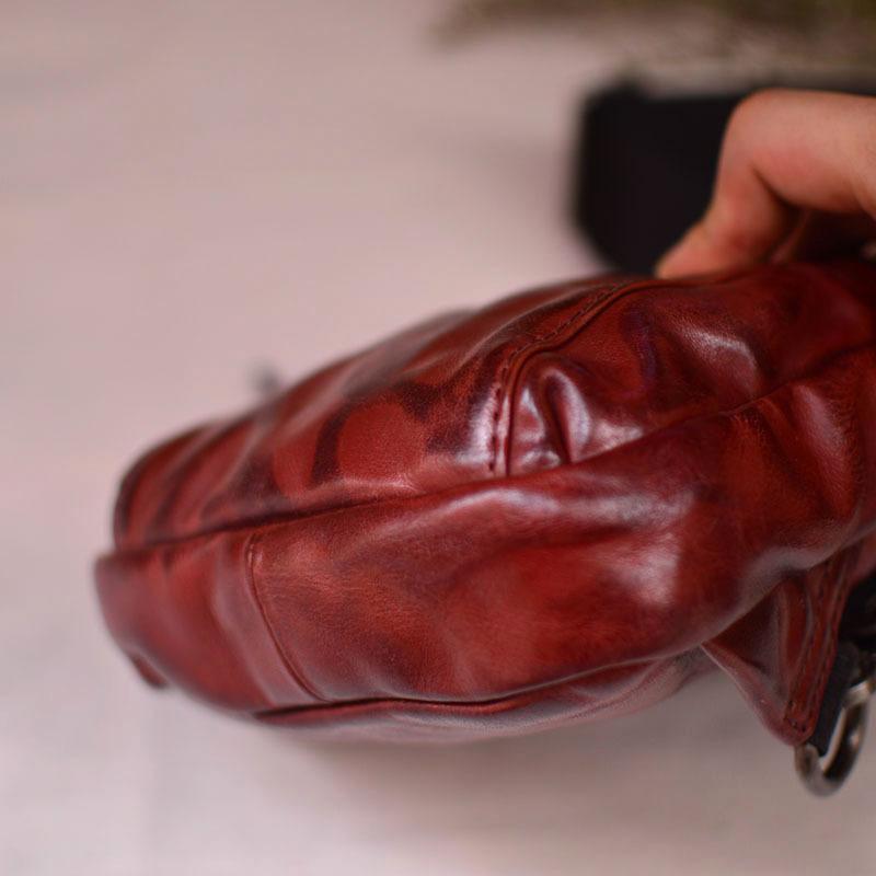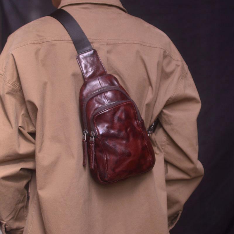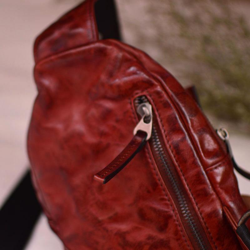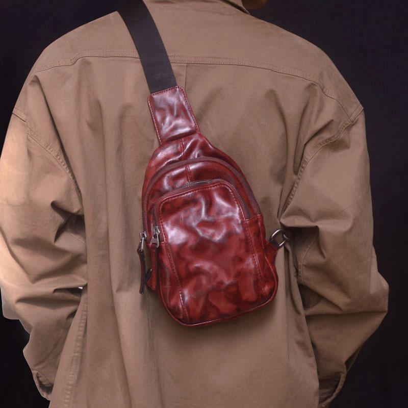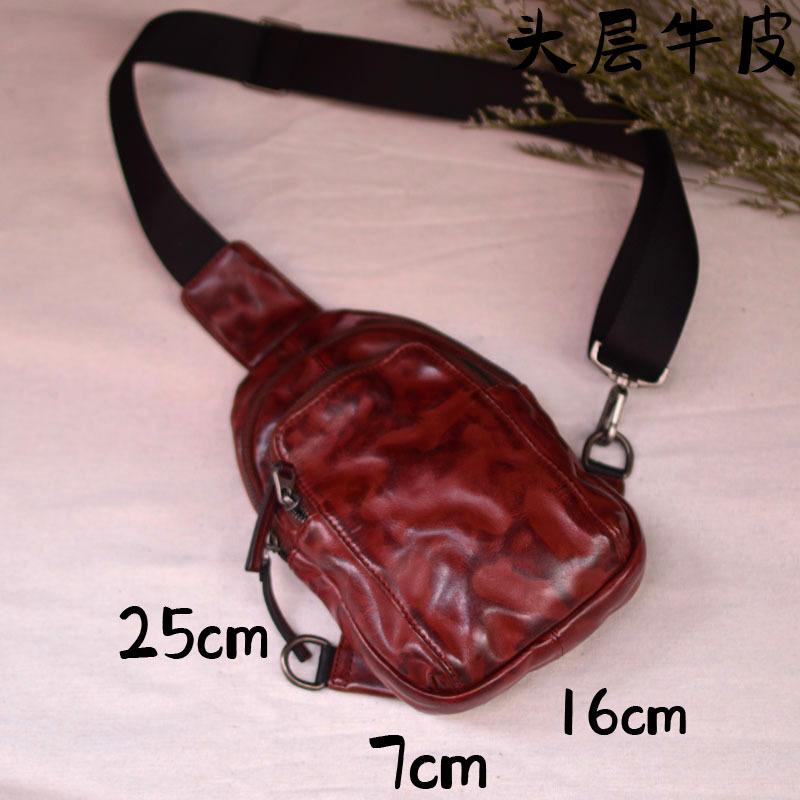Nuevo bolso de pecho sencillo personalizado de piel de vaca con diseño plisado para hombre, bolso de mensajero de cuero retro europeo y americano, bolso de hombro para exteriores