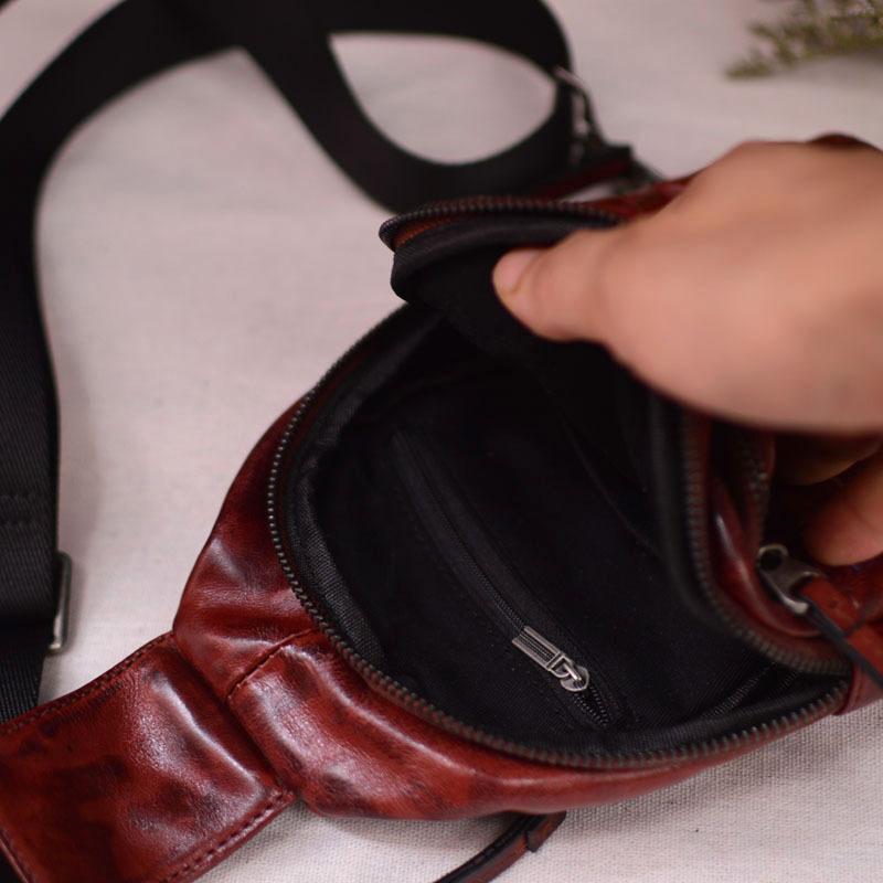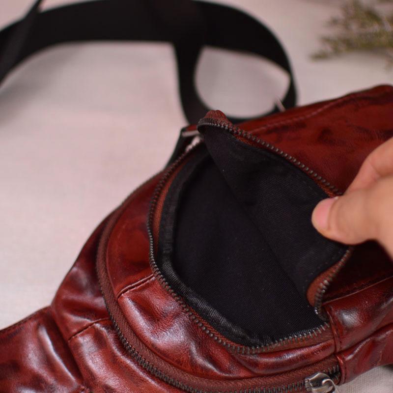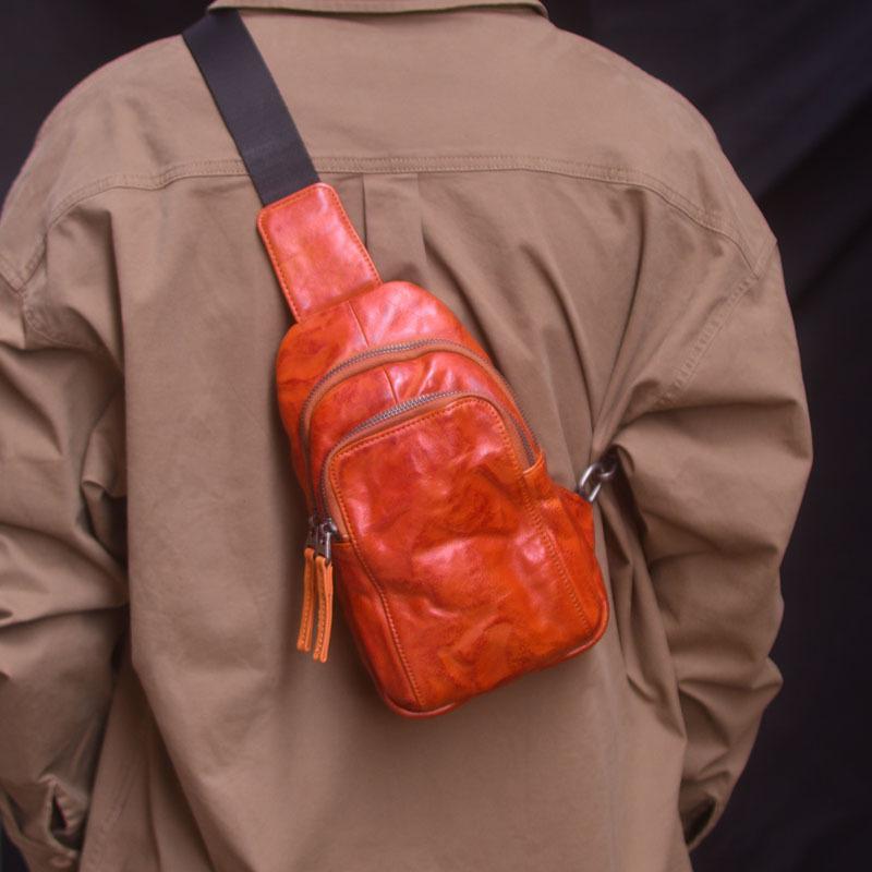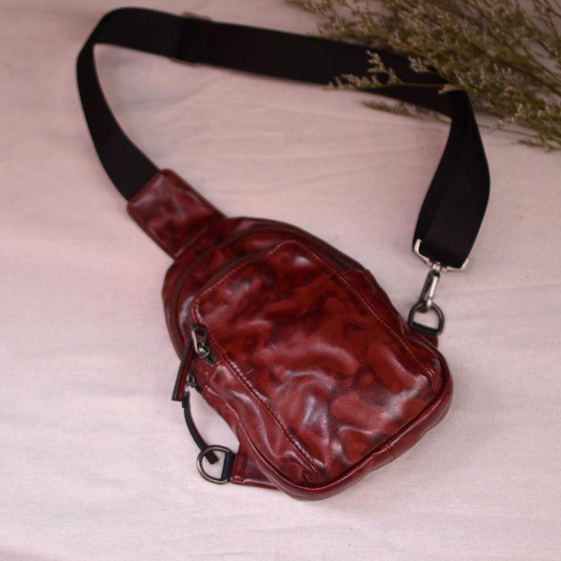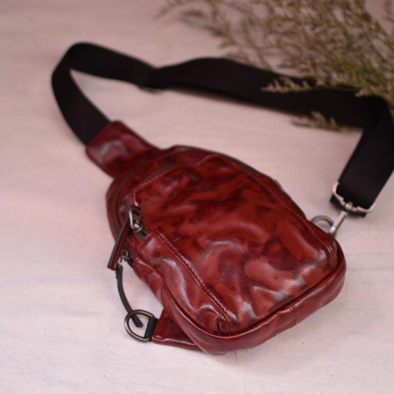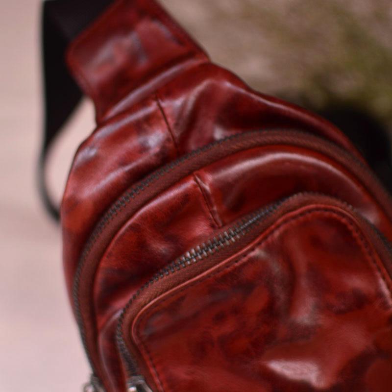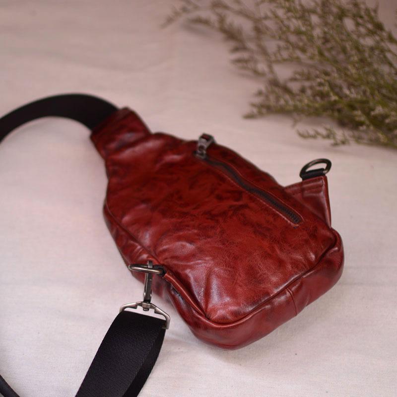 Nuevo bolso de pecho sencillo personalizado de piel de vaca con diseño plisado para hombre, bolso de mensajero de cuero retro europeo y americano, bolso de hombro para exteriores